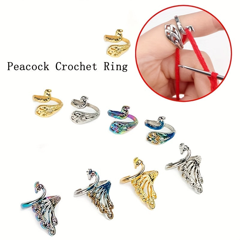 This dual-use ring features a peacock design and can be used as a crochet hook. It's perfect for vintage craft lovers who appreciate unique jewelry.