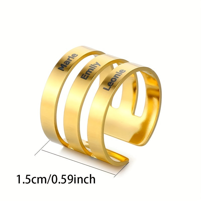 Personalized Engraved Name Ring Stainless Steel Adjustable Finger Ring