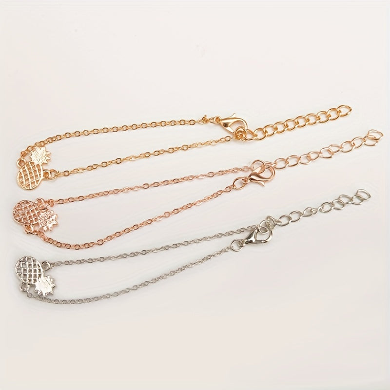 Adorn your ankle with this charming pineapple alloy anklet, perfect for adding a tropical touch to your style.