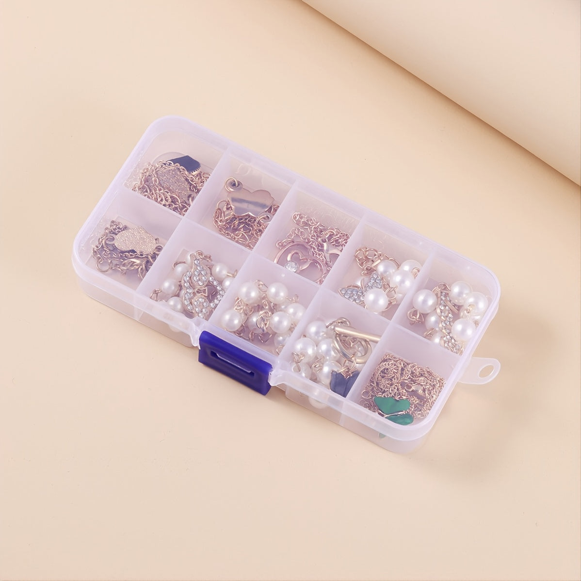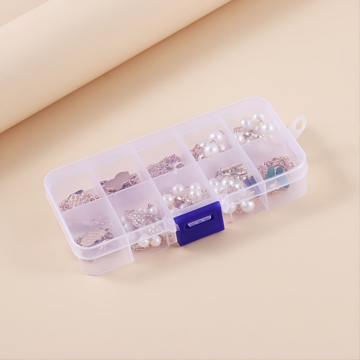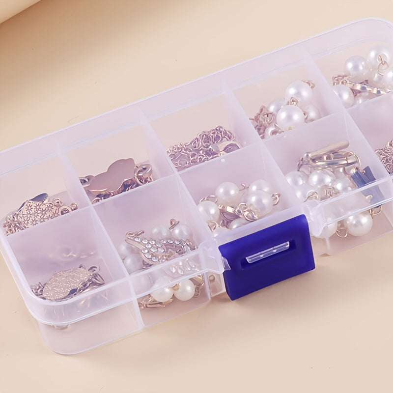 This multifunctional storage box is perfect for organizing jewelry, stationery, and other small items. It is transparent, portable, and offers a large capacity with 10 separate boxes.