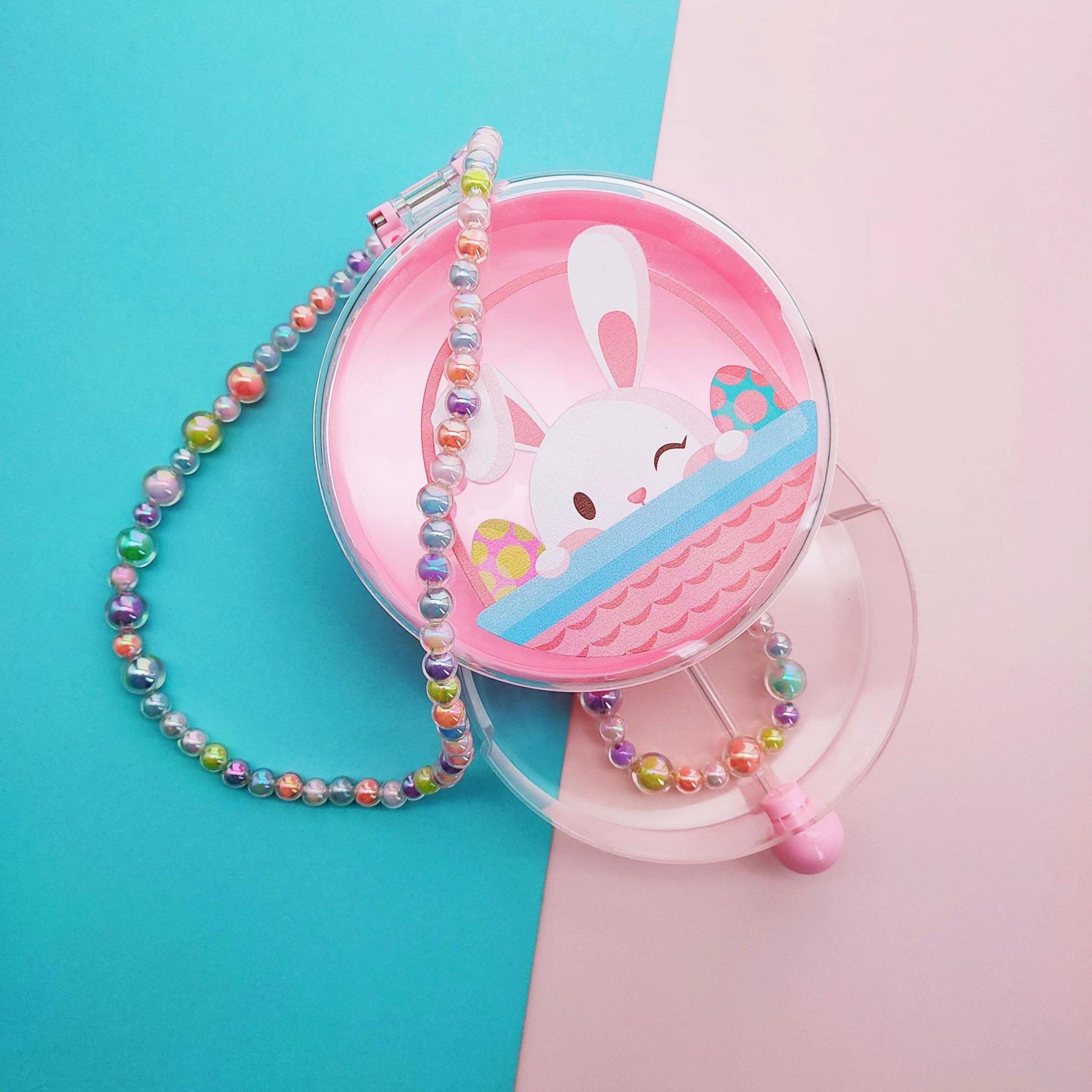 Keep your jewelry organized with this plastic round storage box that also includes DIY beads for customization.