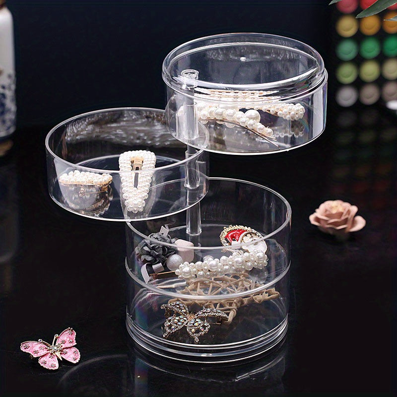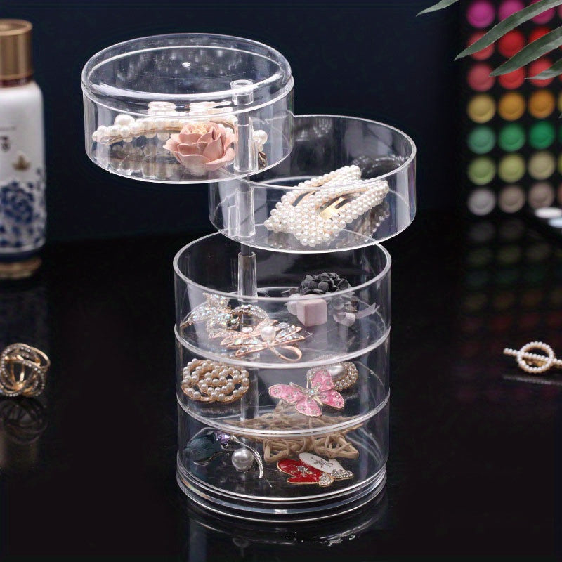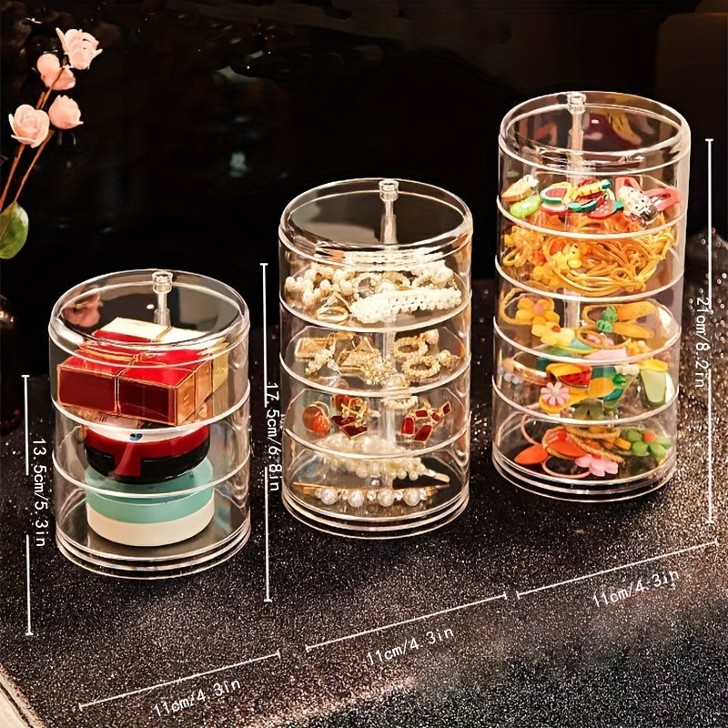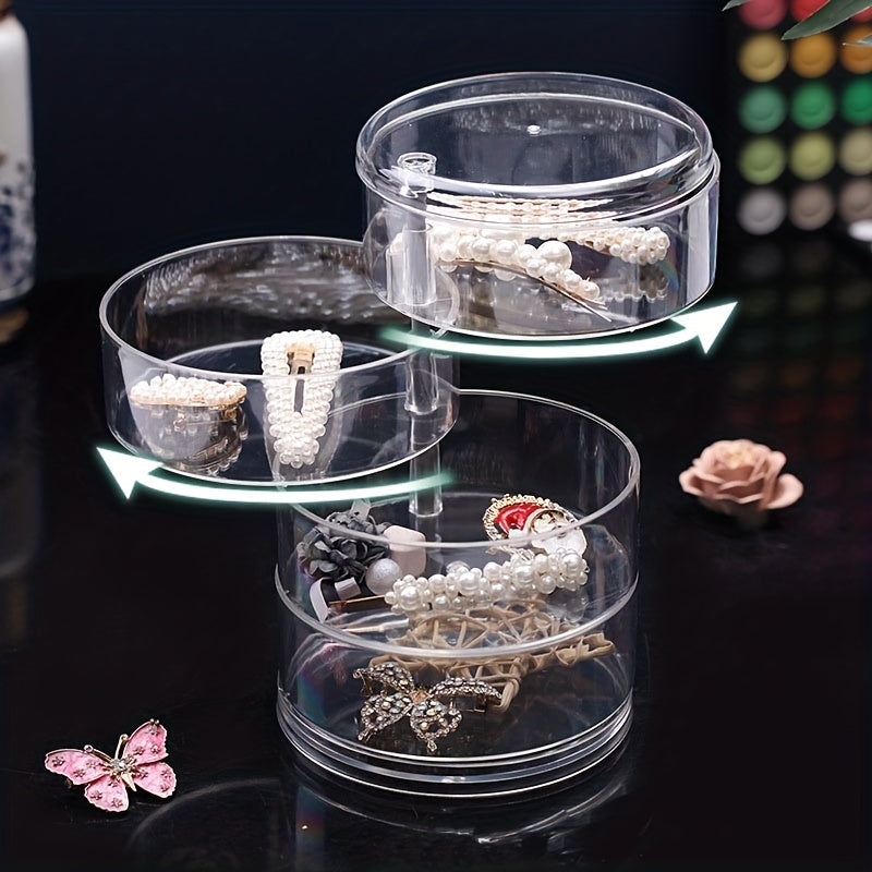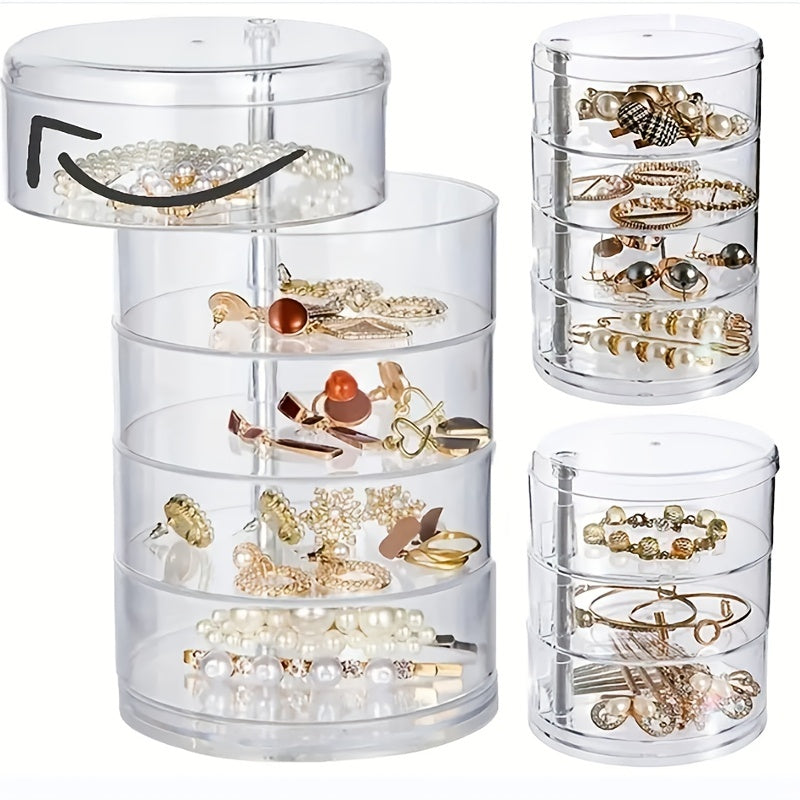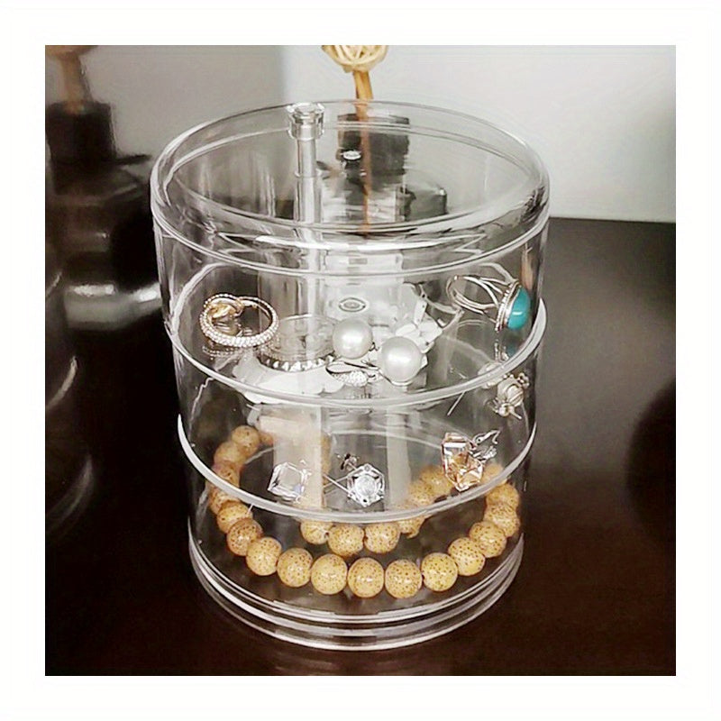 This rotating layer storage box is ideal for keeping jewelry, accessories, makeup, and cosmetics organized. The transparent design allows easy visibility of items.