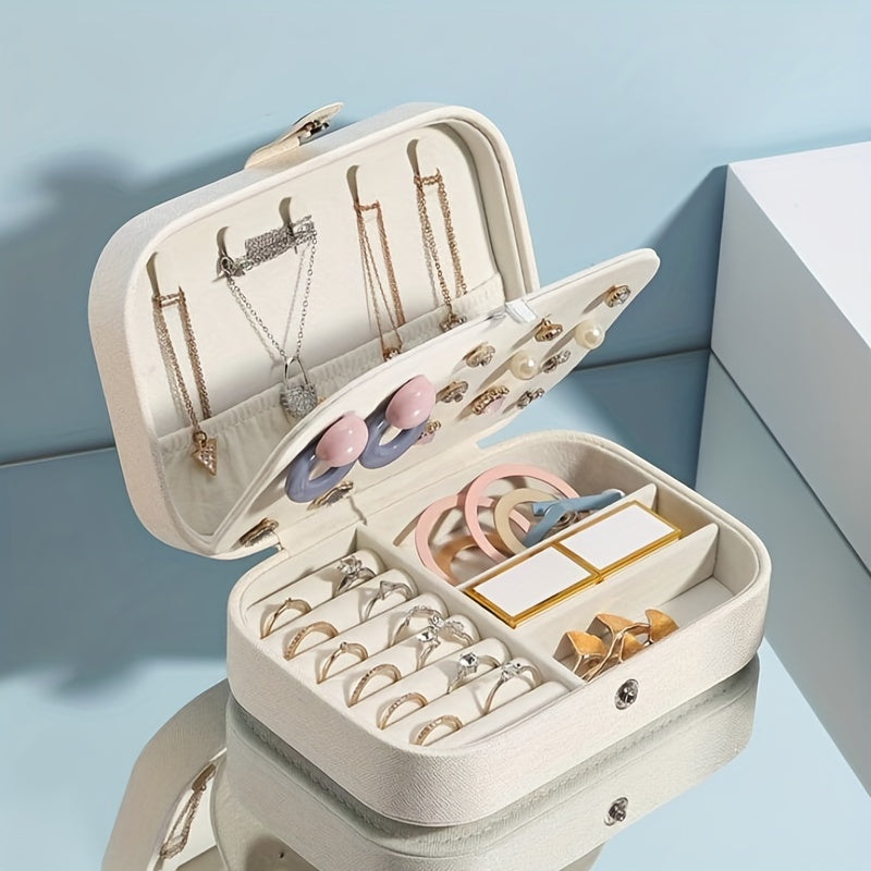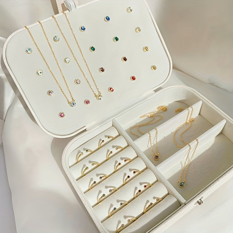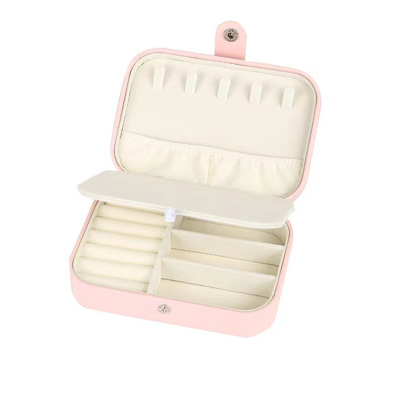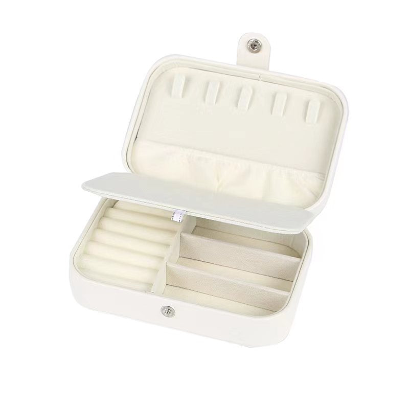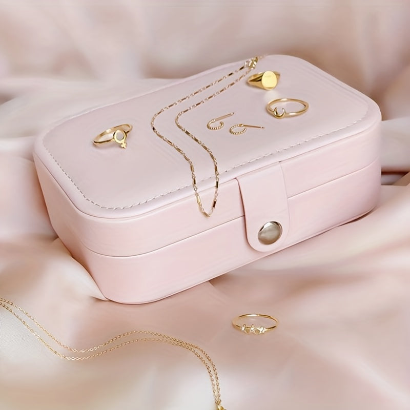 Portable Jewelry Box Double Earrings Ring Velvet Pu Jewelry Box