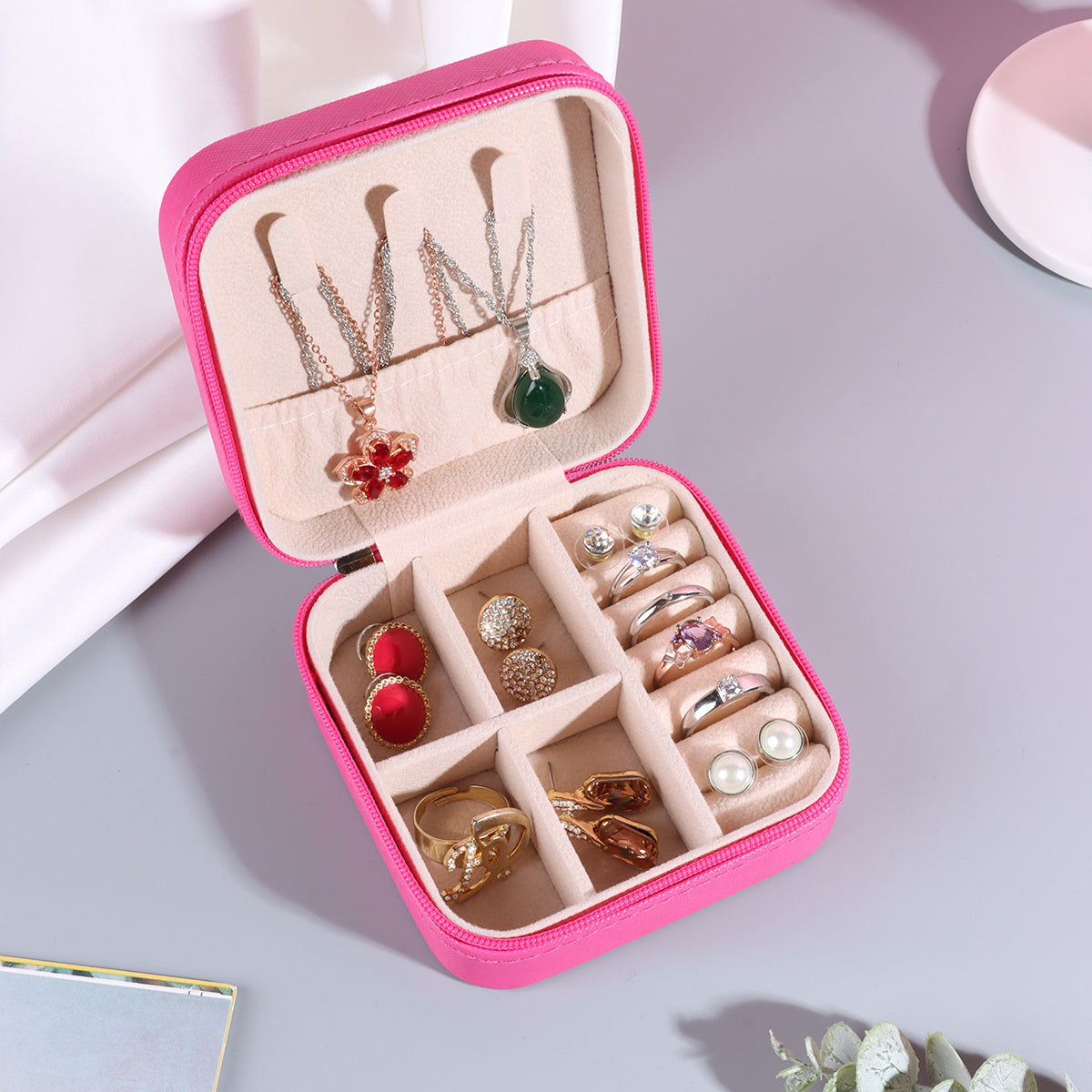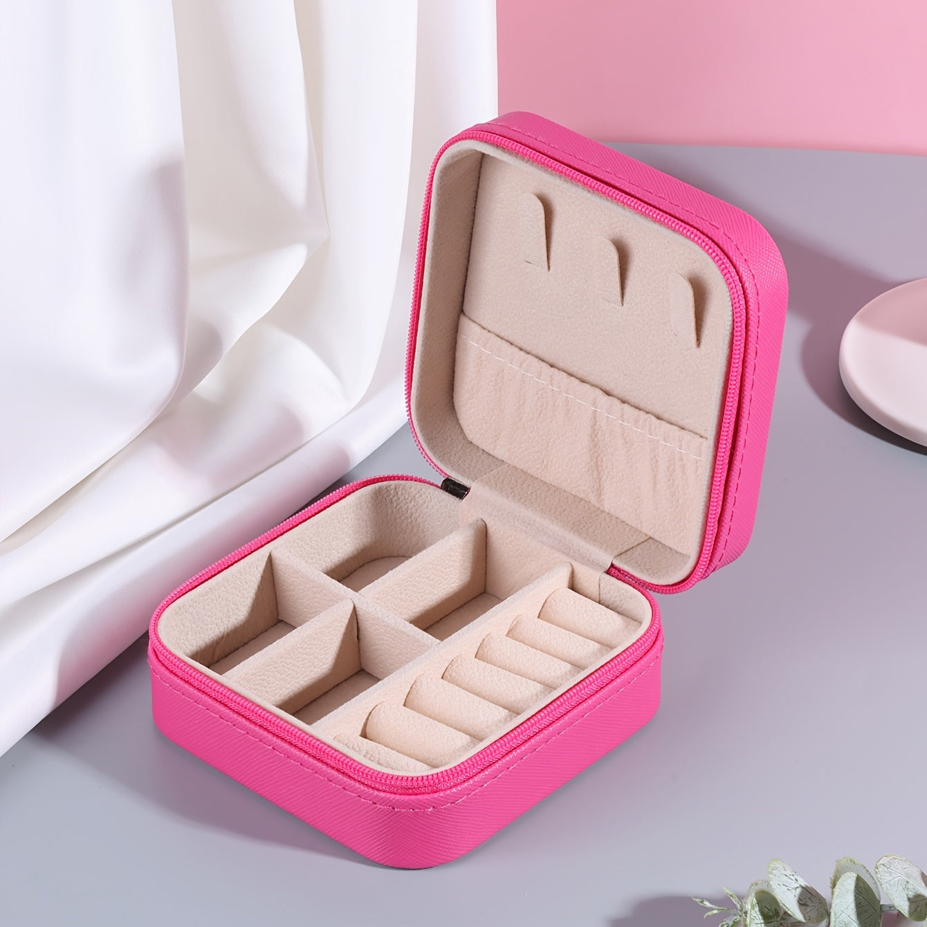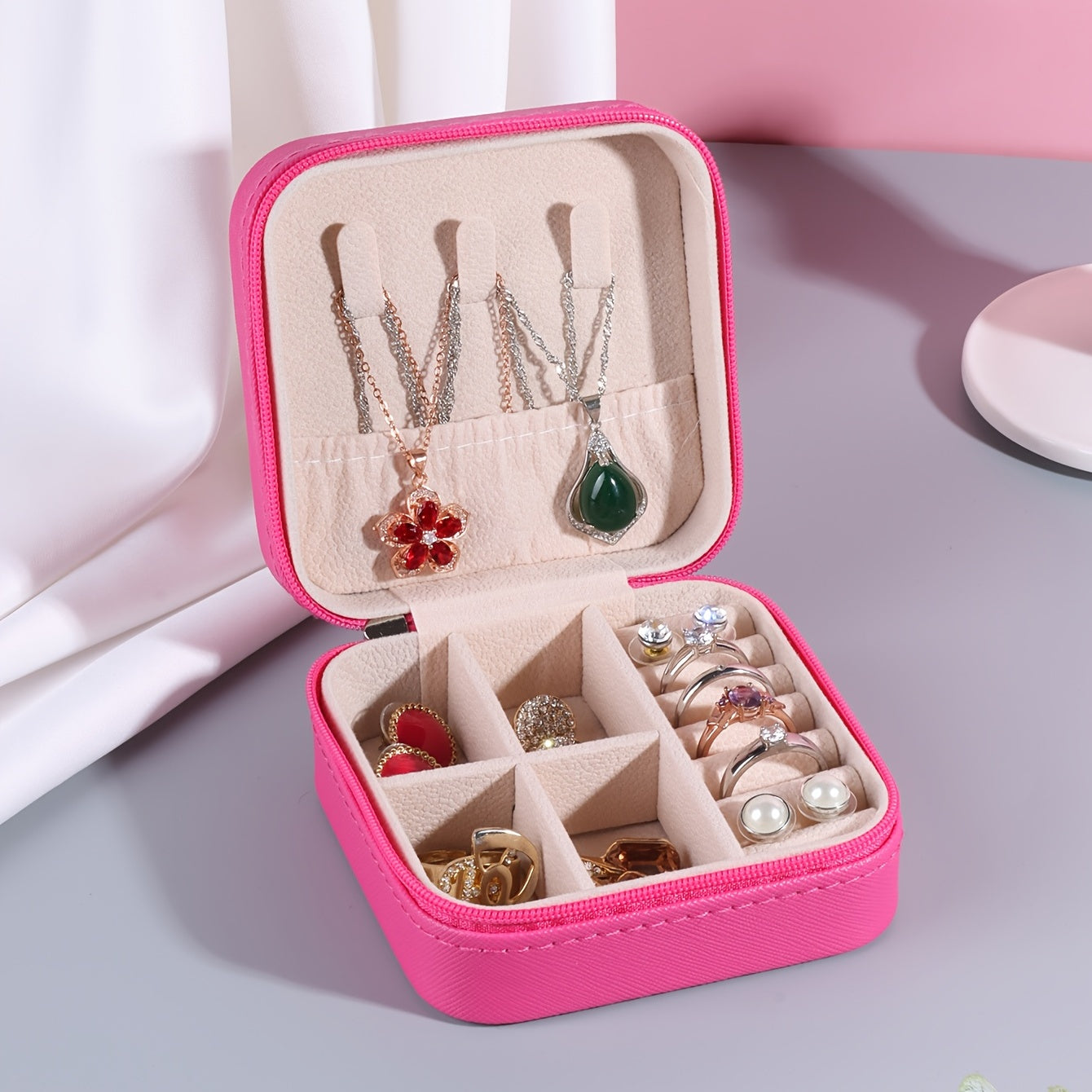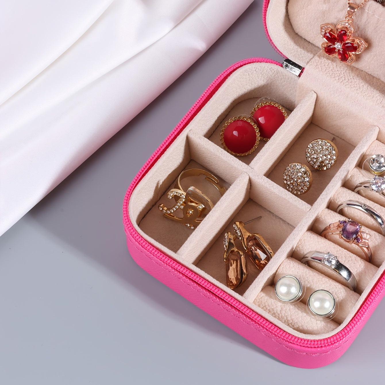Keep your jewelry safe and organized with this portable jewelry box. Made of high-quality PU leather, it features compartments for earrings, rings, necklaces, and more.