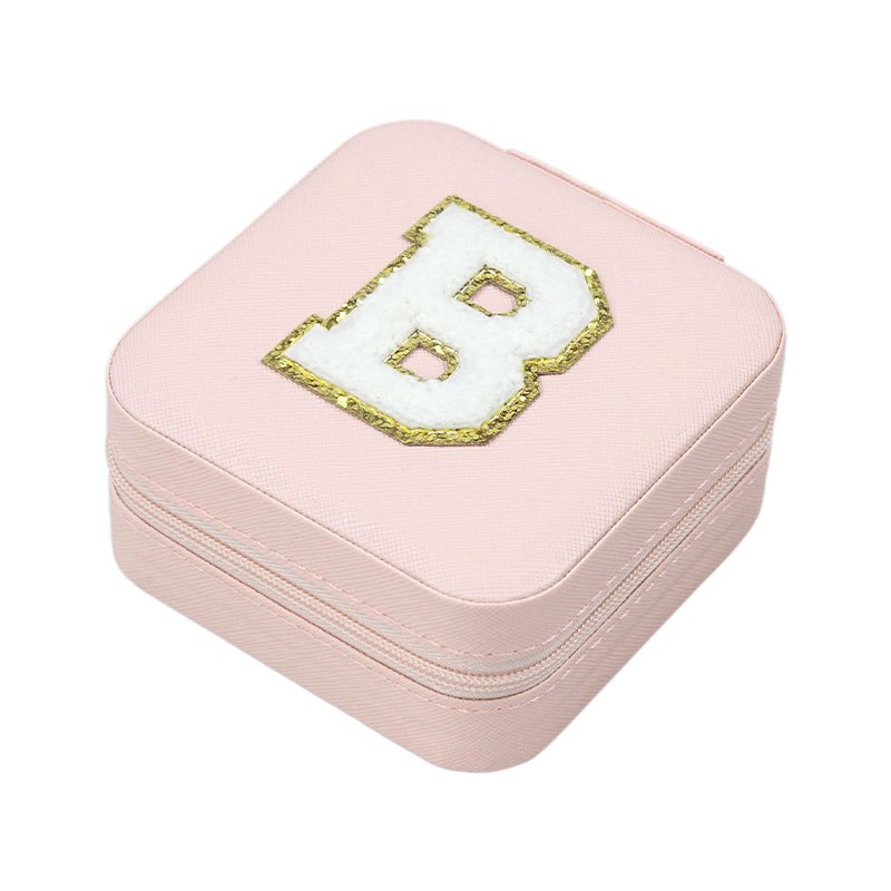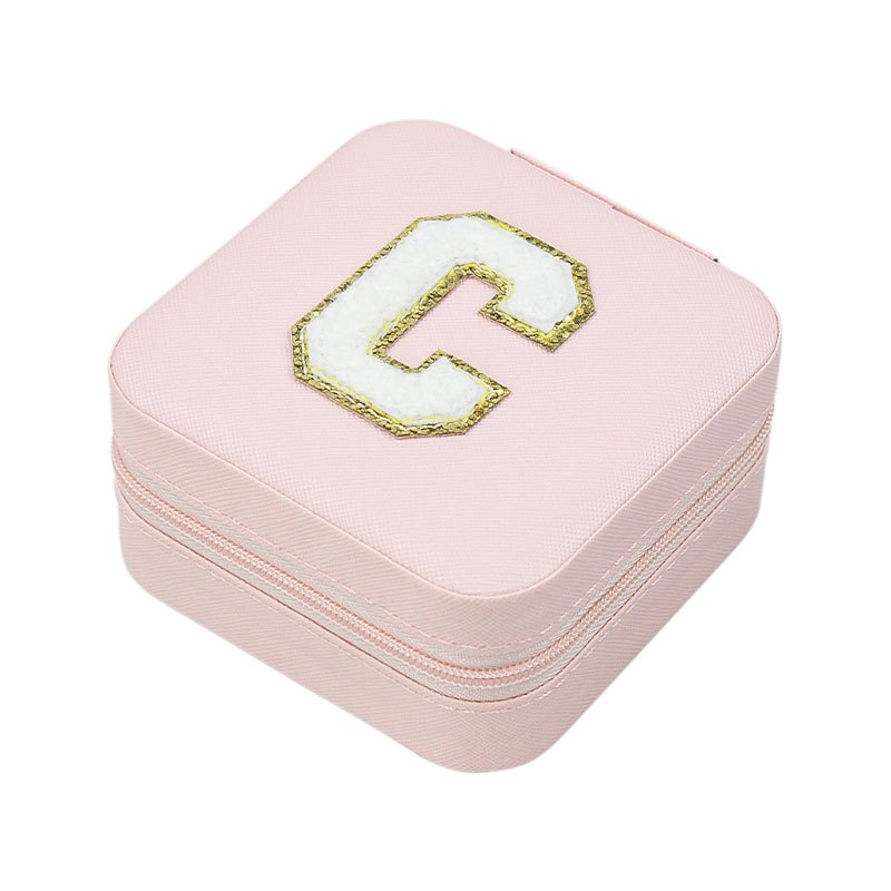 Keep your jewelry organized and secure with this stylish portable storage box featuring a letter pattern design.