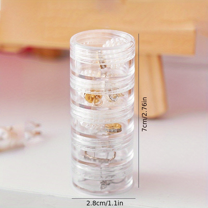 This portable plastic storage box is ideal for organizing jewelry, accessories, makeup, and cosmetics. It features a transparent design for easy visibility of contents.