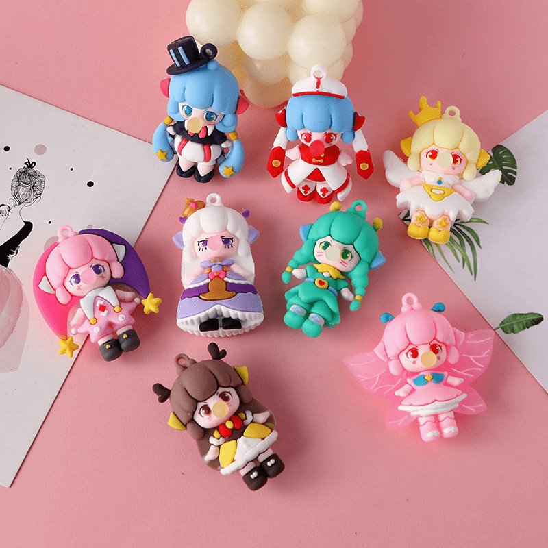 Adorable keychain pendant featuring a pretty girl doll design, perfect for decorating phone cases, schoolbags, or backpacks.