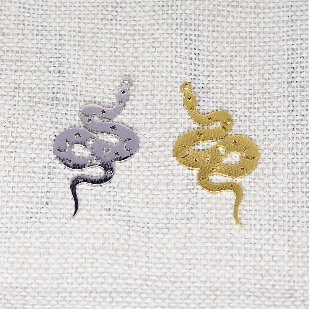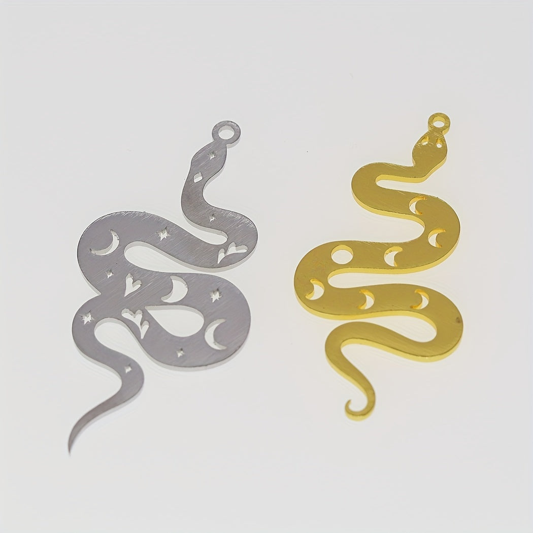 This 5-piece set of snake charm pendants is perfect for adding a punk touch to your necklaces, bracelets, and other jewelry crafts. Made from stainless steel, these charms are durable and stylish.