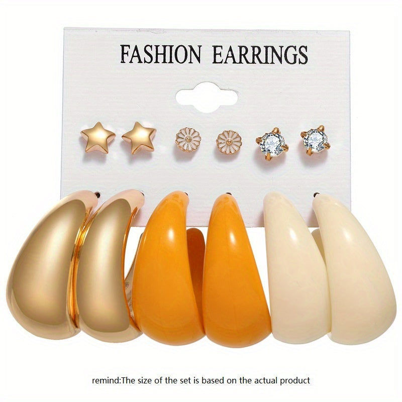 This set includes 6 pieces of retro earrings with a punk European and American style. Perfect for an INS style look!