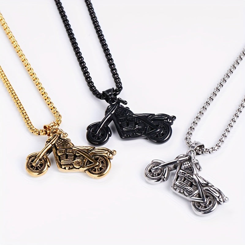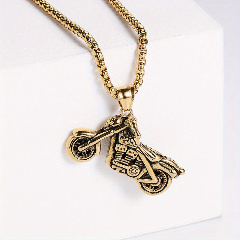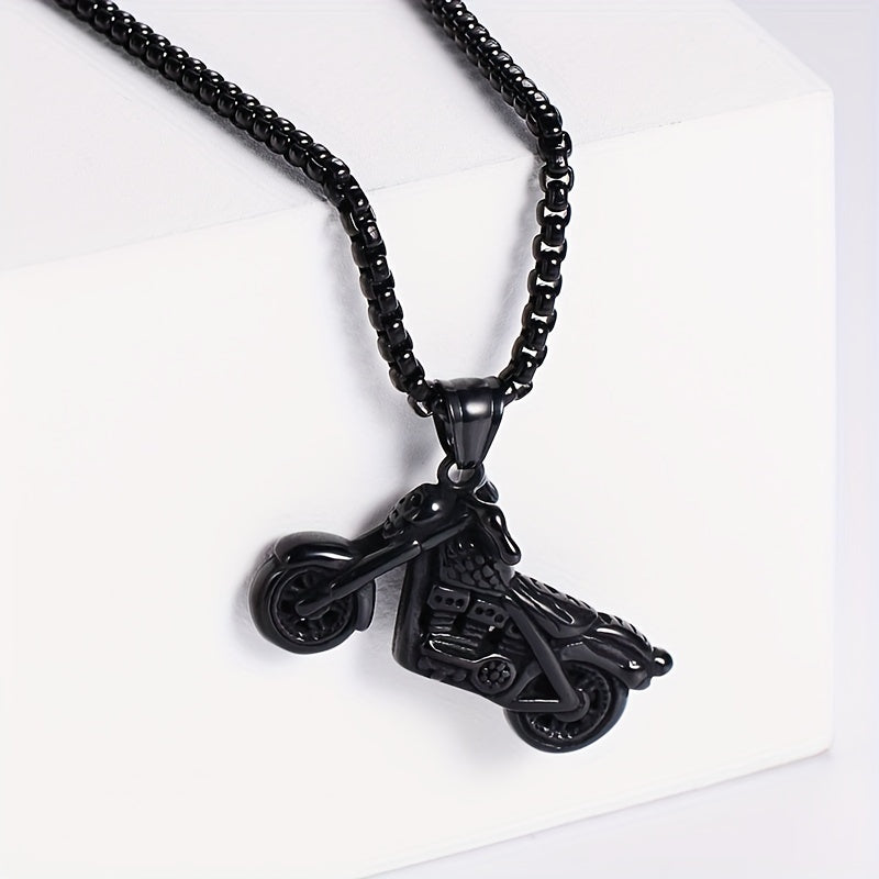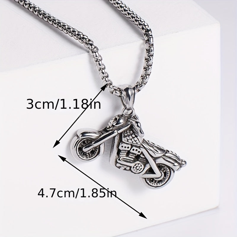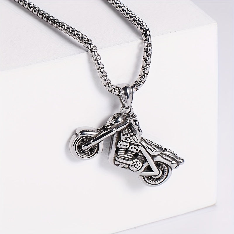 This long pendant necklace features a creative design inspired by motorcycle riders and bikers. It is made of high-quality stainless steel, perfect for men and women who love punk and hip hop fashion.
