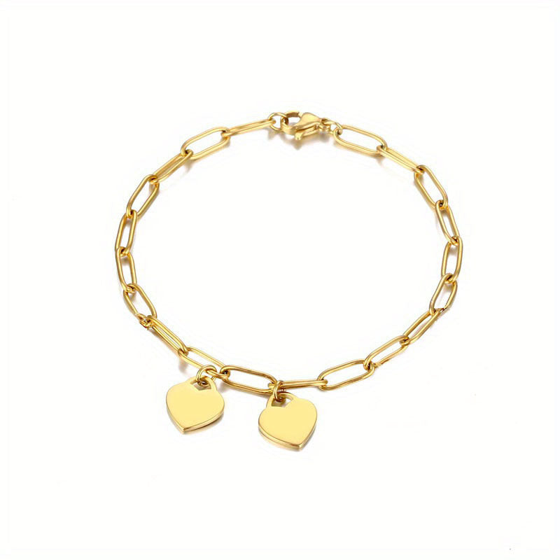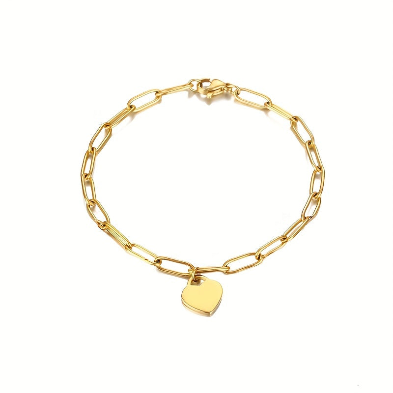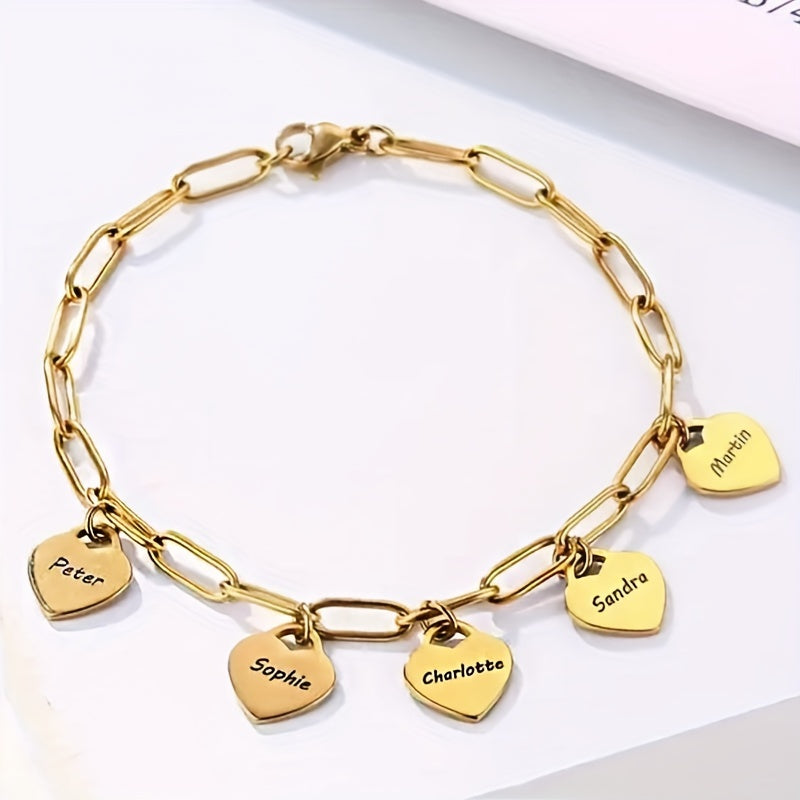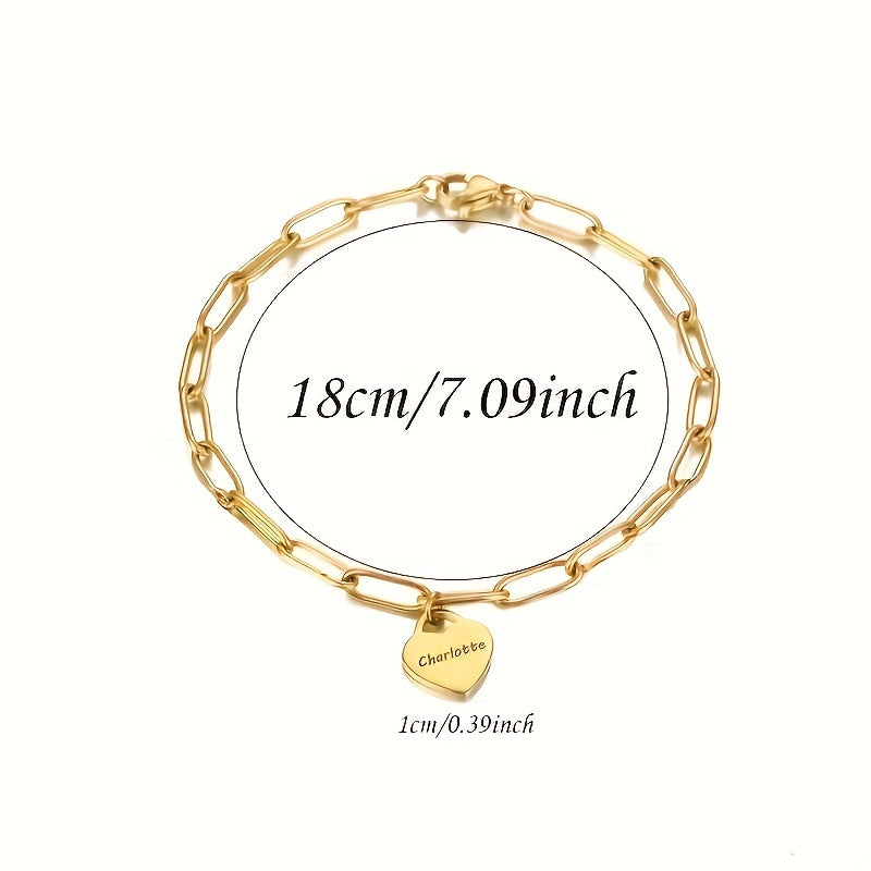 Get a unique and edgy look with this splicing square chain bracelet featuring a heart-shaped pendant. Made of durable stainless steel, you can personalize it with a carved name. Ideal for men who love handmade jewelry.