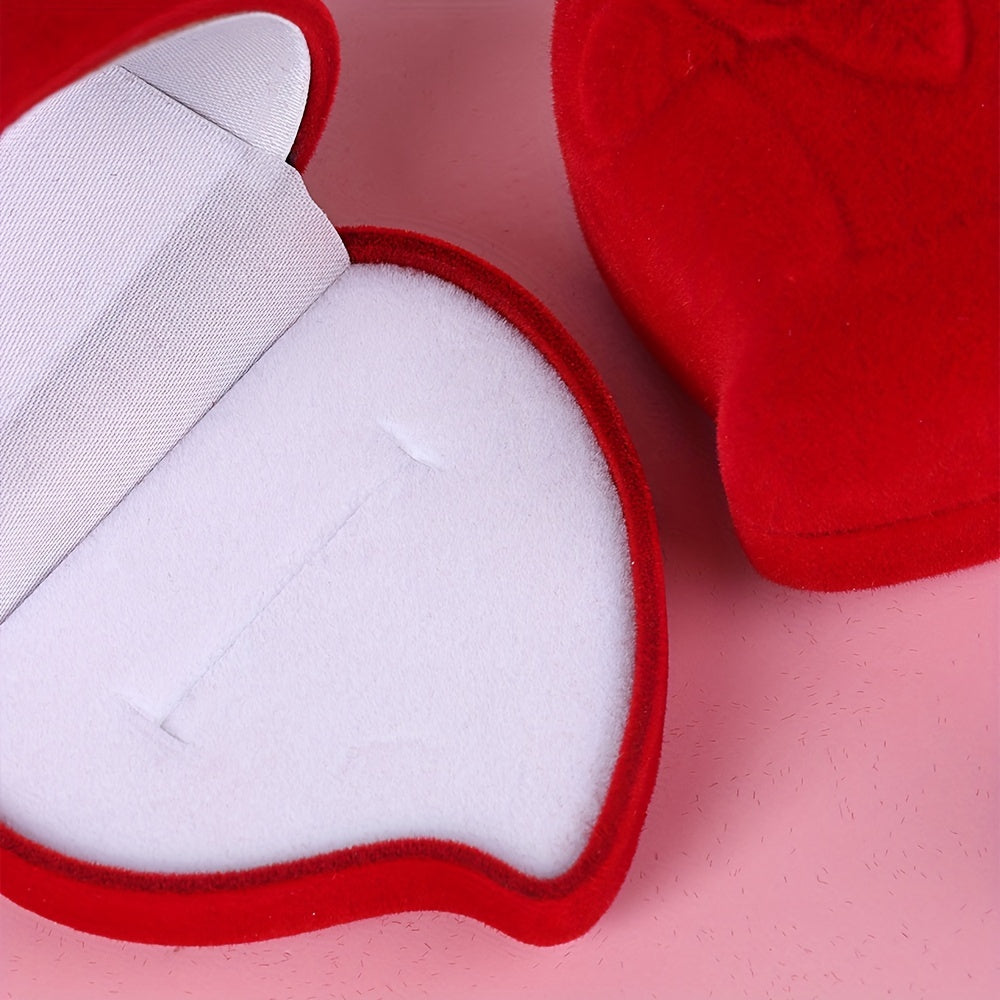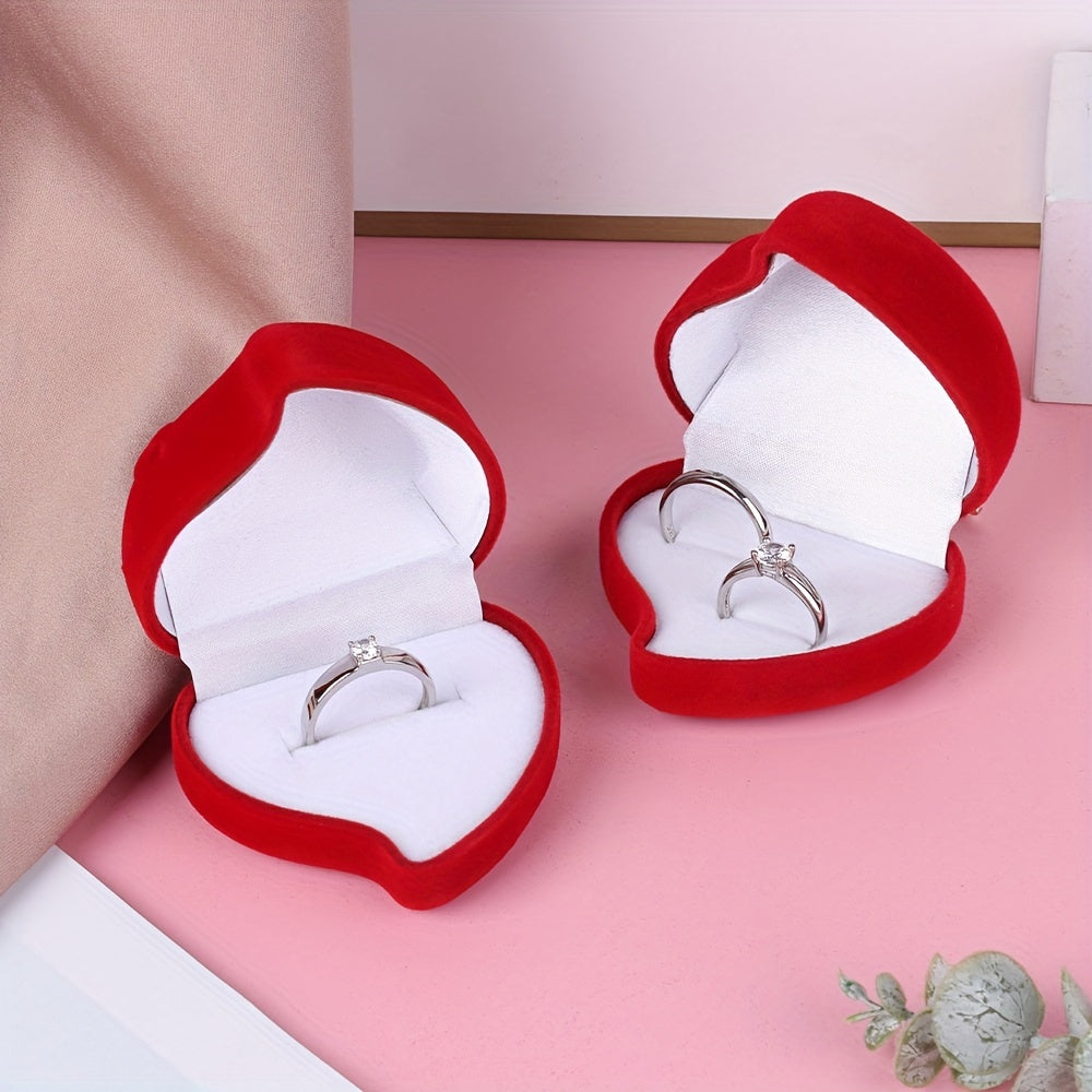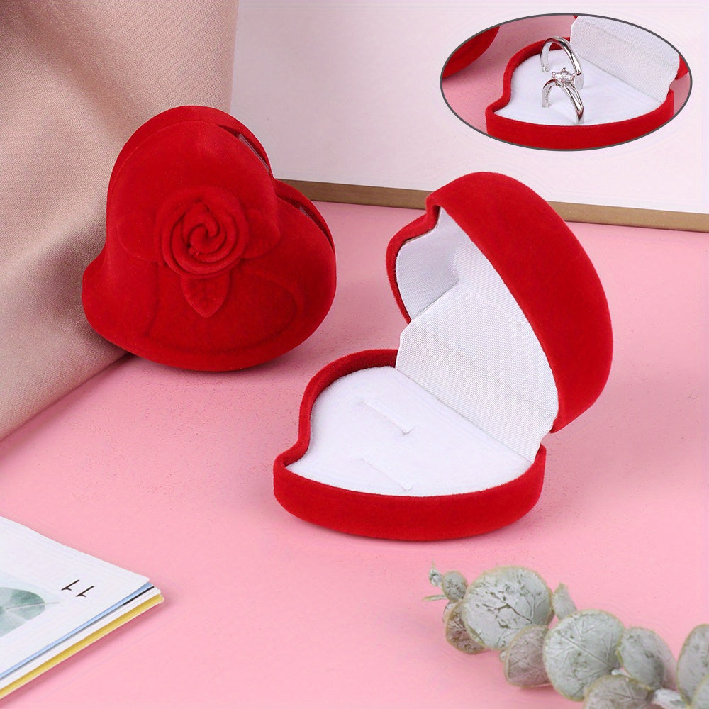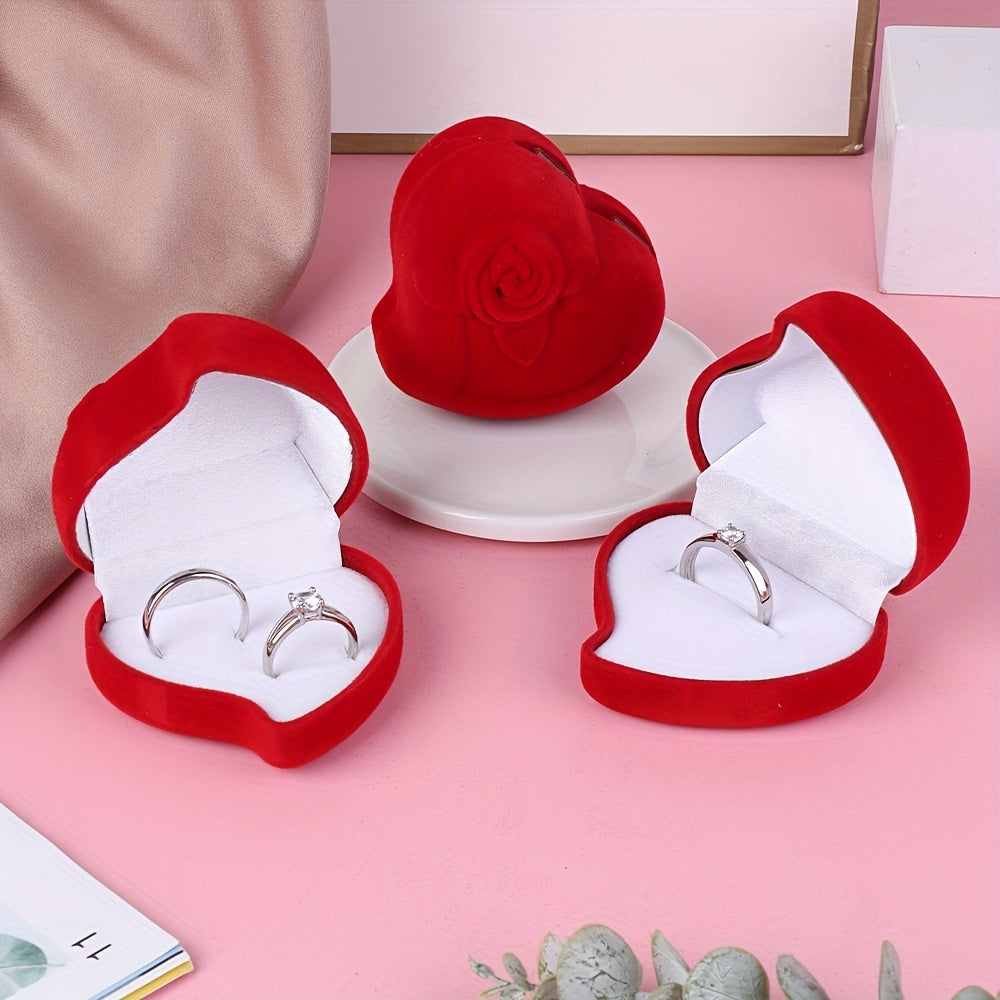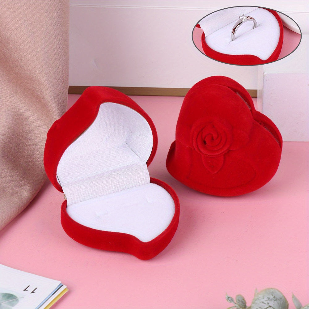 Red Rose Heart Ring Box Single Ring Couple Pair Flocking Wedding