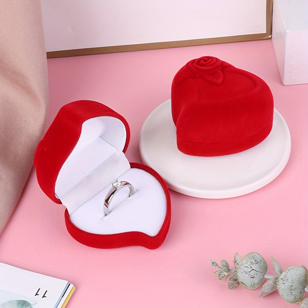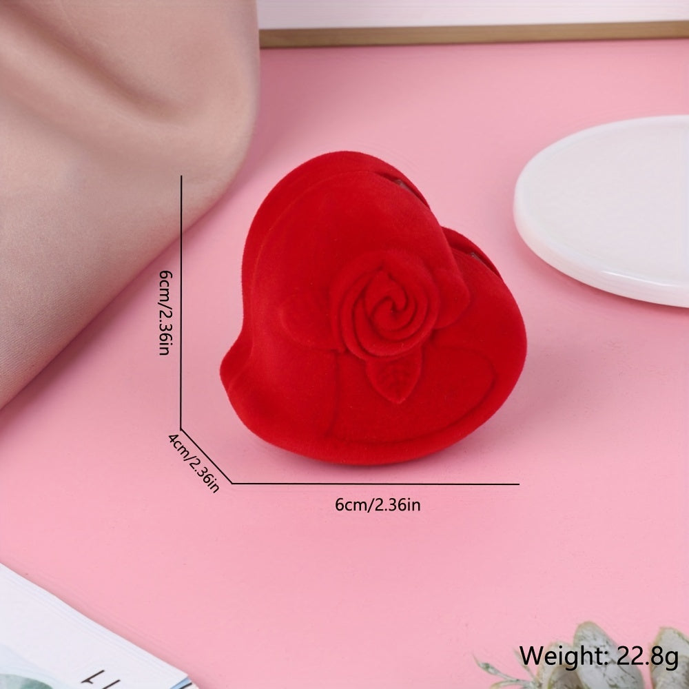 This heart-shaped ring box is perfect for storing a single ring. The elegant red rose design adds a romantic touch, making it ideal for wedding proposals or gift-giving.