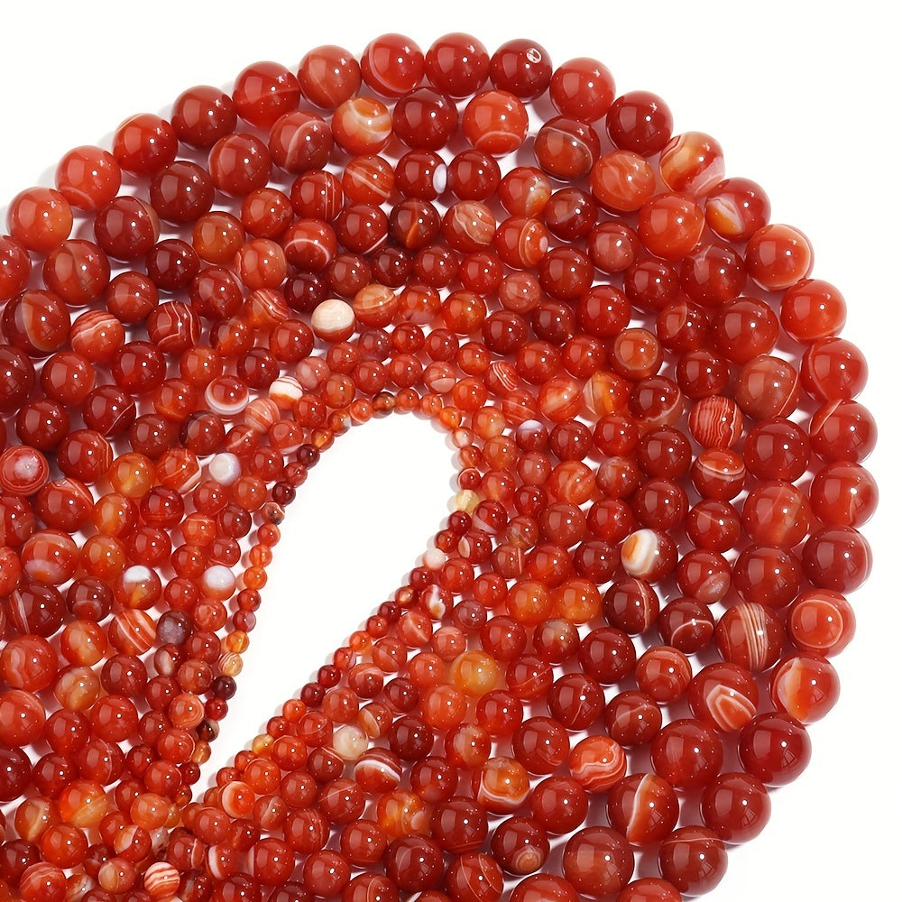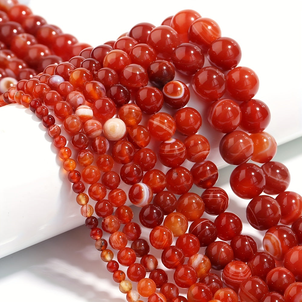 Create stunning jewelry pieces with these natural red striped agate beads. Perfect for bracelets and necklaces. Available in various sizes.