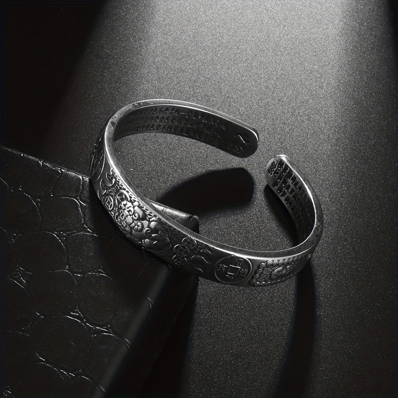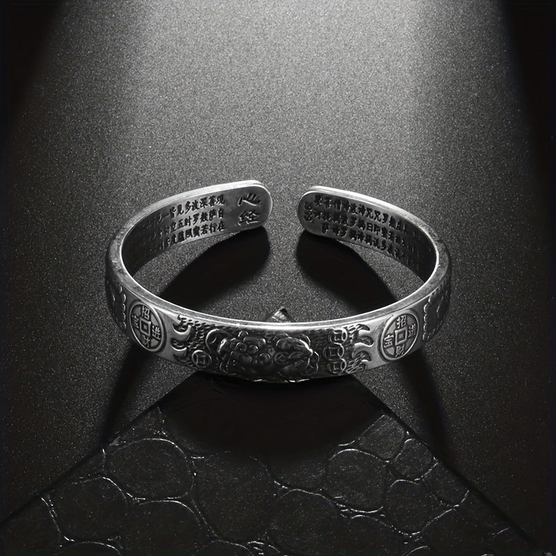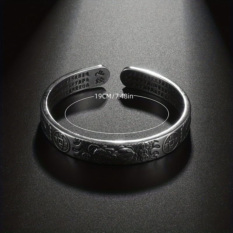 Add a touch of personality with this ethnic beast Pixiu bracelet. Featuring a retro design, this silver plated cuff bracelet is the perfect accessory for men. Great as a gift for any occasion.