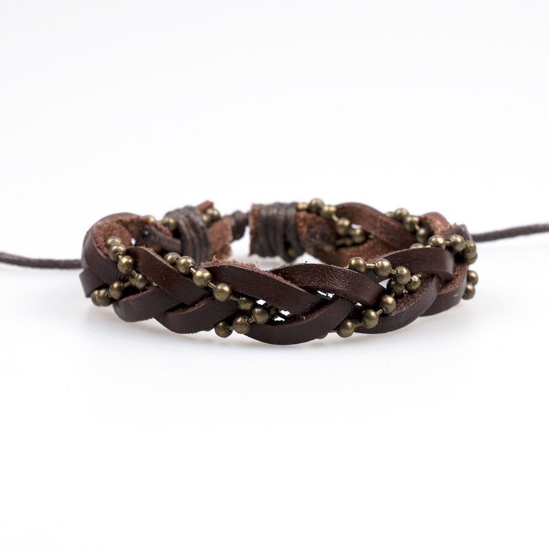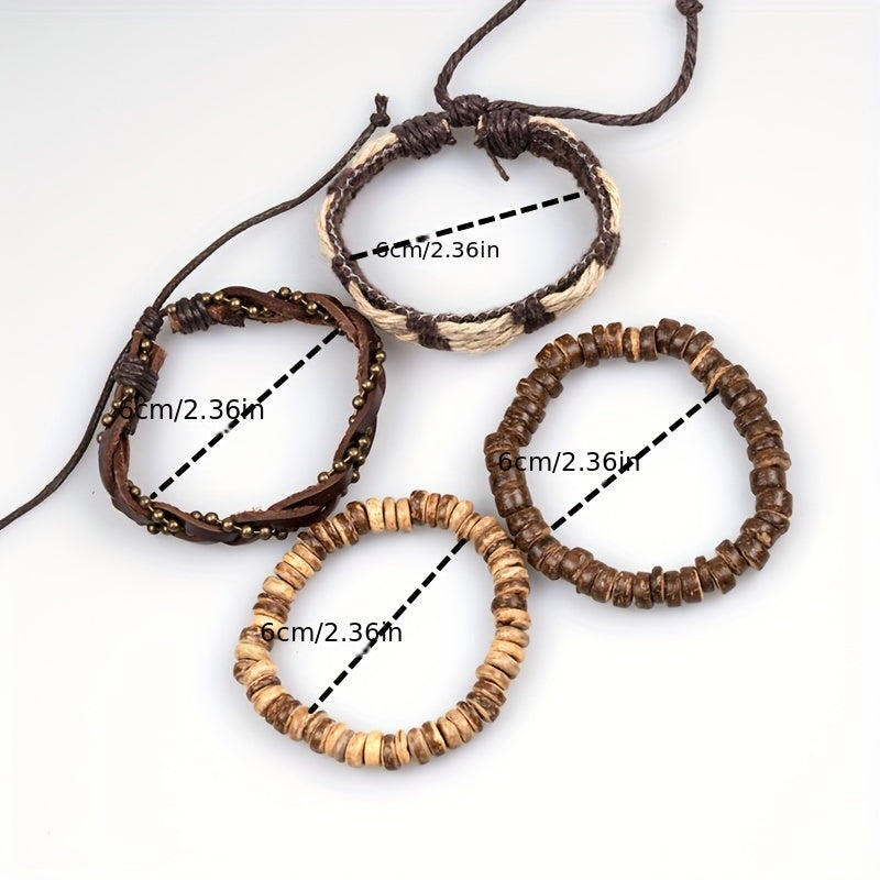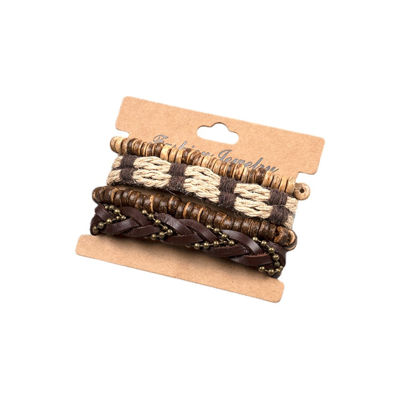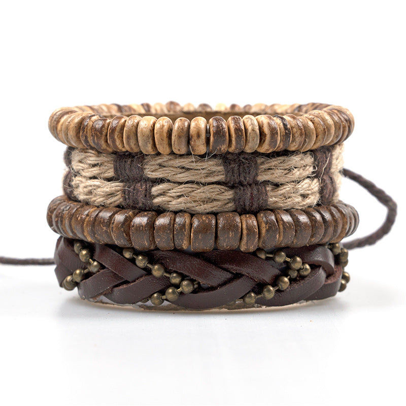 This European & American retro leather bracelet layer suit is perfect for a trendy look. Handcrafted with coconut shell and comes with DIY hand rope for customization.