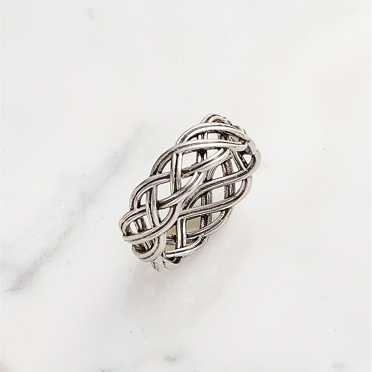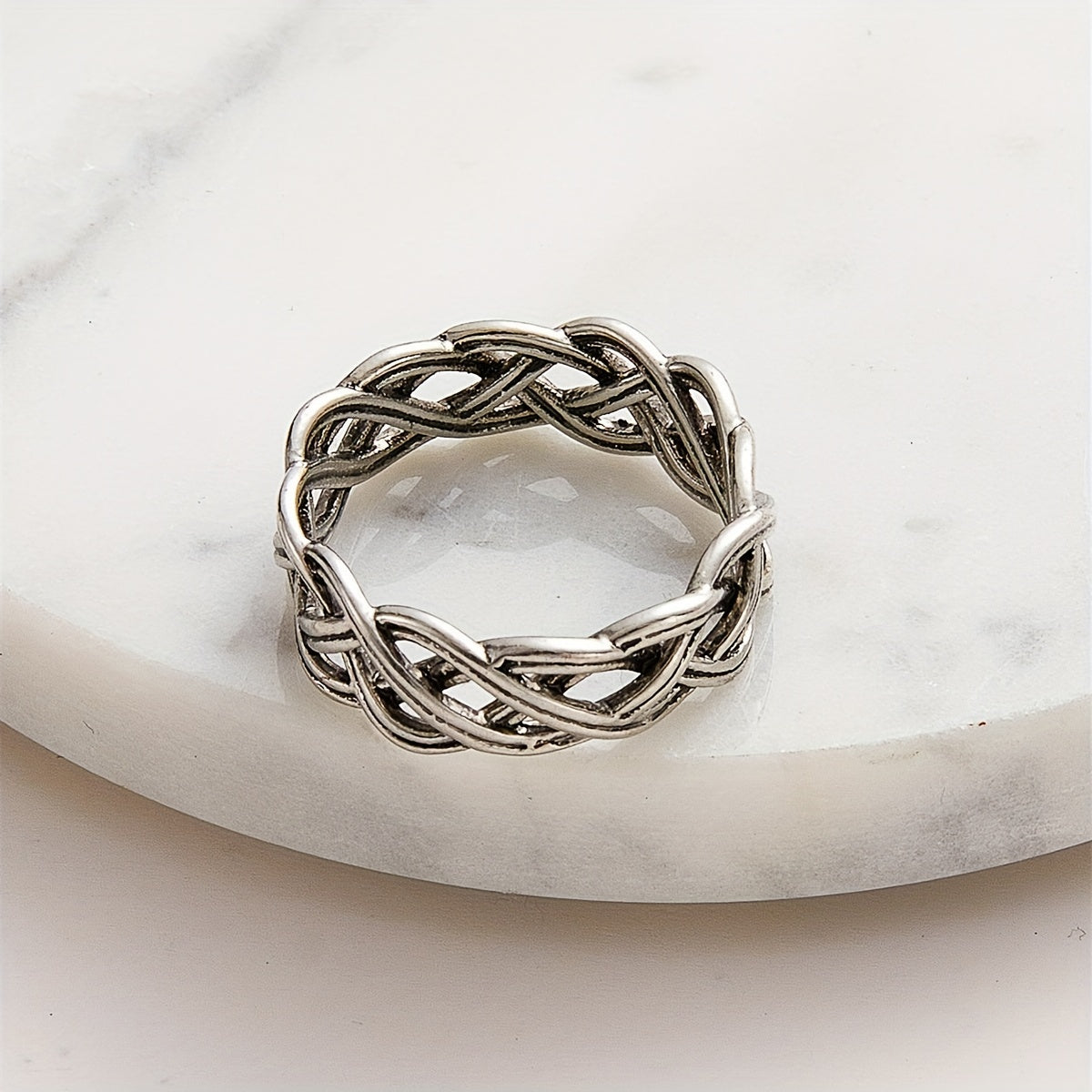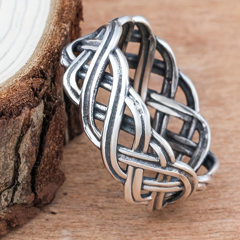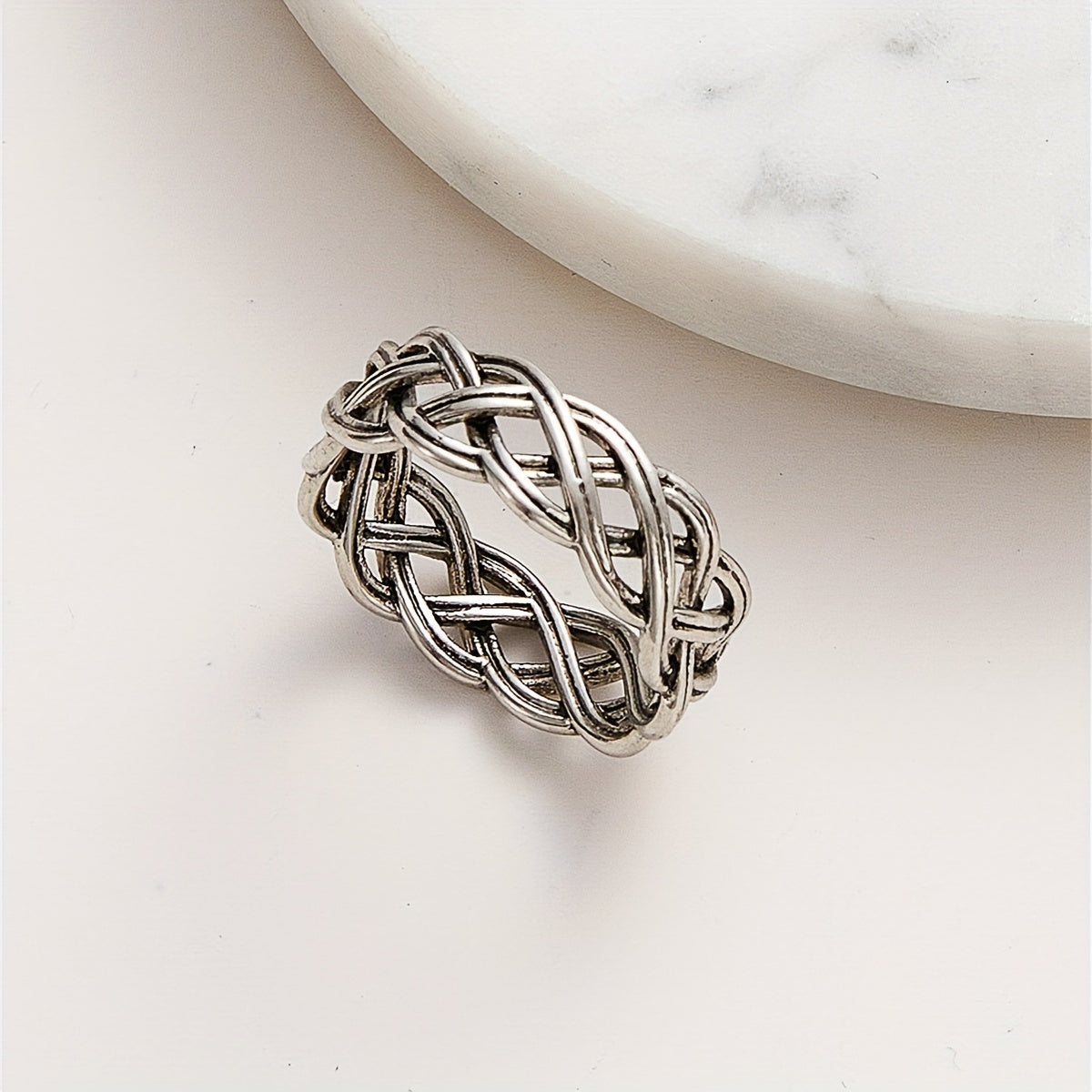 Retro Men's Braided Cross Knot Ring Distressed Design