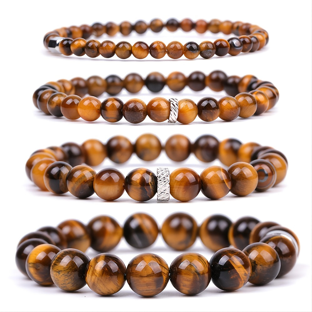 This unique Tiger Eye stone bracelet features round beads in 4, 6, and 10mm sizes. It makes a great accessory and gift for any occasion.