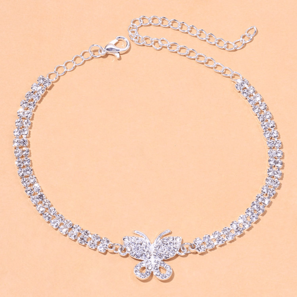 Add a touch of glamour to your look with this stunning glitter rhinestone anklet featuring a butterfly charm. Perfect for weddings or as a gift for women.