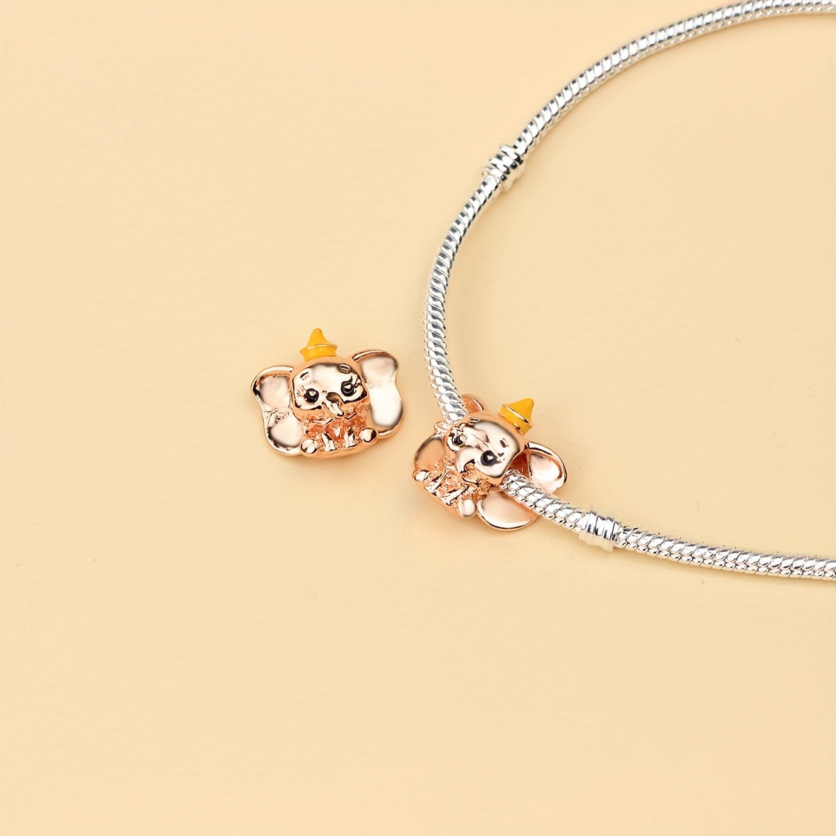 Create stunning jewelry with these large pore beads featuring rose gold and silver elephant charms.