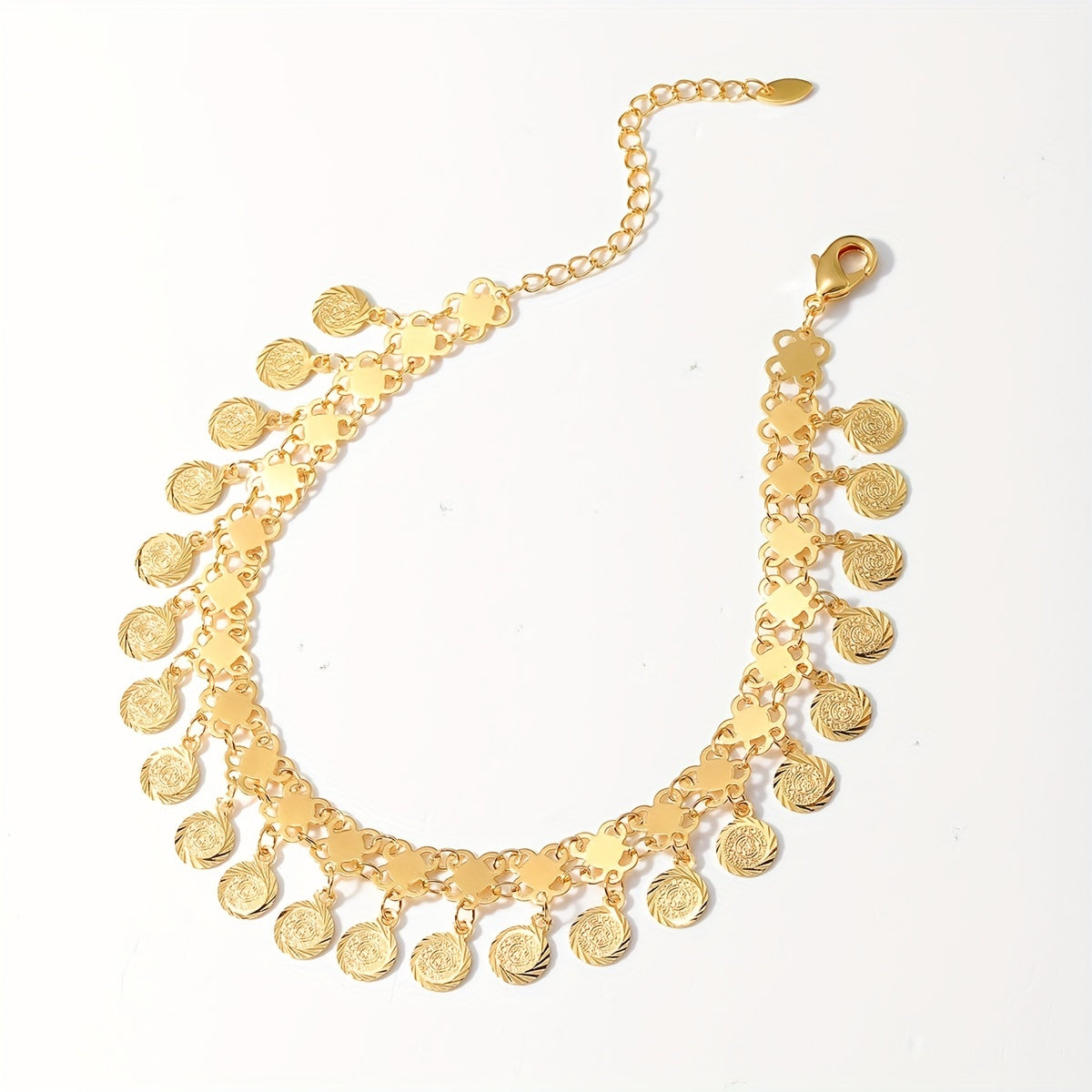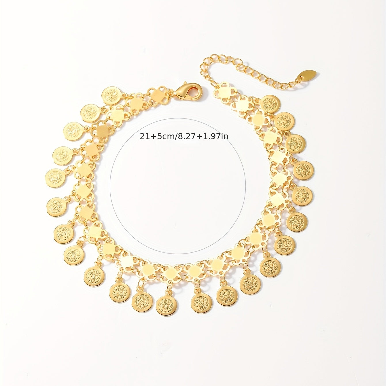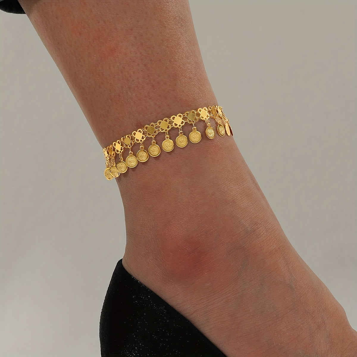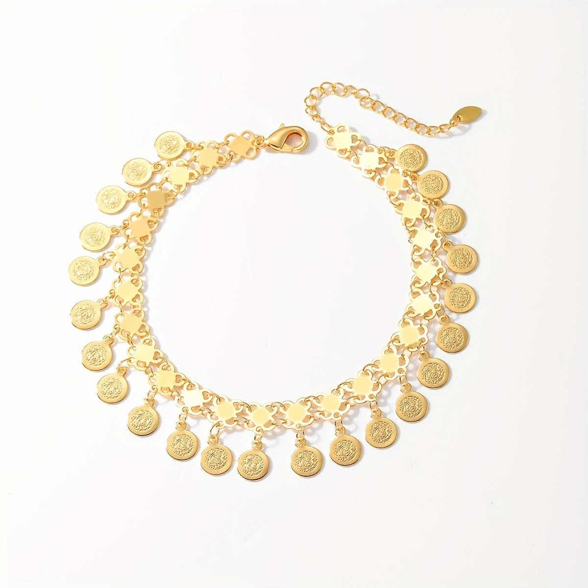 Add a touch of summer style with this all-match double layer anklet featuring round beads and coins. Perfect foot jewelry for women and girls.