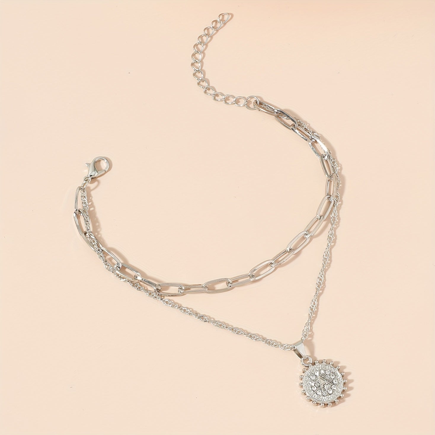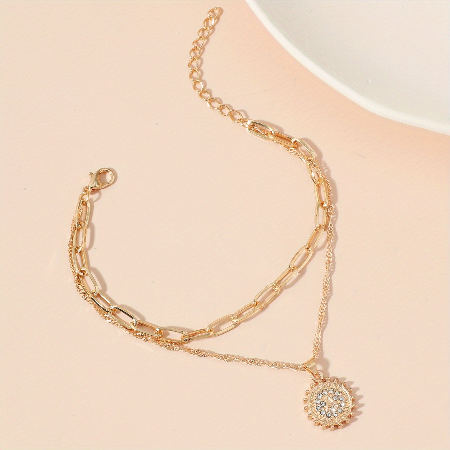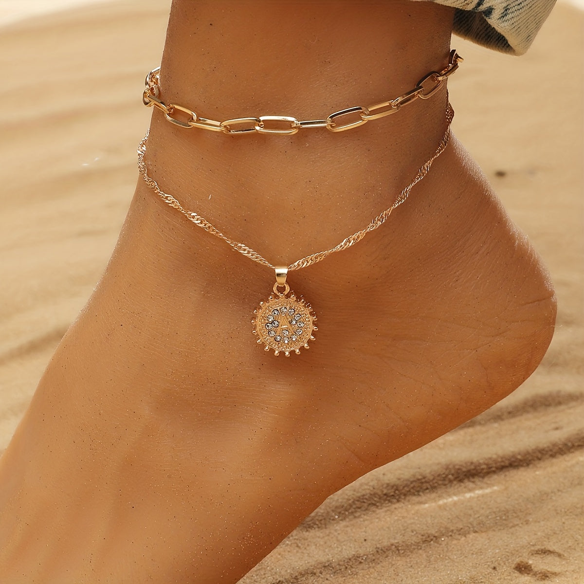 This stylish anklet features a double layer design with alphabet charms, perfect for couples on the beach.