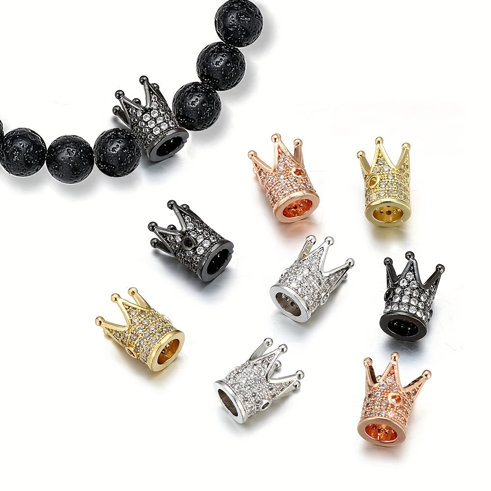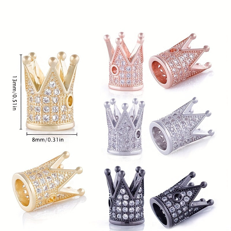Add a touch of regal elegance to your bracelet or necklace with this King Queen Crown Charm Spacer Bead. Made of brass with sparkling zircon stones, this charm is perfect for DIY jewelry making crafts.