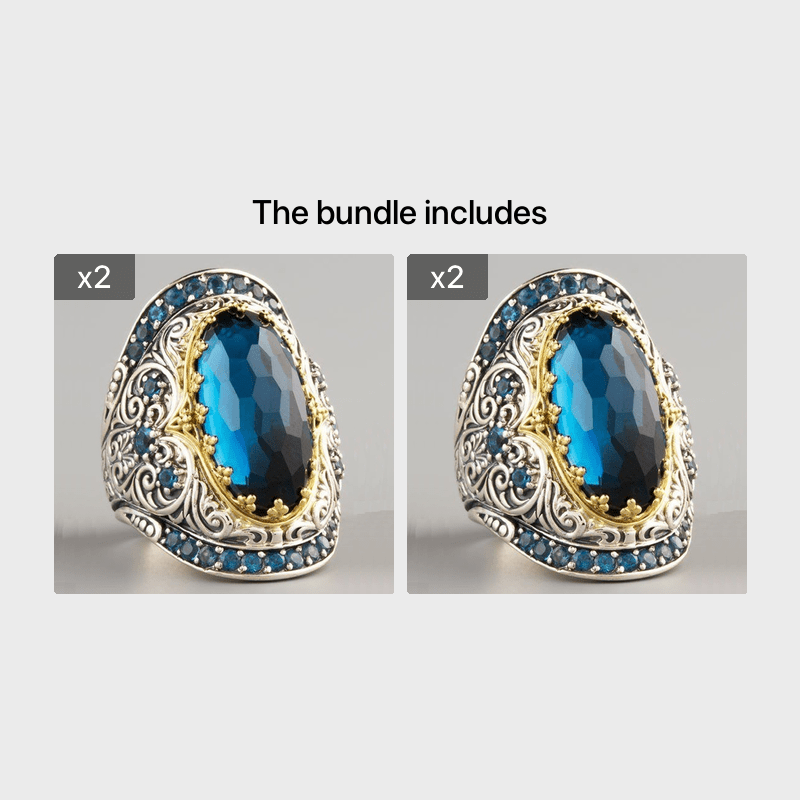 Sapphire Ring Geometric Engagement Punk Handcraft Flower Pattern Ring