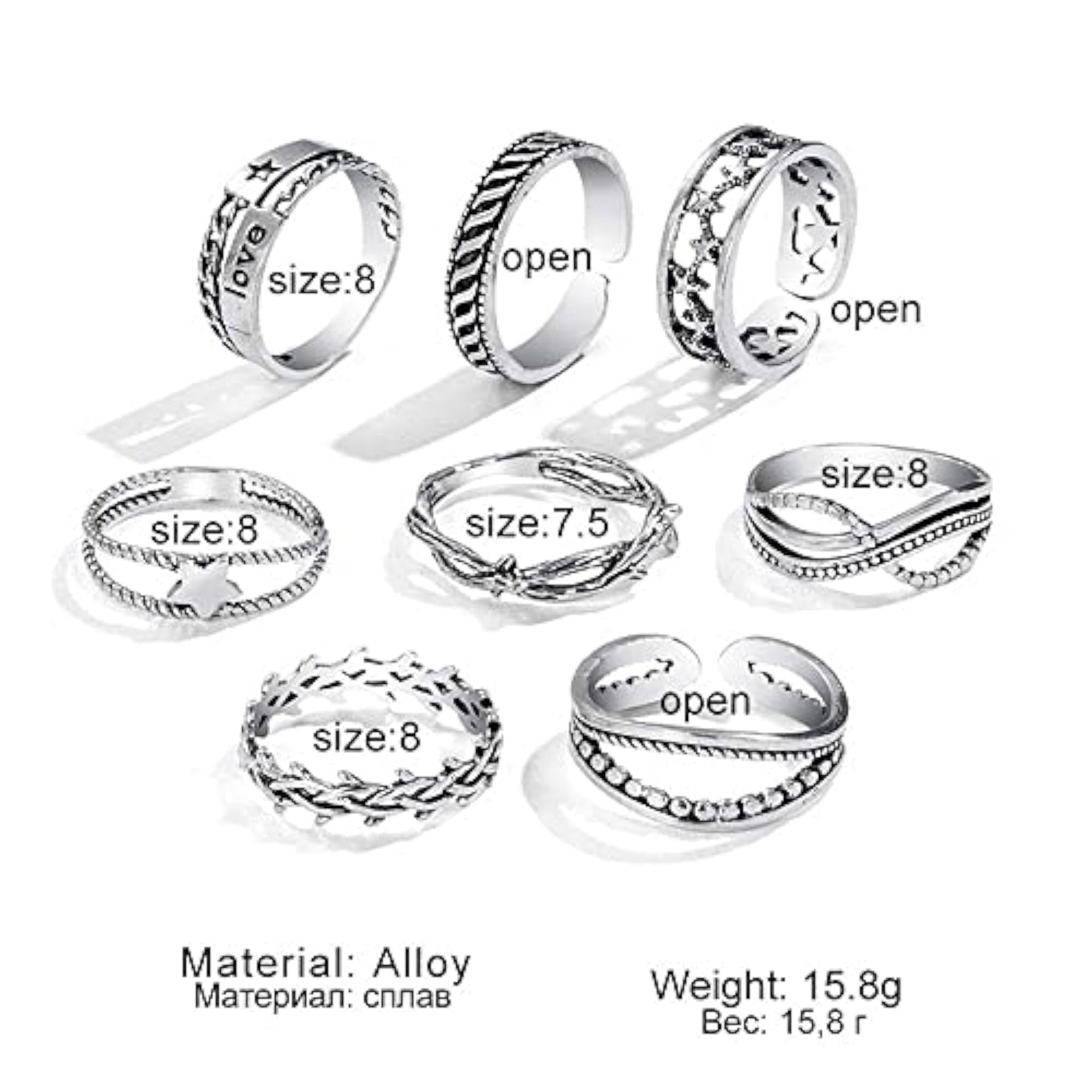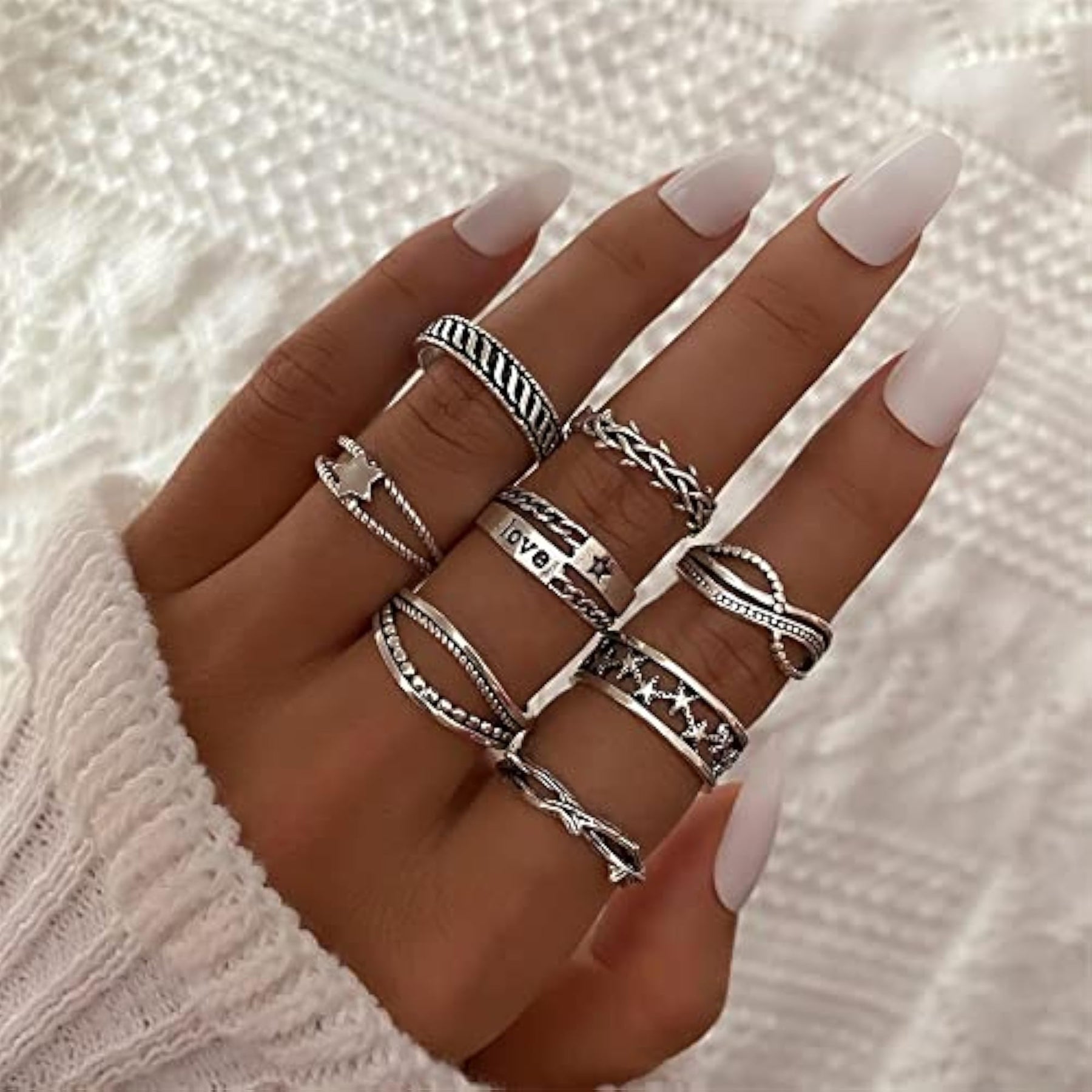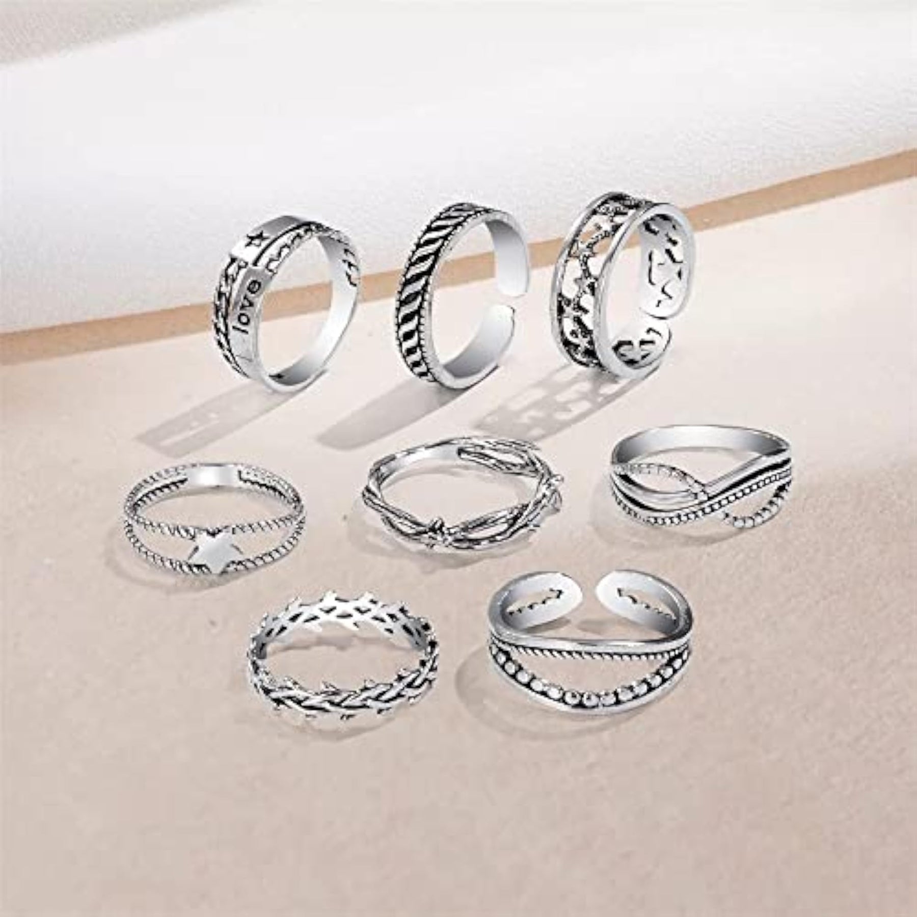 Enhance your boho chic look with this set of 8 stylish midi rings. Made from high-quality metal, these rings are perfect to add a touch of glamour to your outfit.