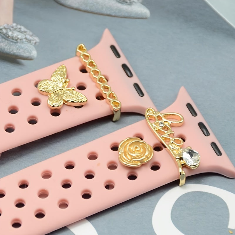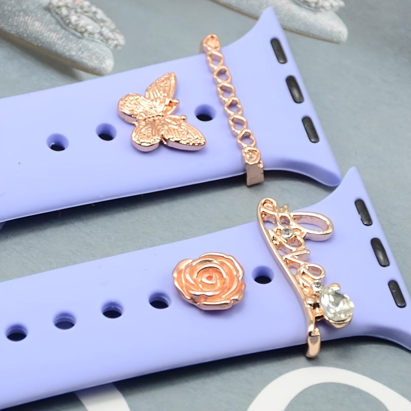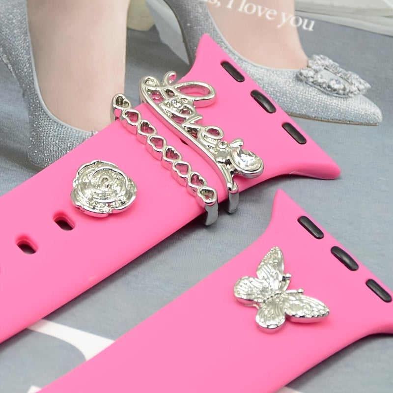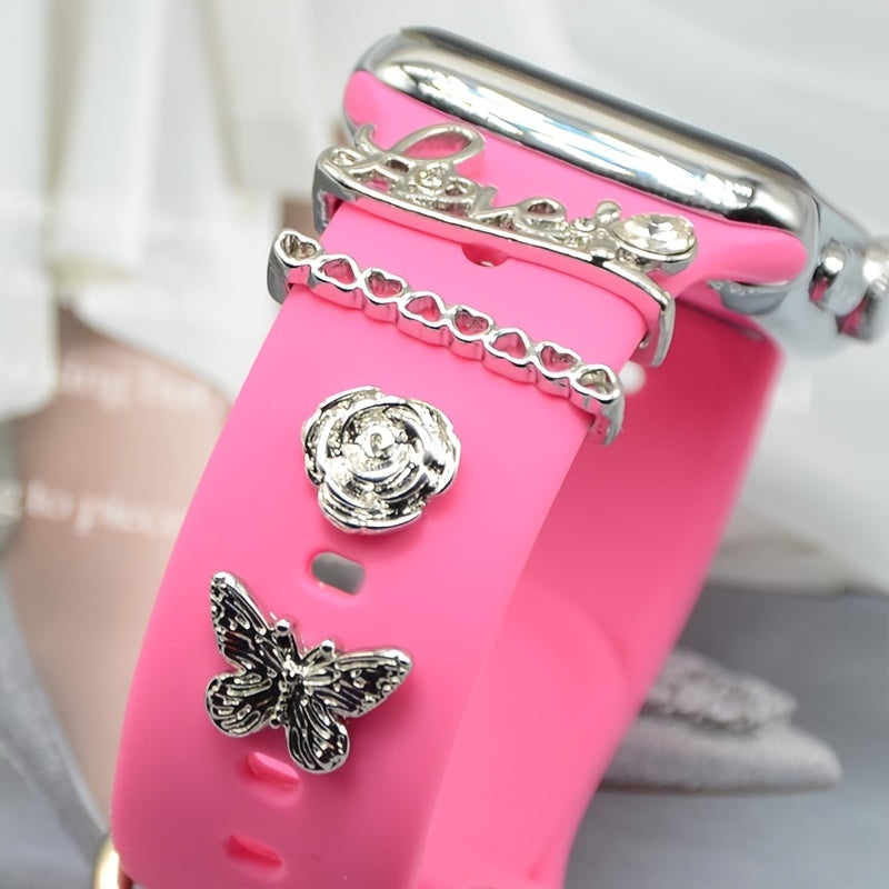 Enhance the look of your watch strap with these beautiful silicone decoration accessories. Features butterfly, flower, and heart patterns.