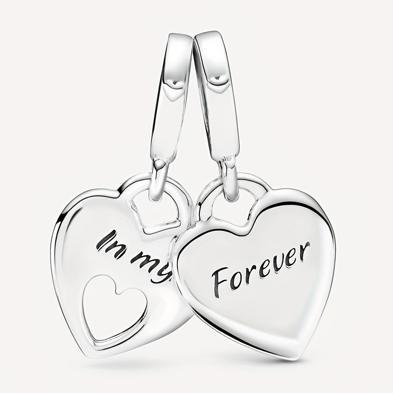 This set features a heart pendant with the inscription 'One Heart Two' and is studded with artificial diamonds. Perfect for creating DIY jewelry.