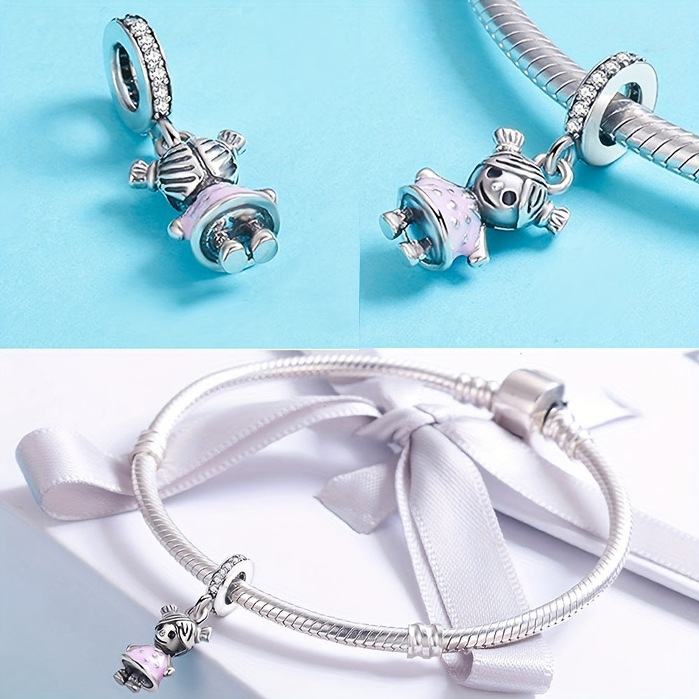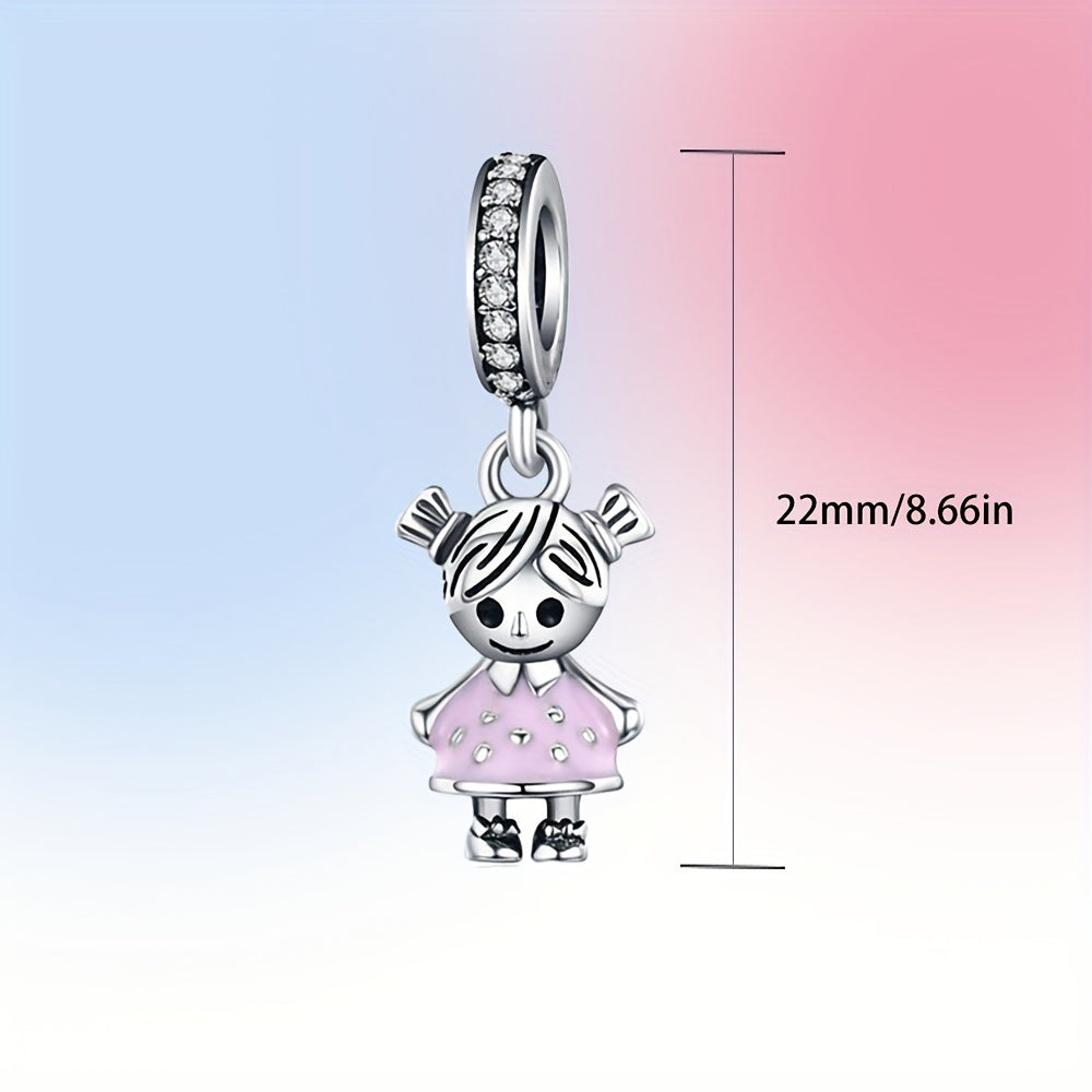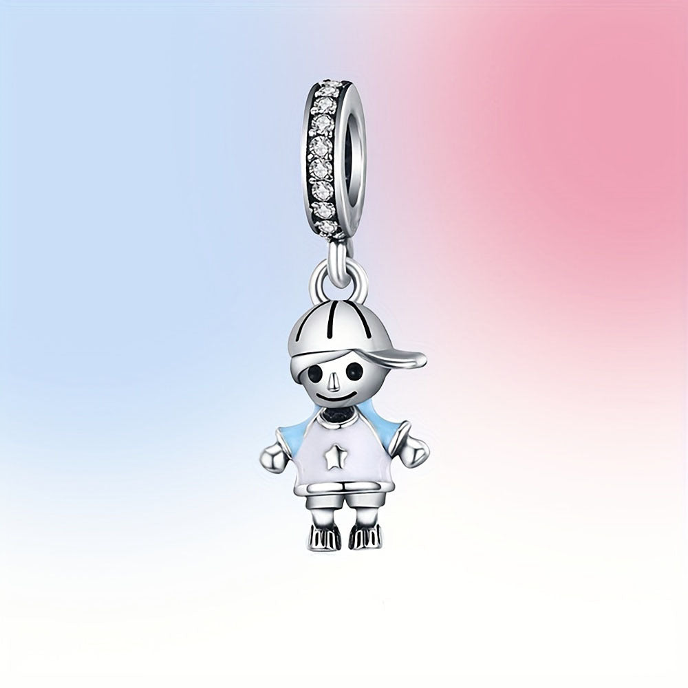 This charm accessory is perfect for creating unique jewelry pieces. It features a silver plated enamel design of a little girl and boy that can be used to customize bracelets or necklaces.