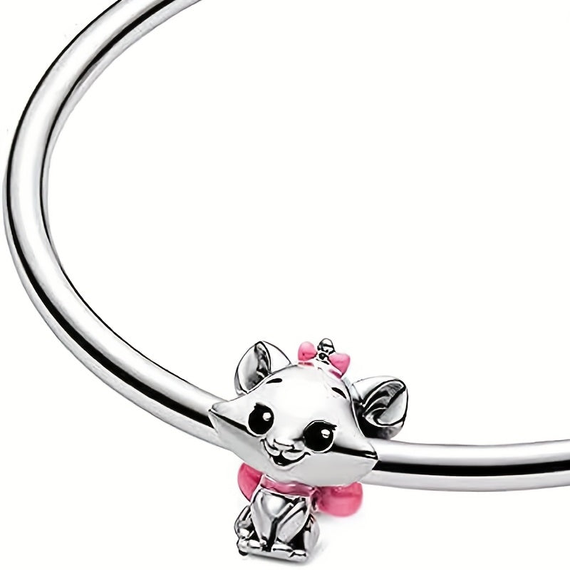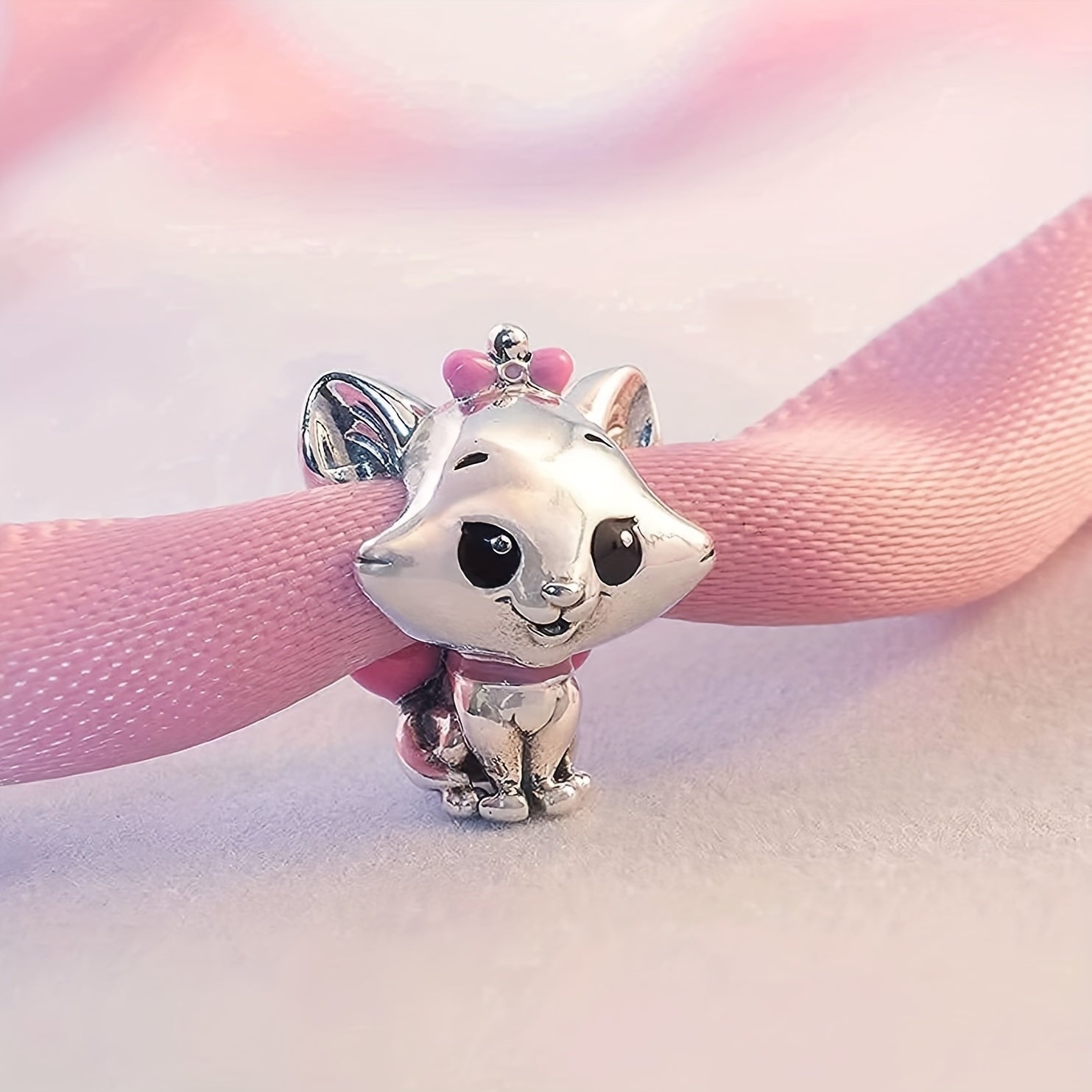 Adorable silver plated fox pendant suitable for DIY beaded bracelets, perfect as a birthday jewelry gift for women.
