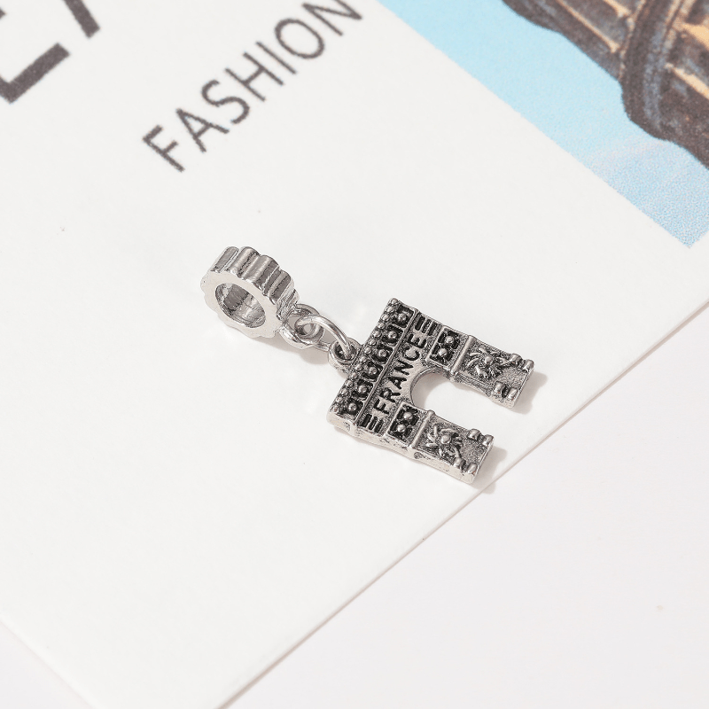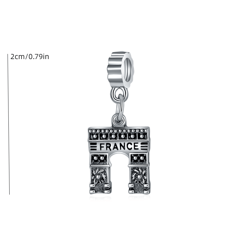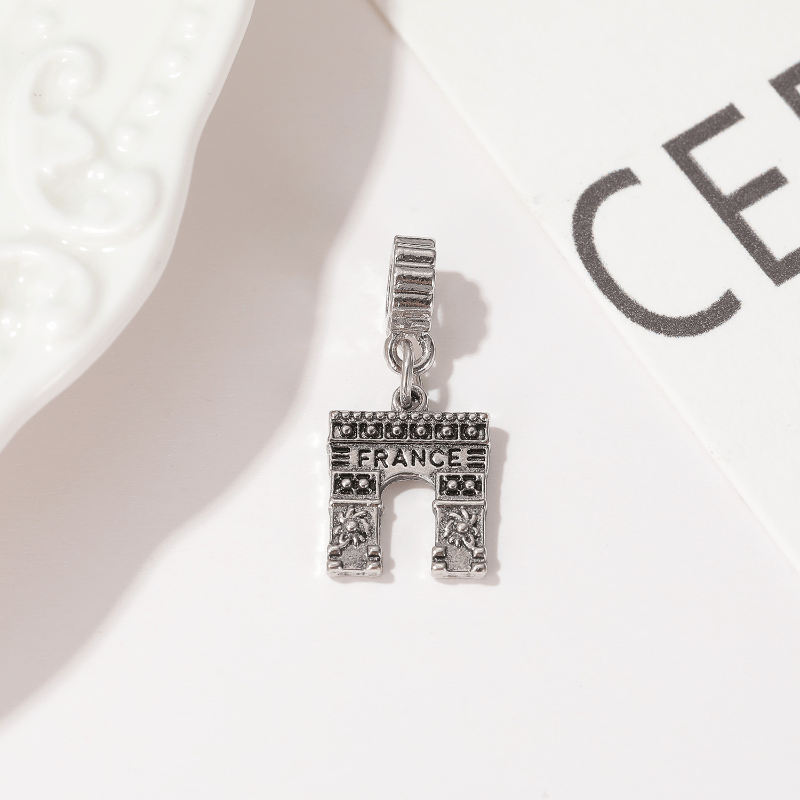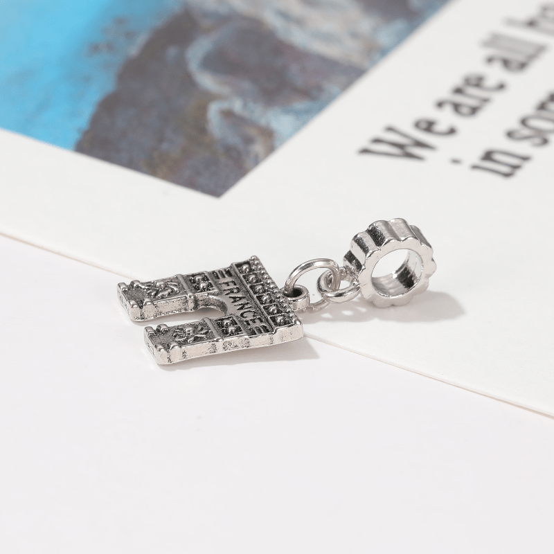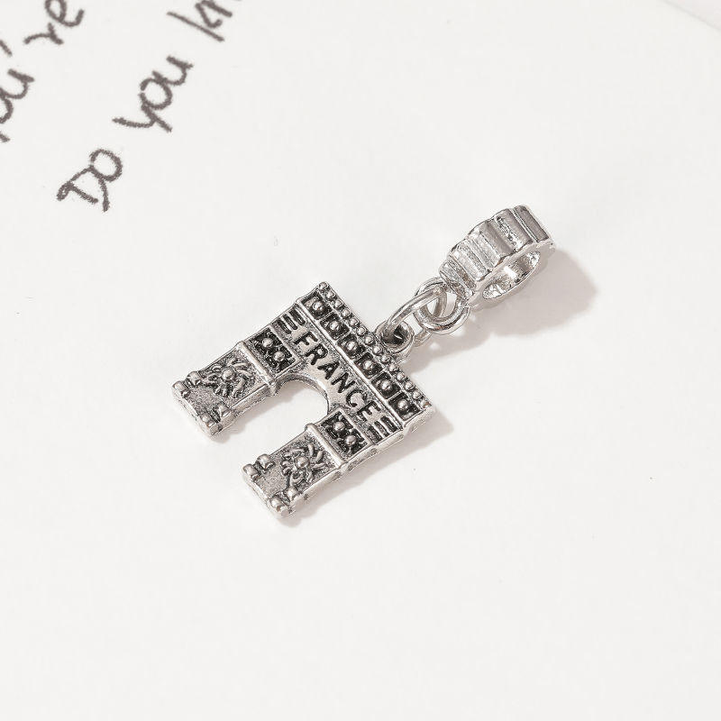 Add a touch of elegance to your jewelry creations with this silvery Arc De Triomphe alloy pendant. Perfect for crafting your own bracelet, necklace, or eardrops.