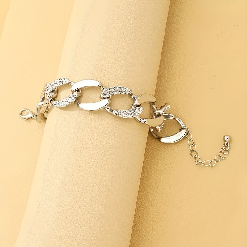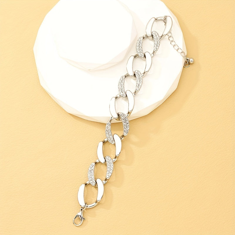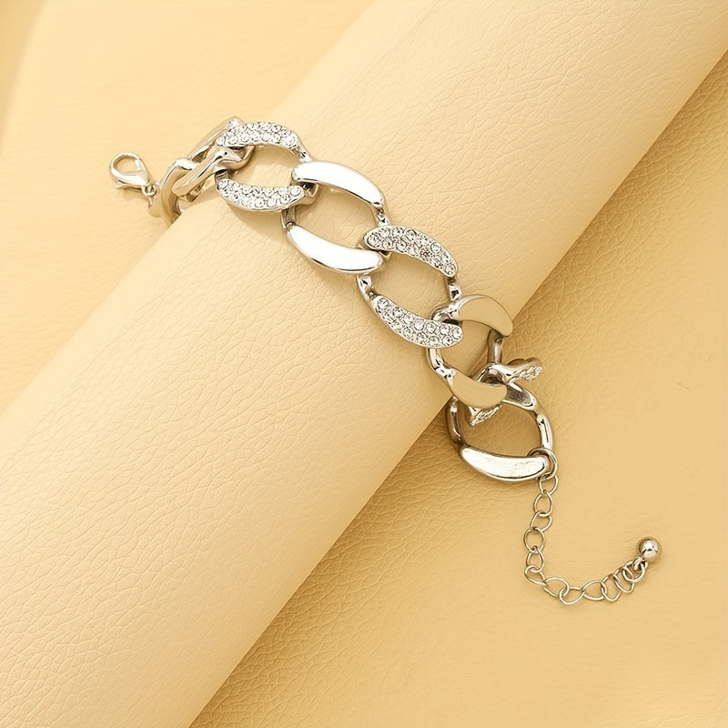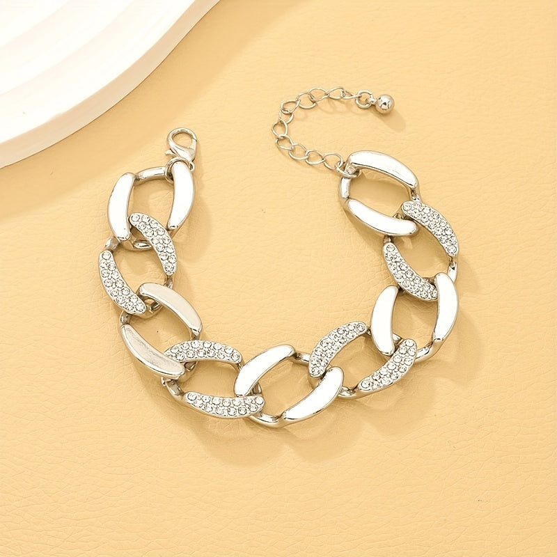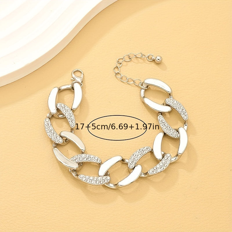 Elevate your style with this stunning silvery chunky Cuban chain bracelet adorned with inlaid rhinestones. Perfect for both females and males who appreciate vintage hand jewelry.