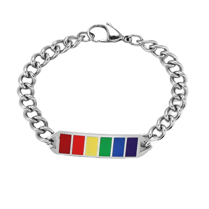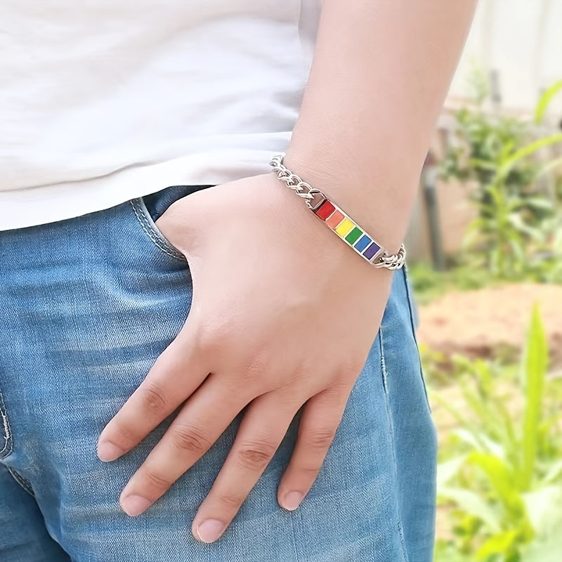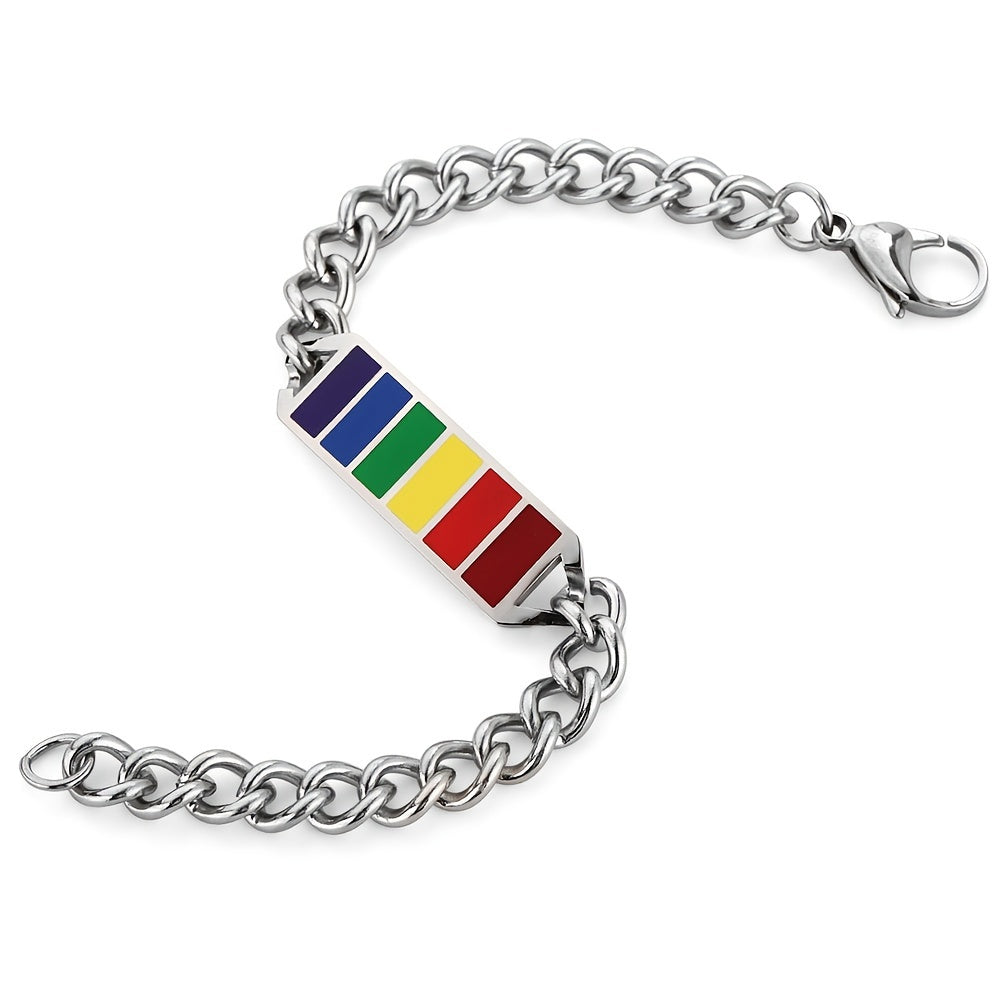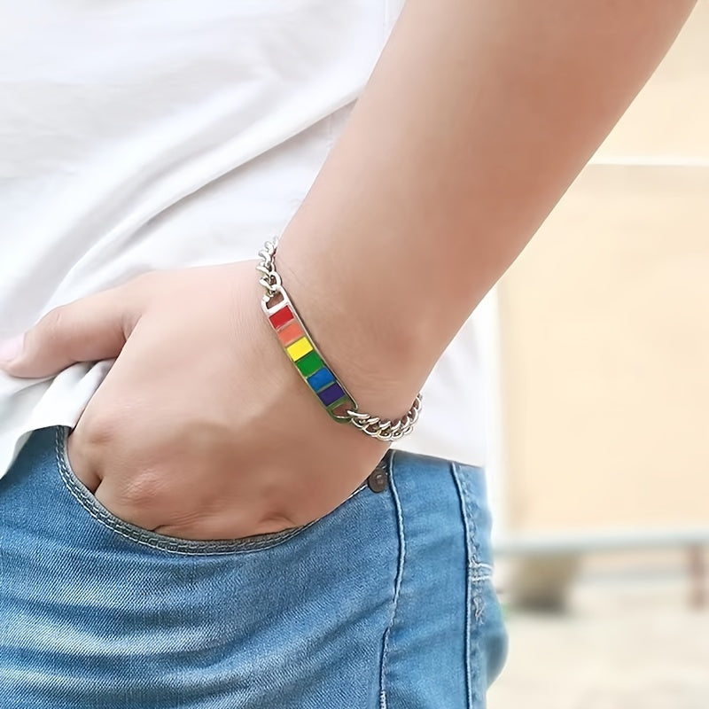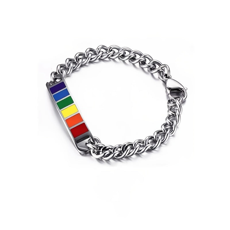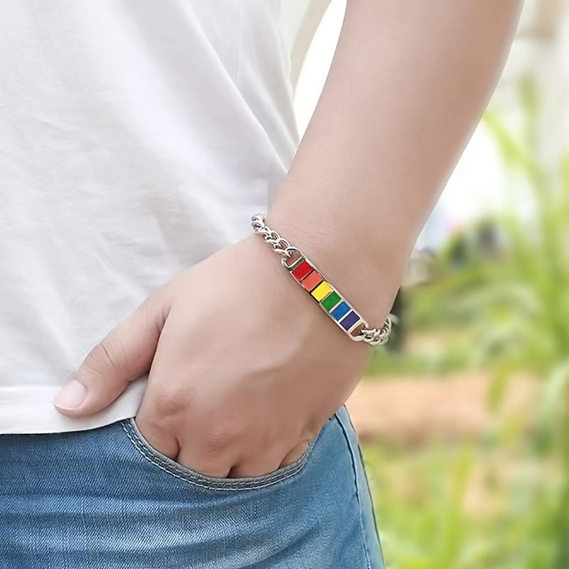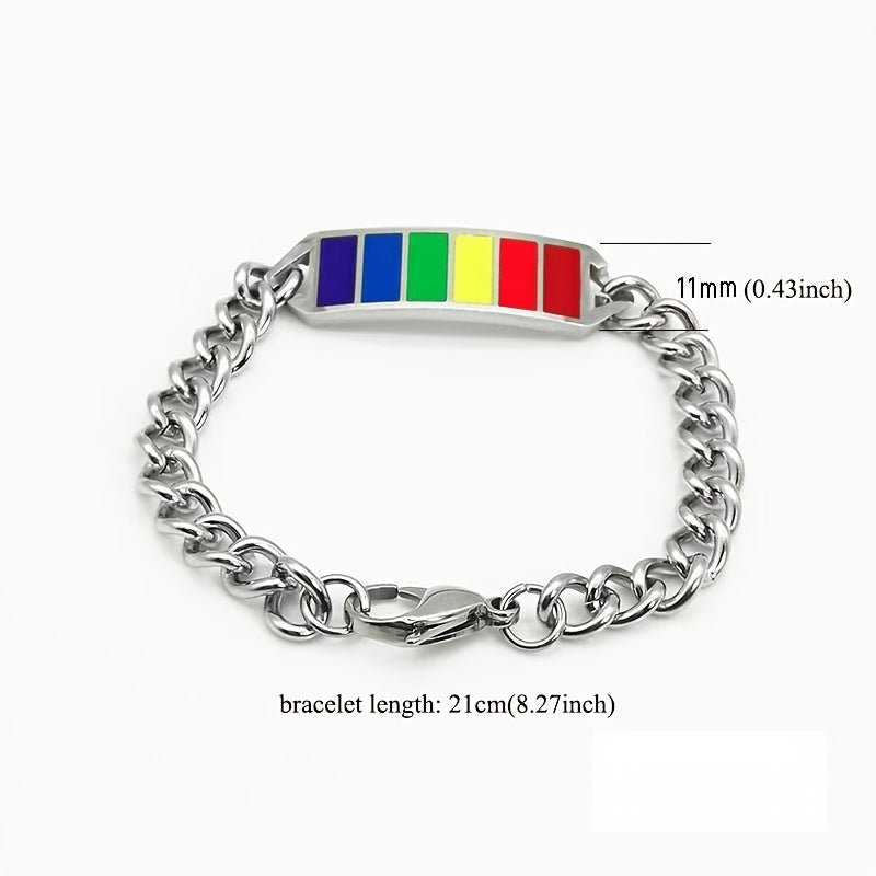 This stylish bracelet features square rainbow cubes that symbolize friendship. Made of durable stainless steel, it is a perfect gift for your friends.