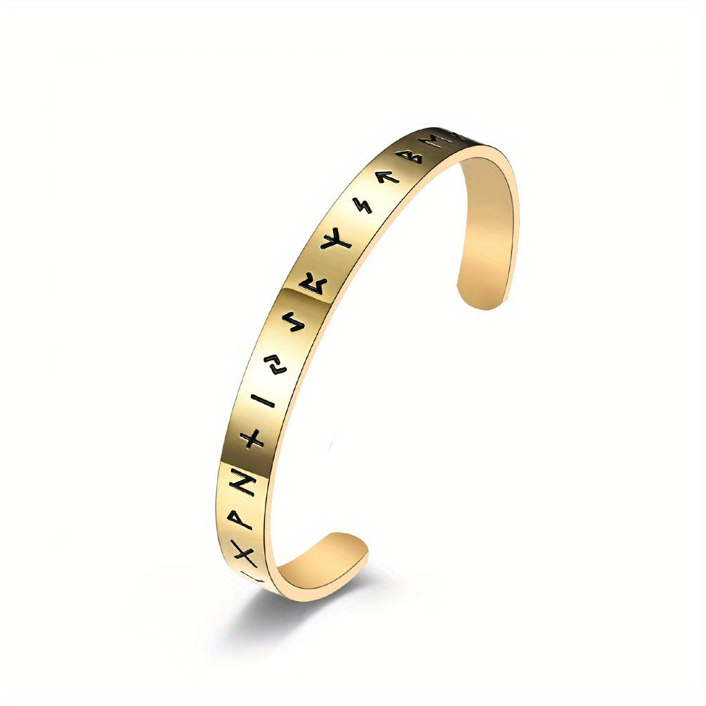 Stainless Steel Viking Rune Alphabet Bracelet Adjustable Open Cuff