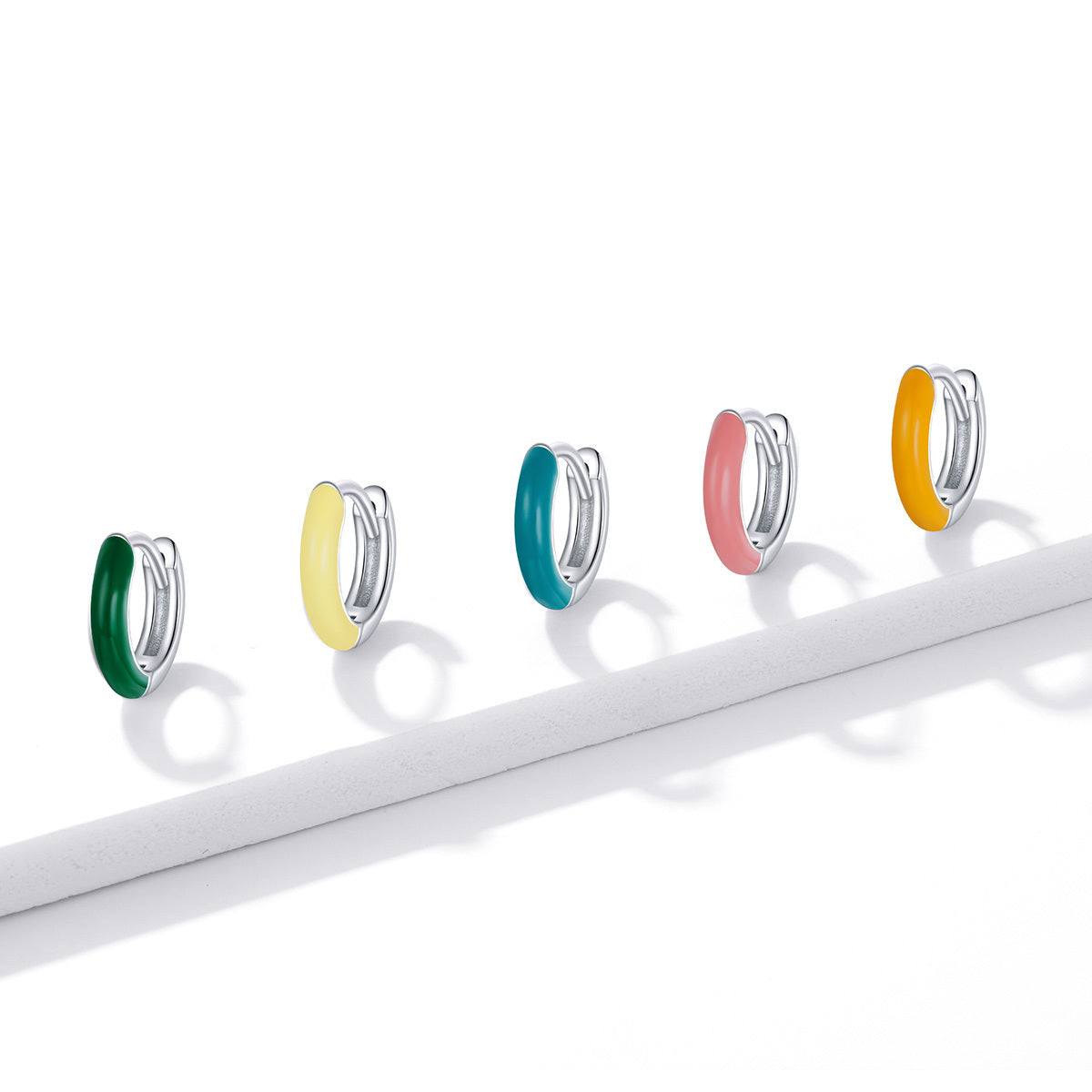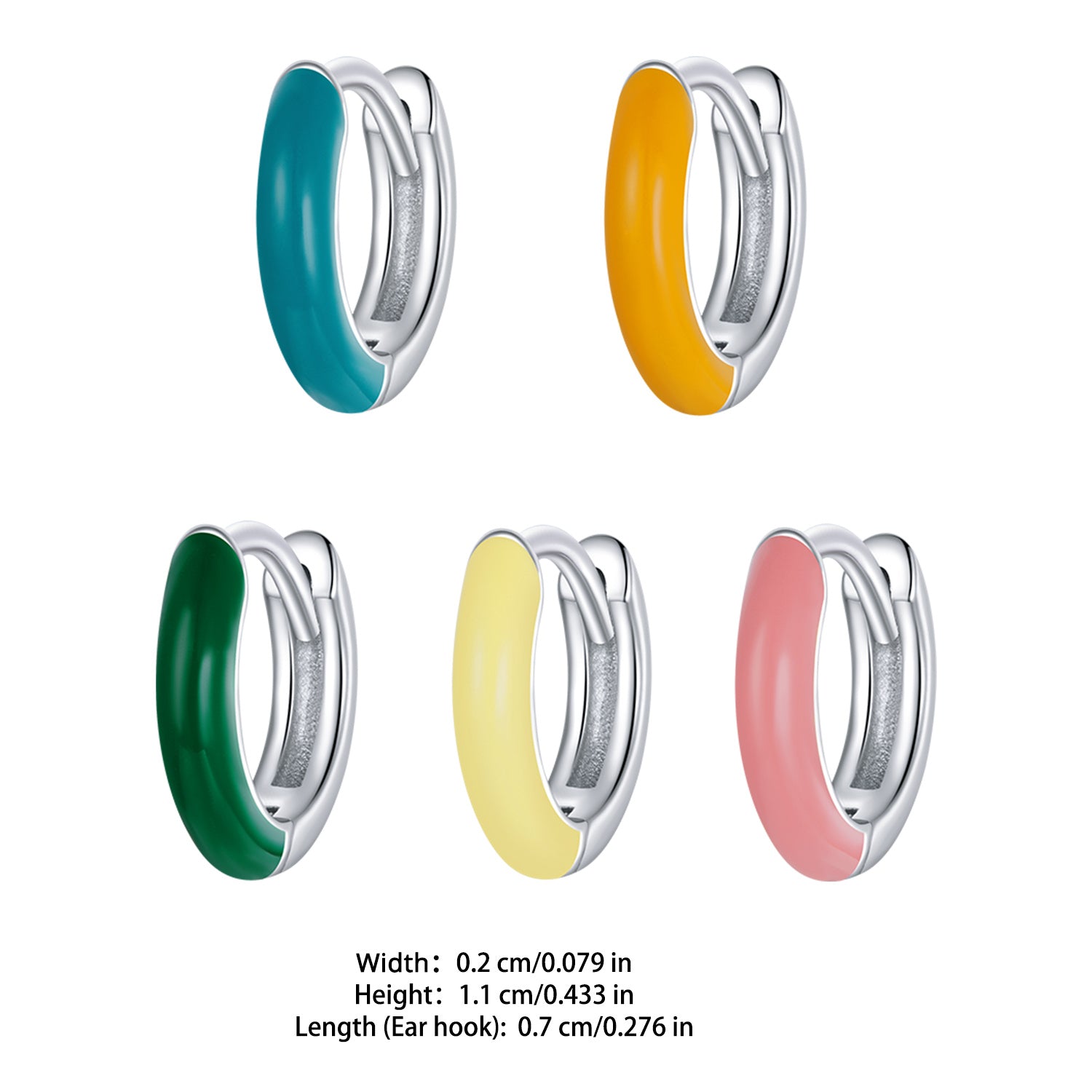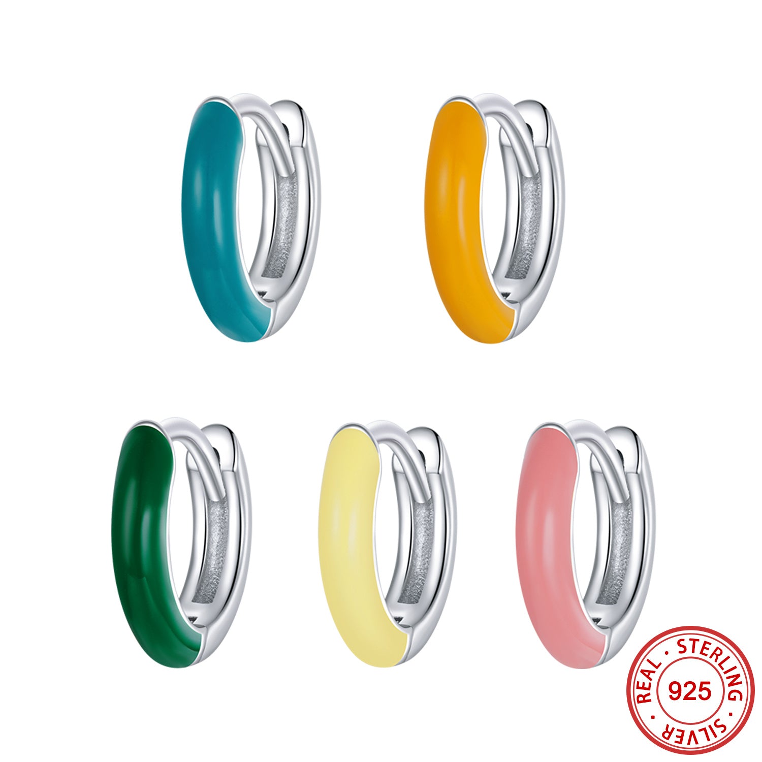 Sterling 925 Silver Enamel Hoop Earrings Minimalist Style