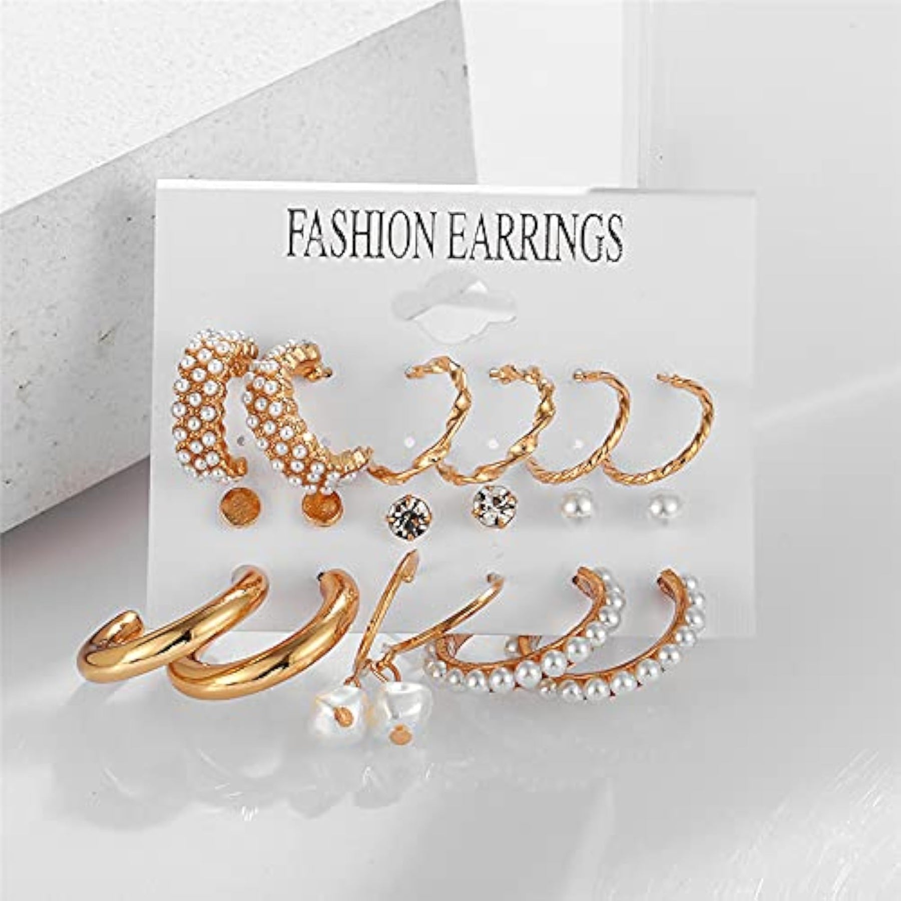 Get this stylish combo pack featuring 9 pairs of metal earrings suitable for both men and women. Perfect for adding a touch of elegance to any outfit.