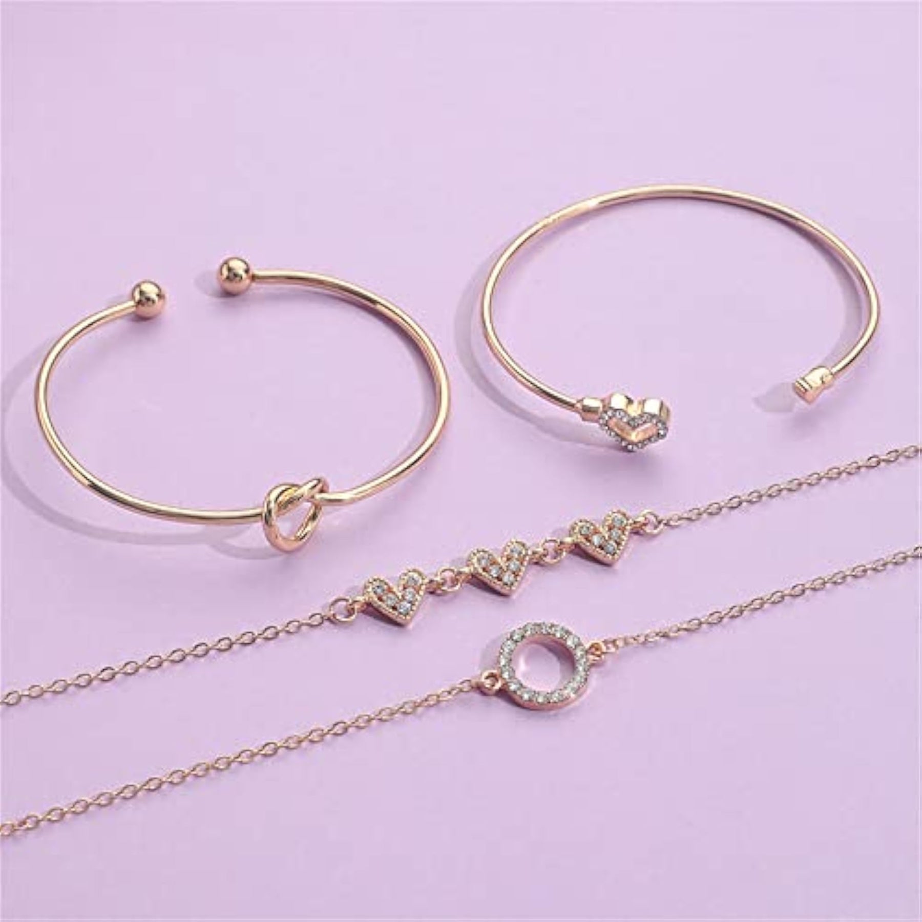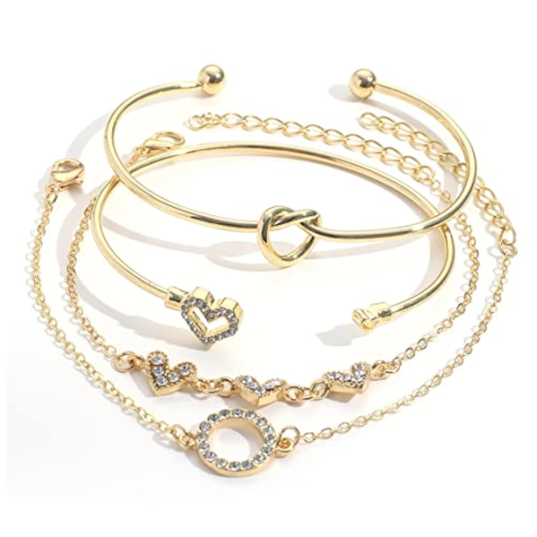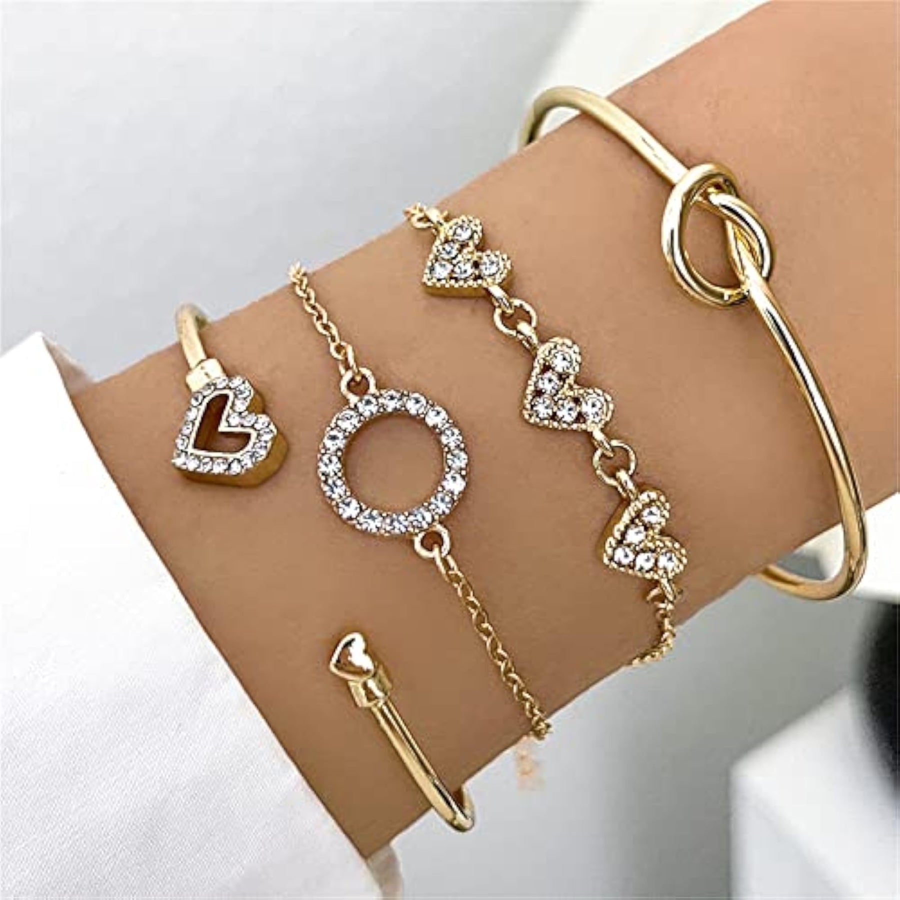 Elevate your style with this 4-piece multilayer crystal bangle bracelet set featuring captivating heart designs. Perfect for any occasion.
