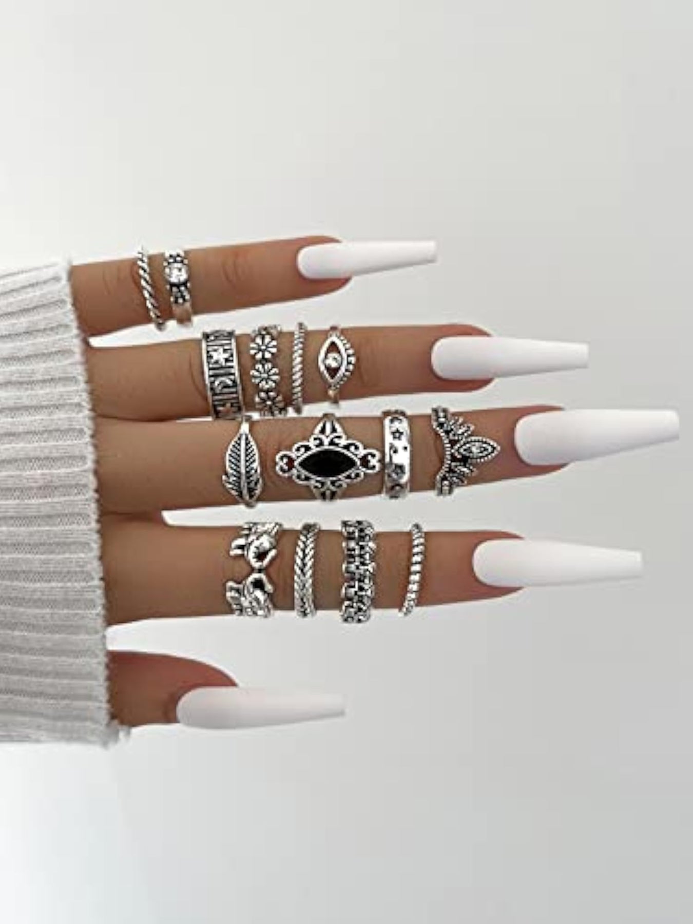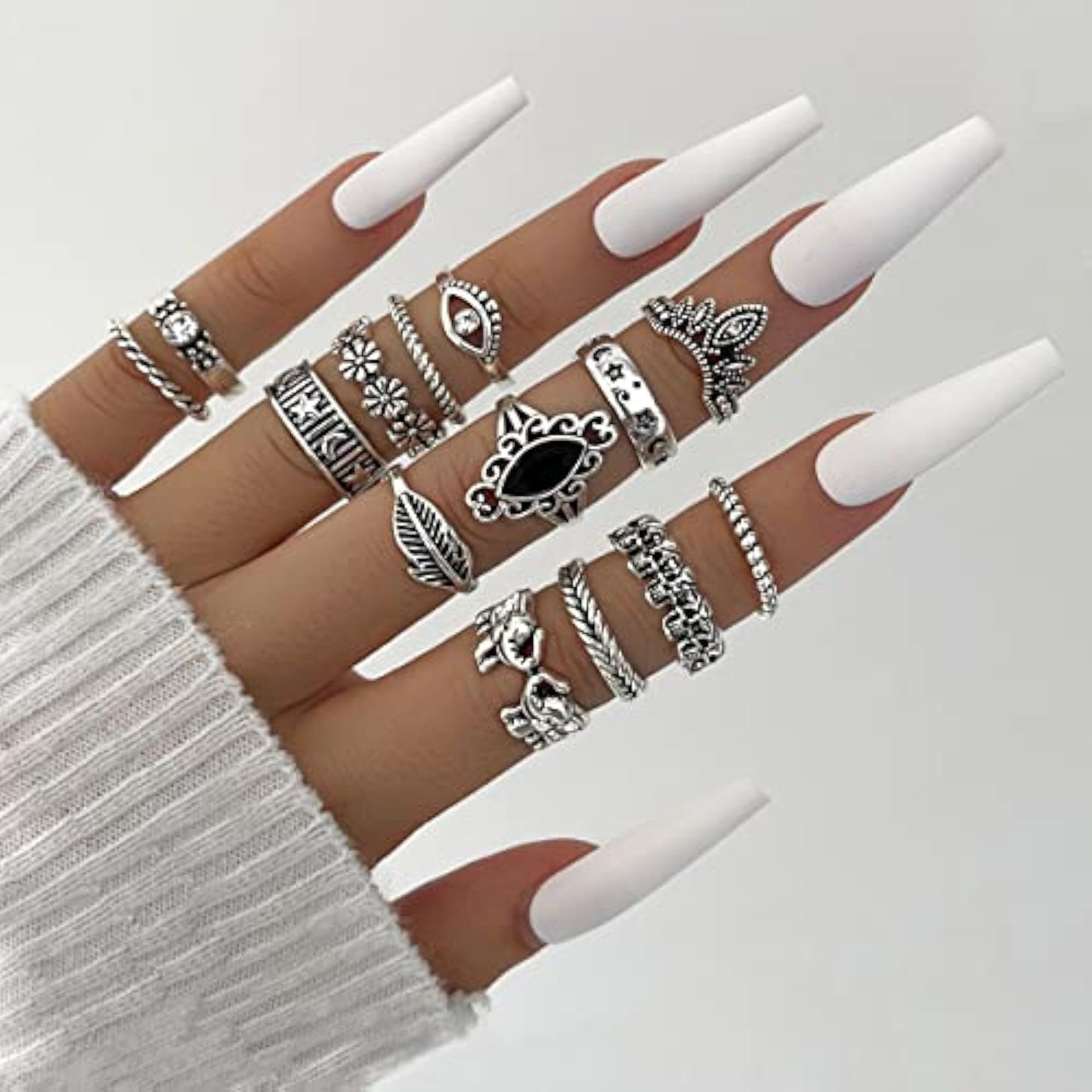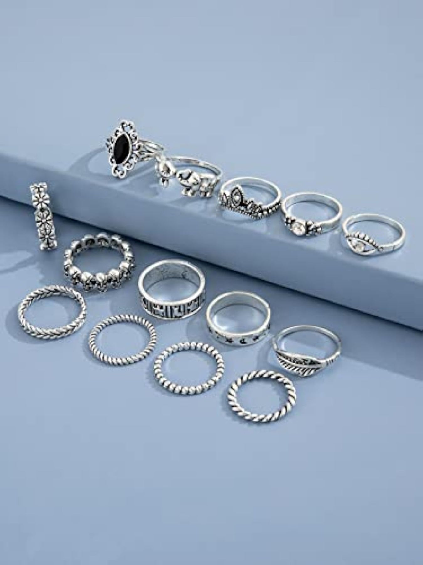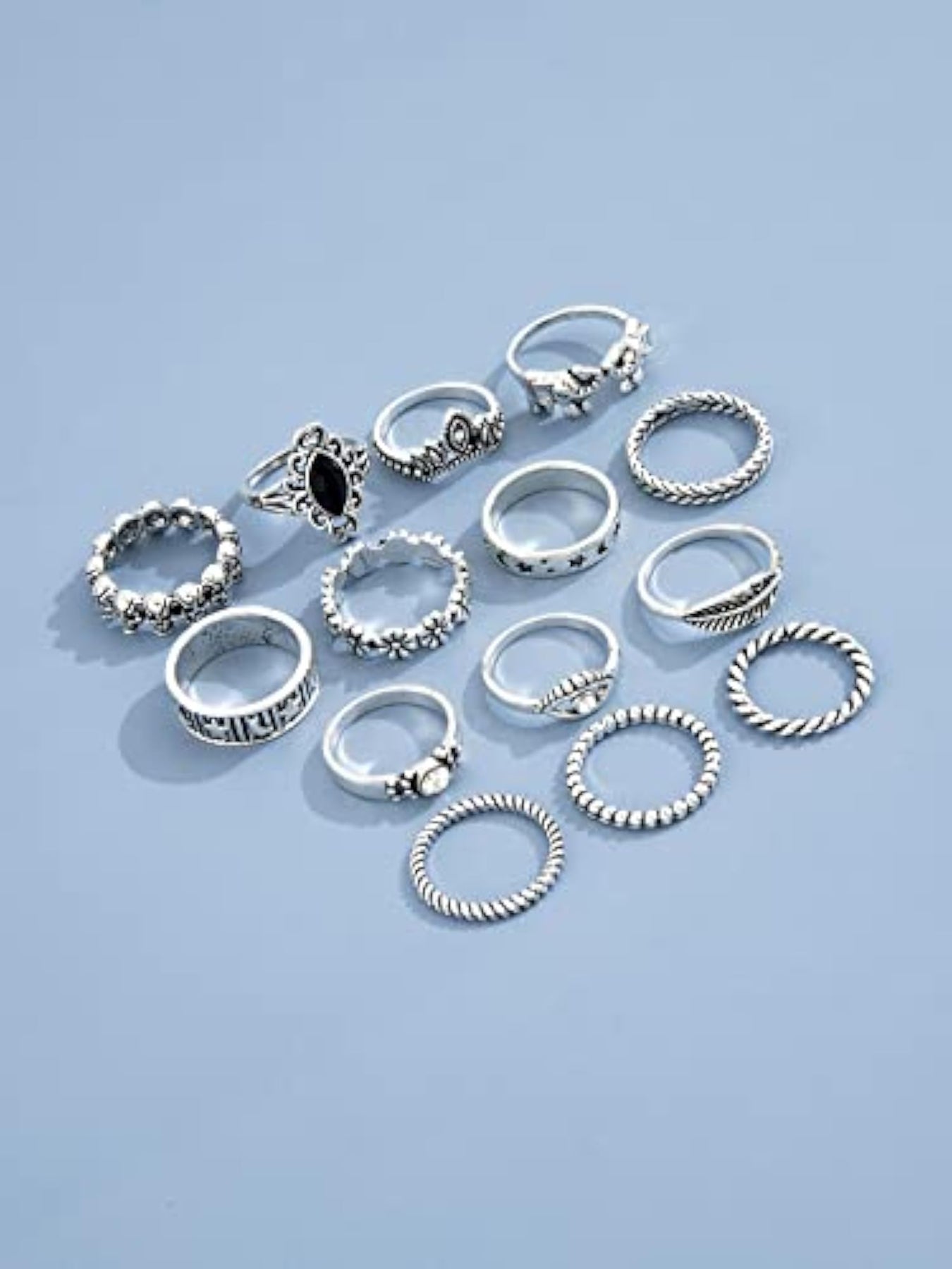 Elevate your style with this set of 14 stylish metal Boho midi finger rings. These rings are perfect for adding a trendy touch to your outfits.