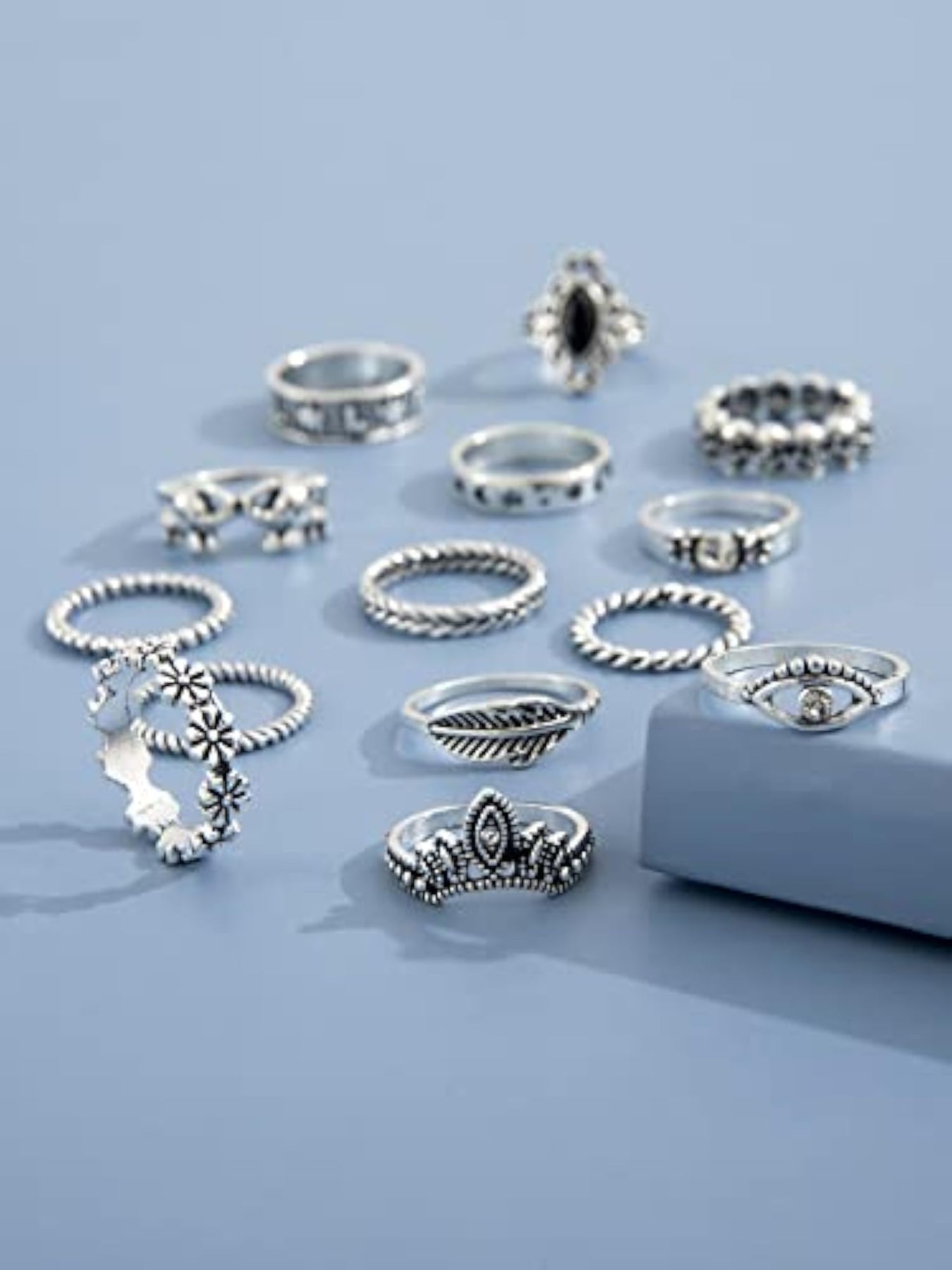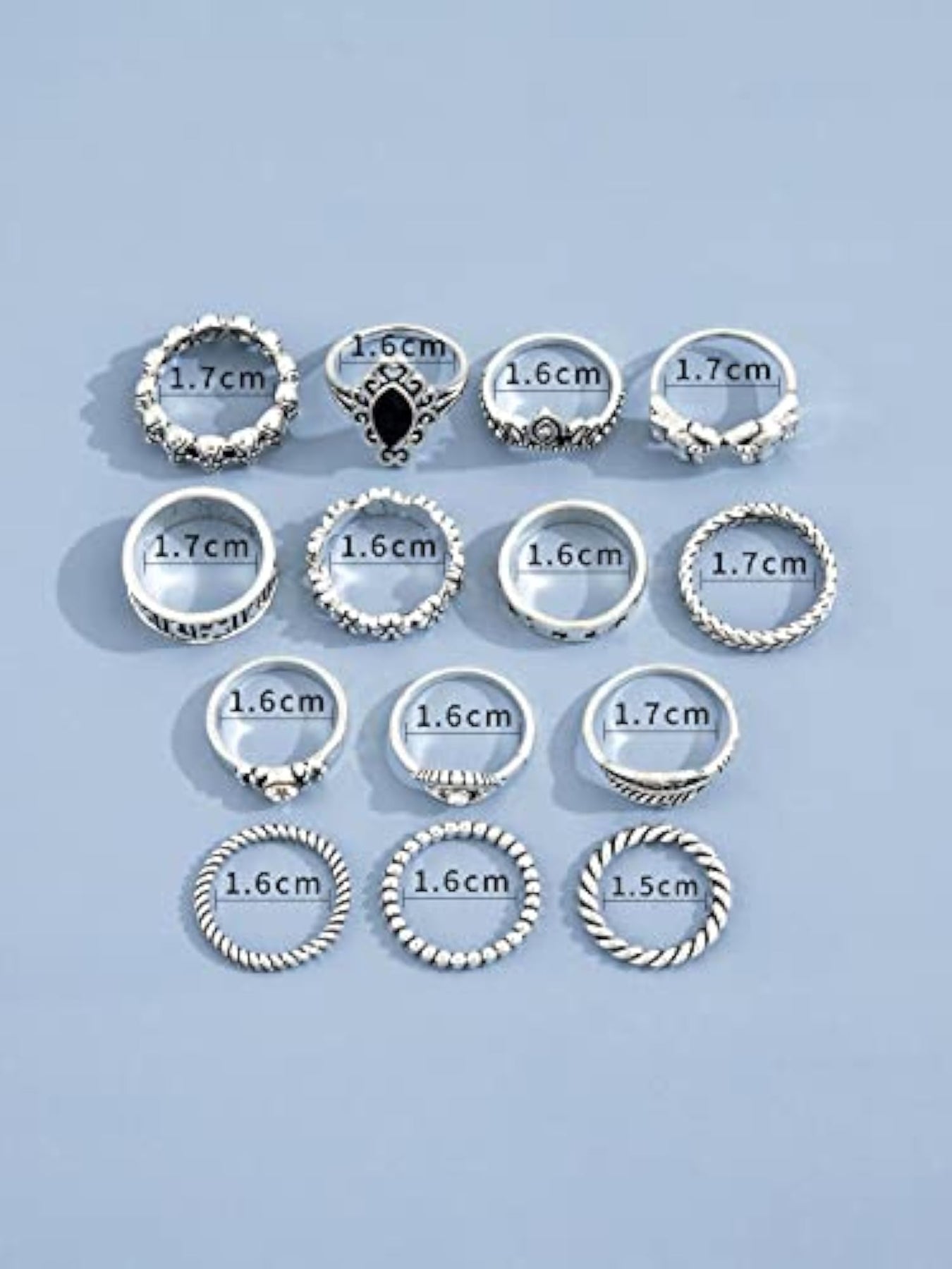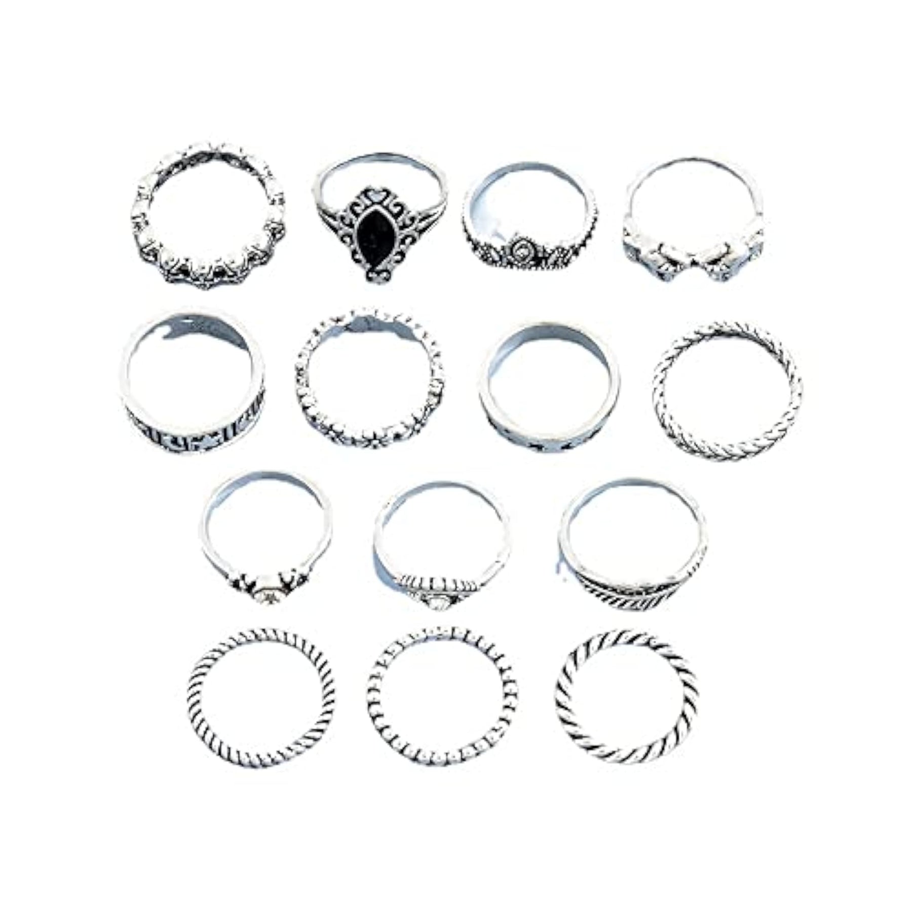 Upgrade your boho-chic look with this set of 14 stylish metal midi finger rings. Perfect for adding an edgy and trendy touch to your outfit.