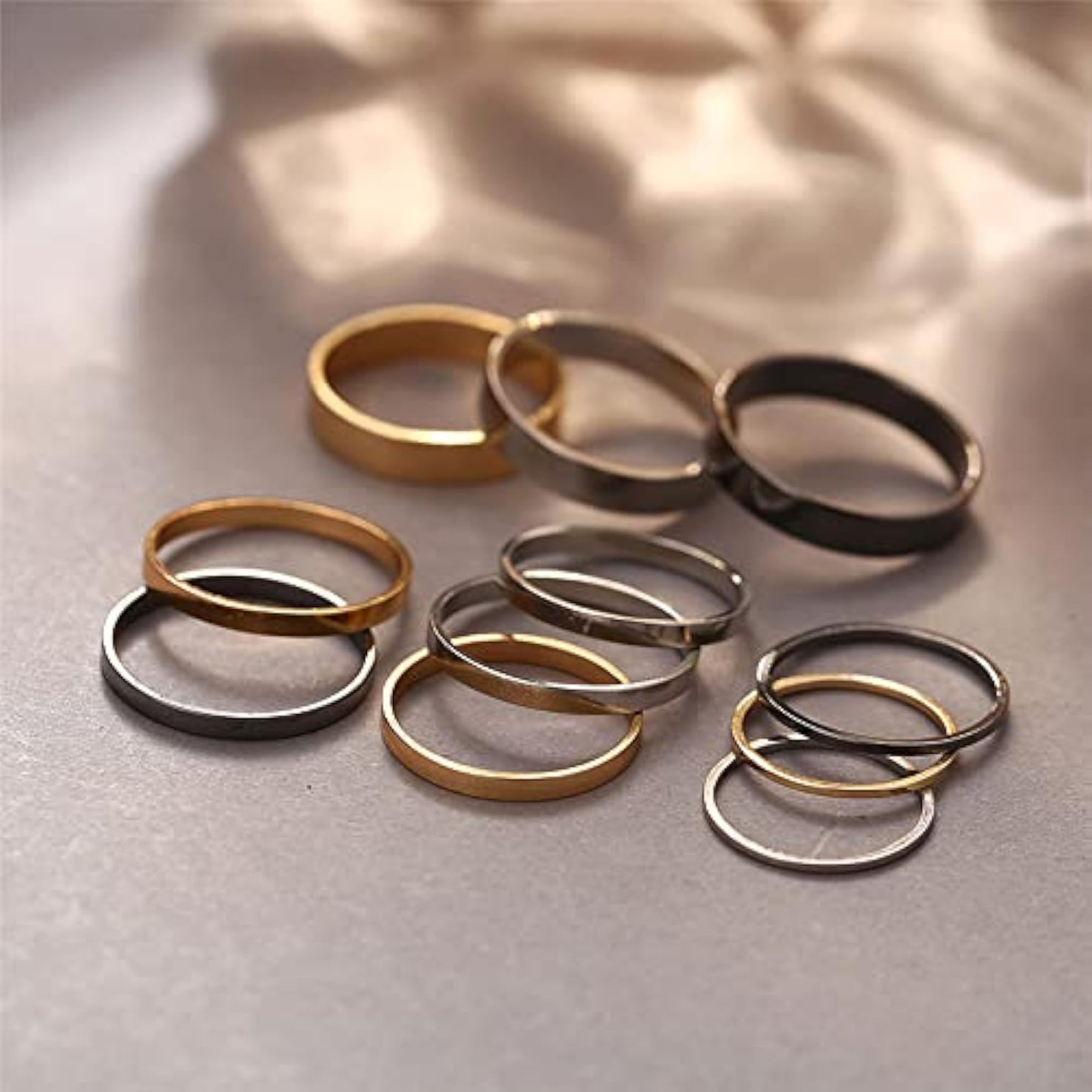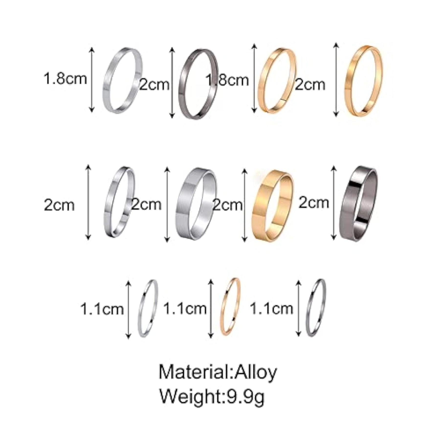 Enhance your boho chic style with this set of 11 stylish metal midi finger rings. These rings are perfect for mixing and matching to create a unique look.