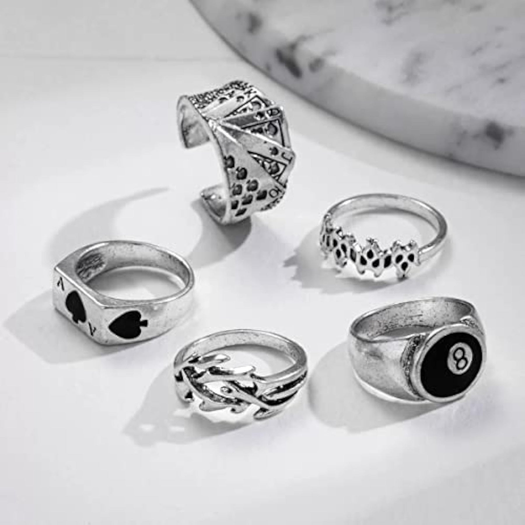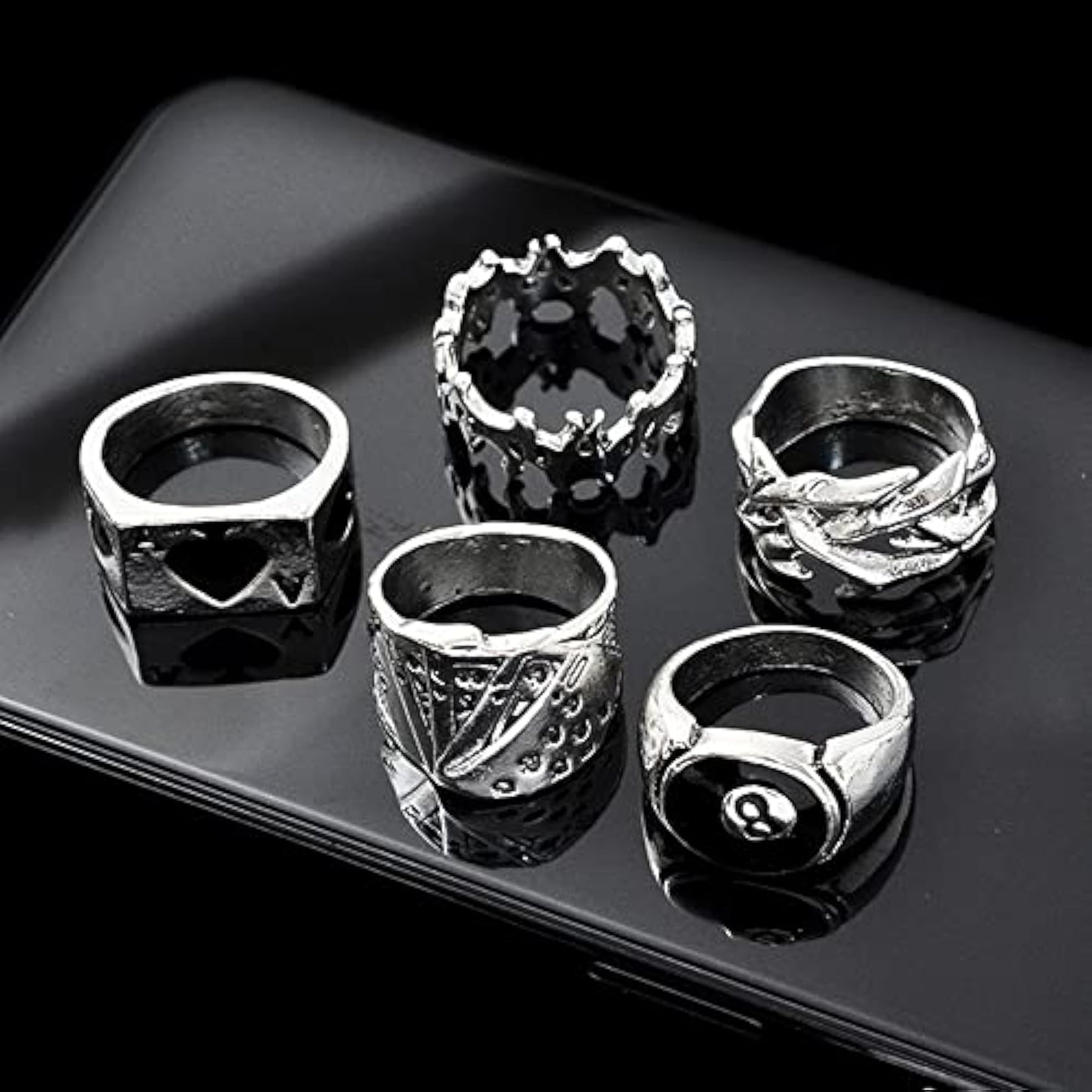 Elevate your style with this set of 5 trendy metal Boho midi finger rings. Perfect for adding a touch of glam to your look.