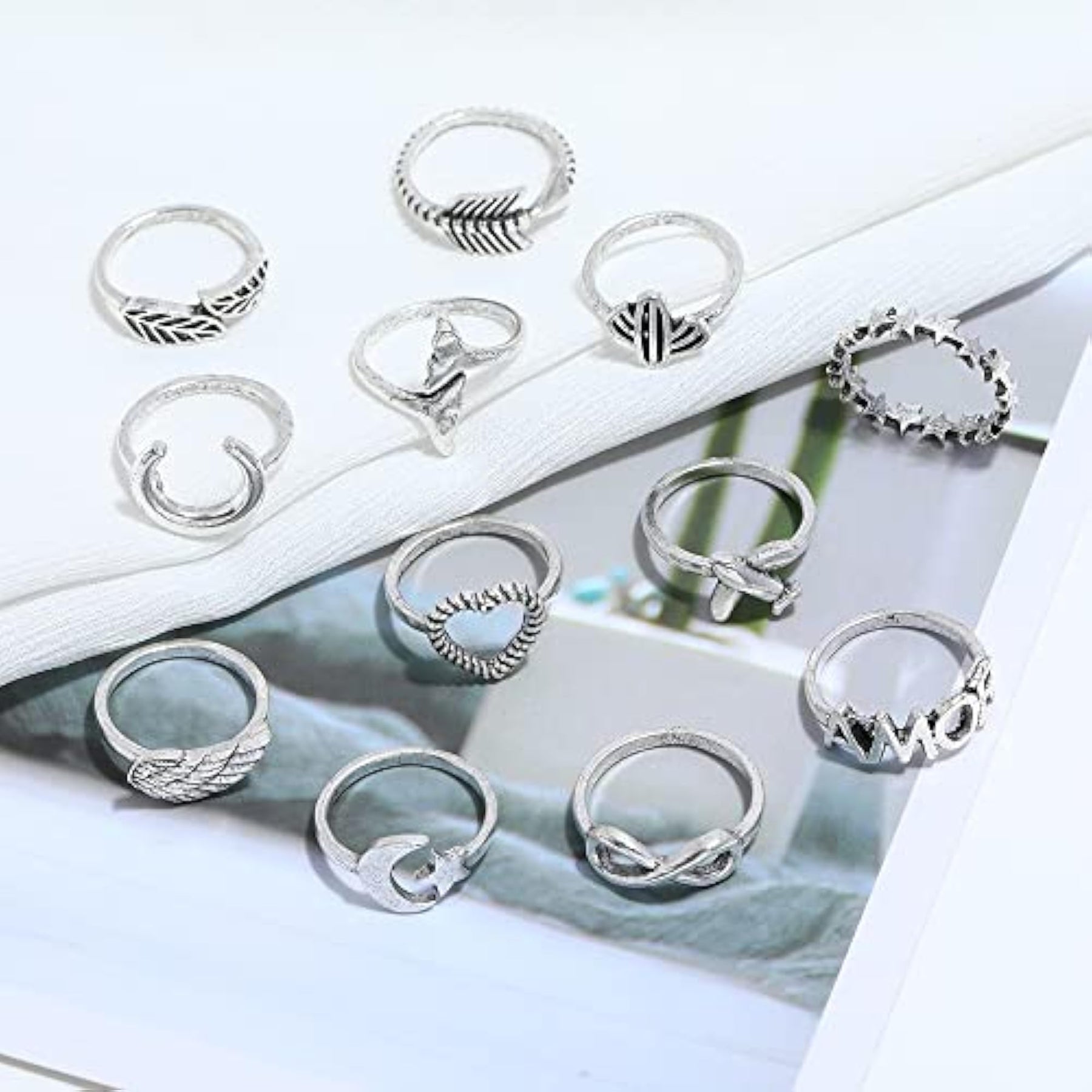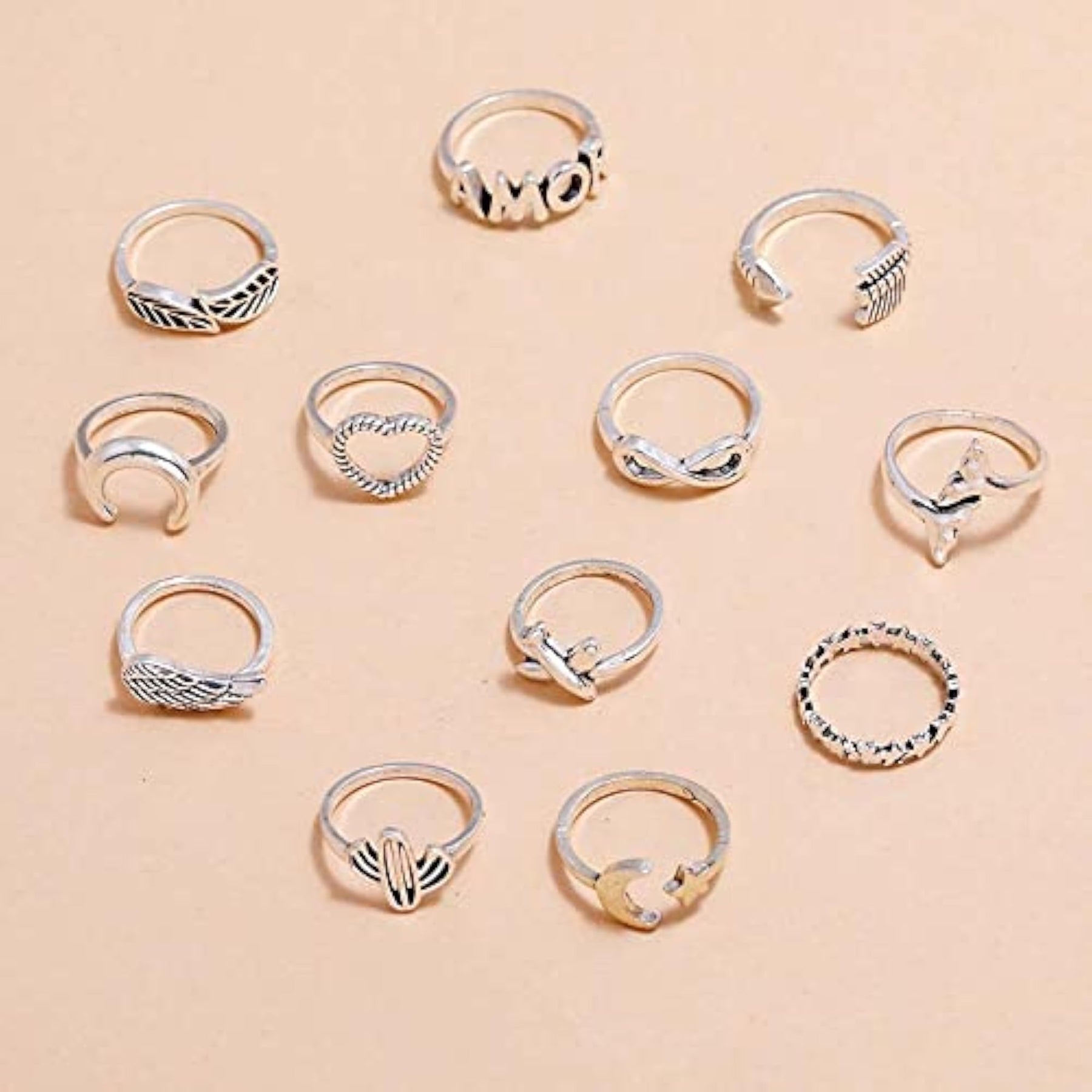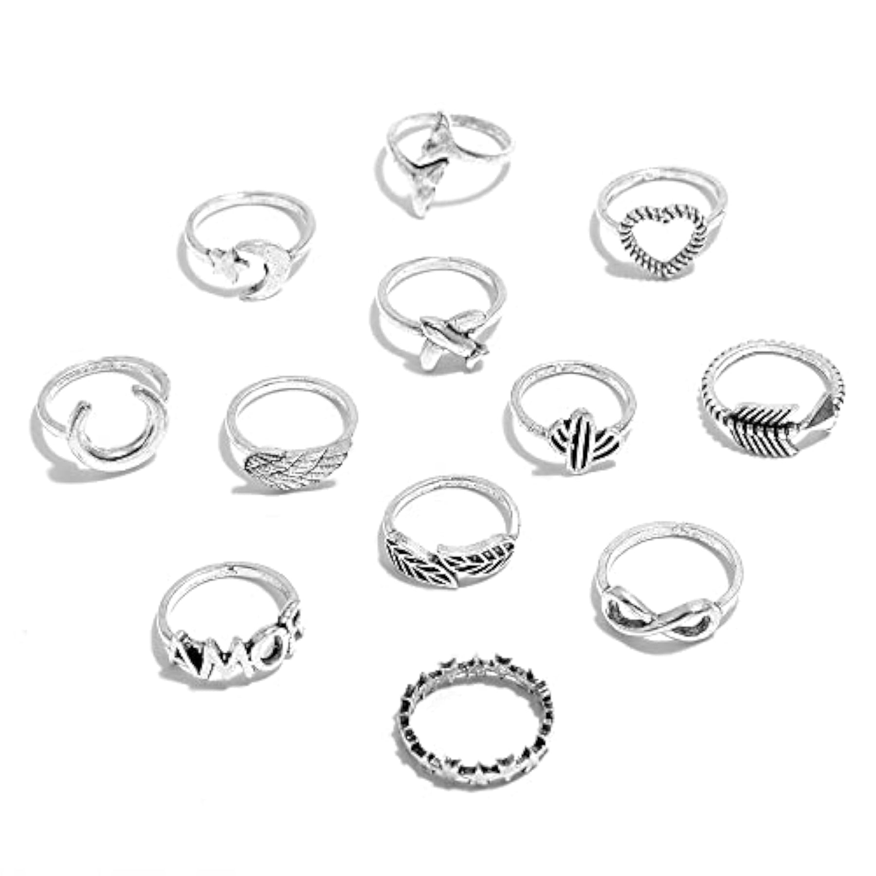 Elevate your style with this set of 12 trendy metal boho midi finger rings. Perfect for adding a touch of elegance to your look.