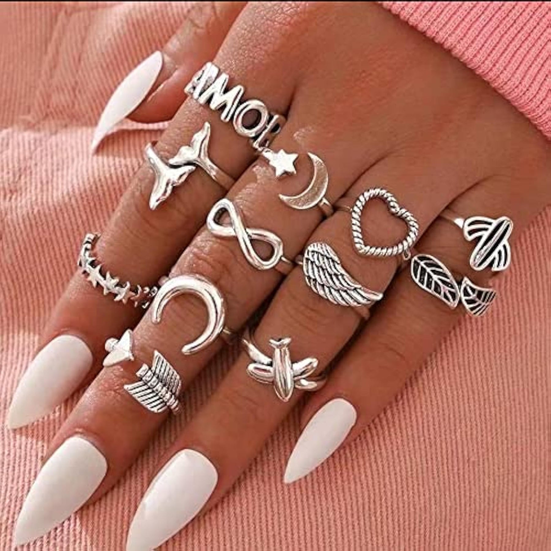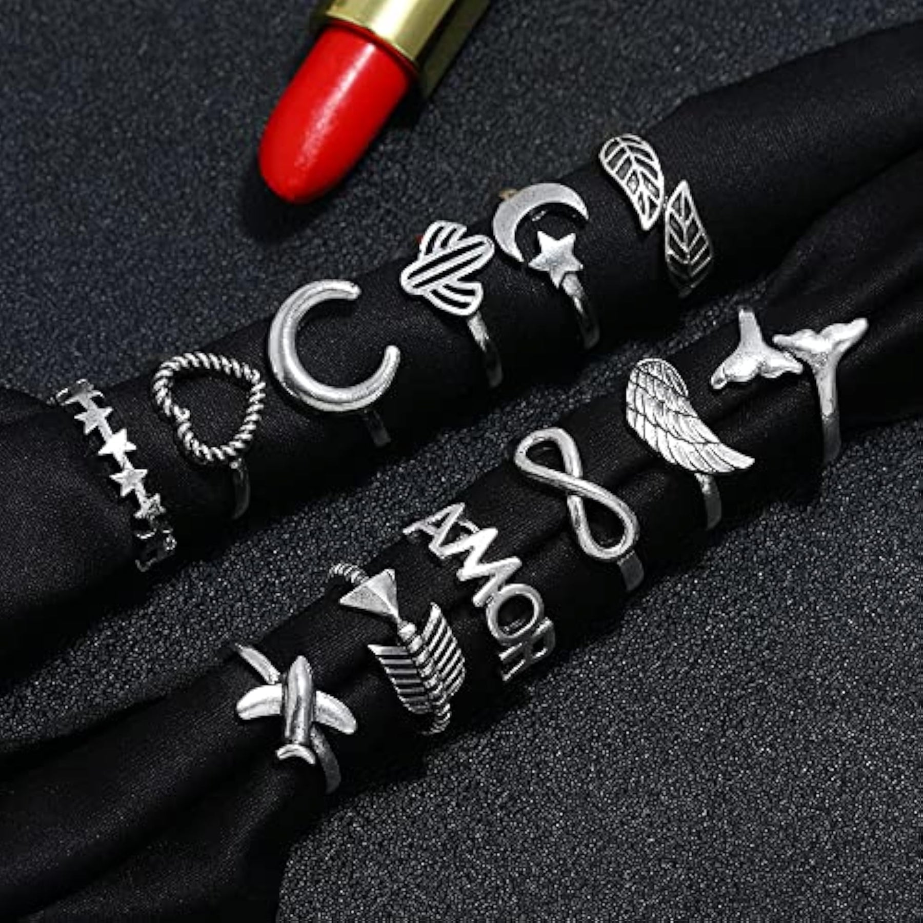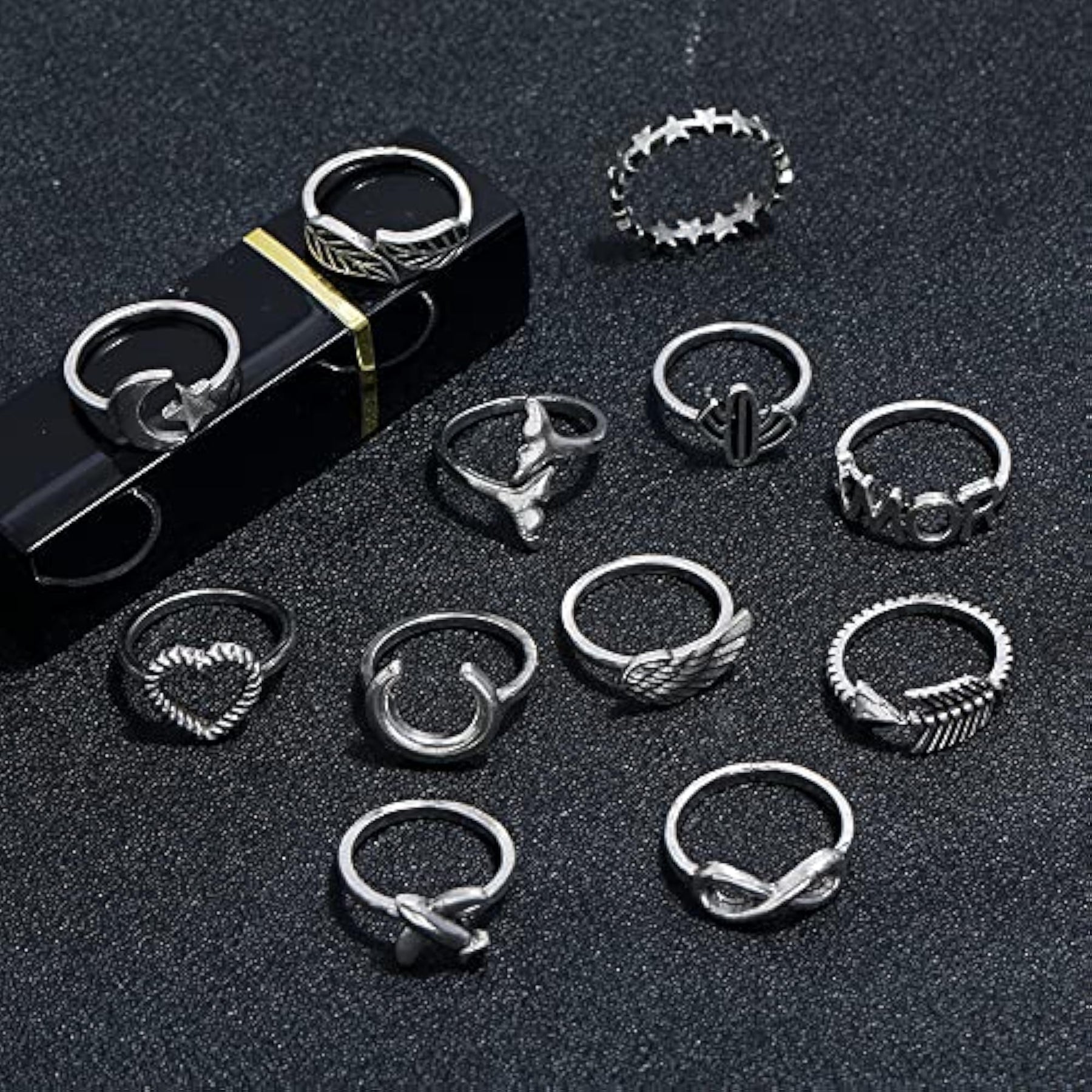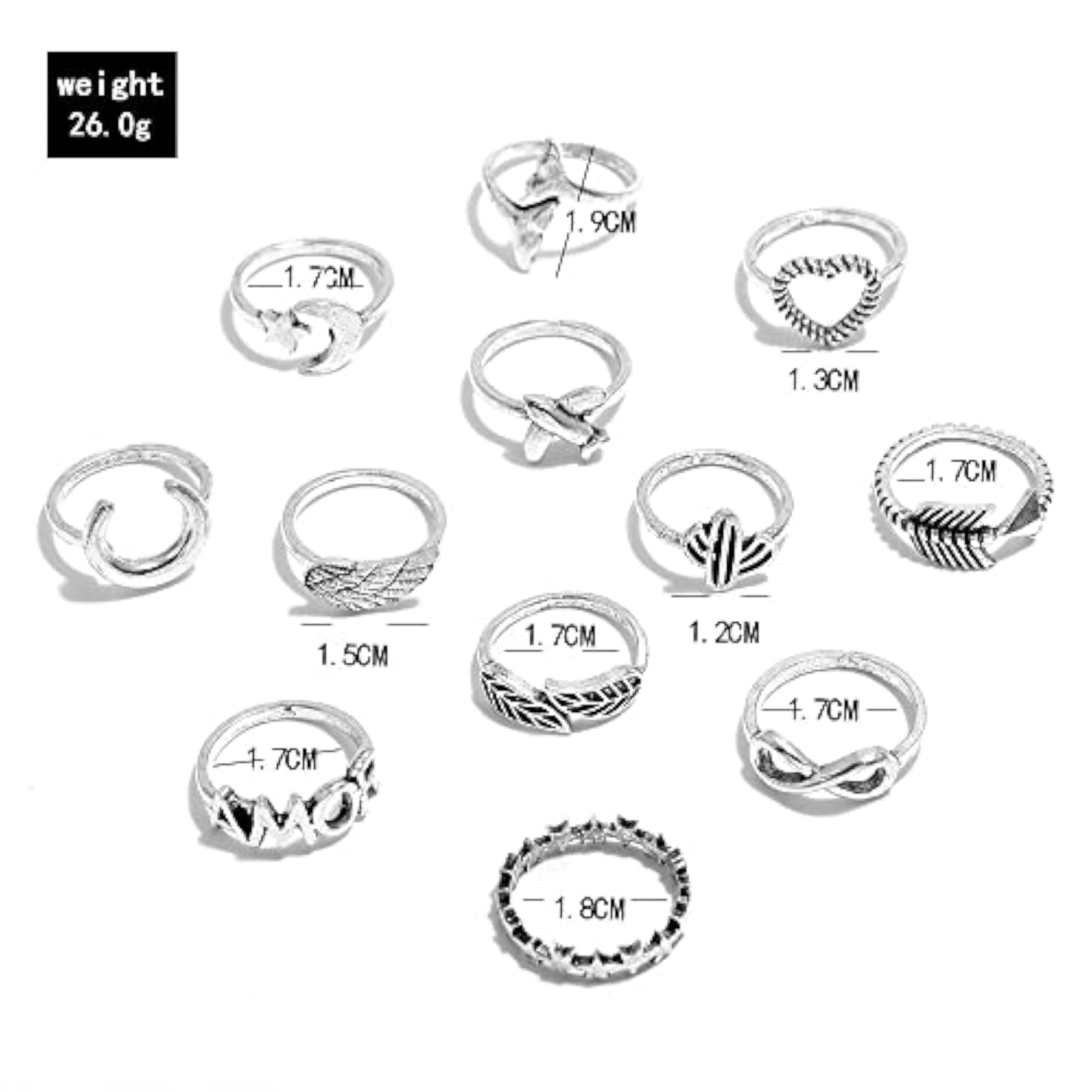 Elevate your style with this set of 12 trendy metal boho midi finger rings. Perfect for adding a touch of elegance to your look.