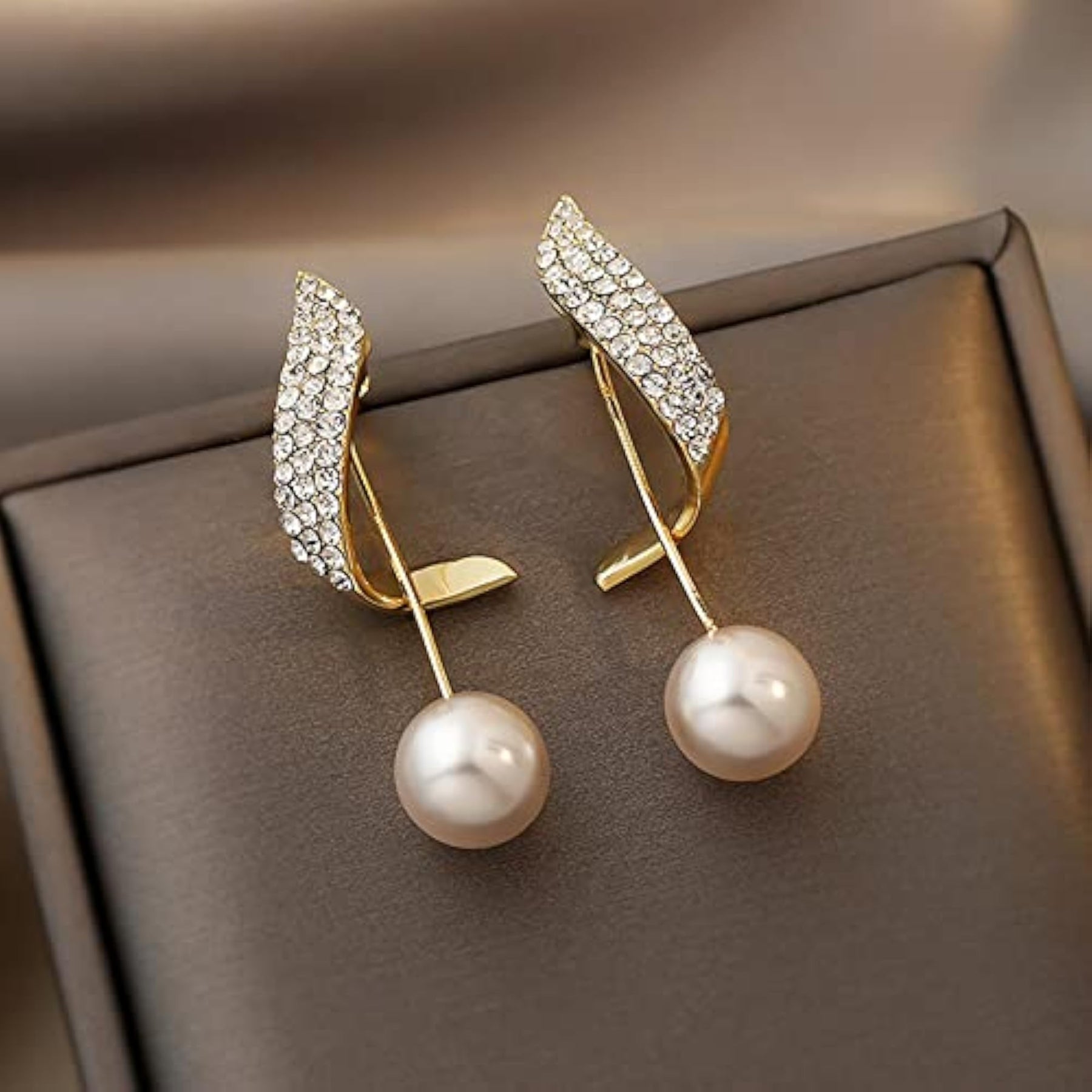 Elegant plated pearl drop earrings that add a touch of sophistication to any outfit.