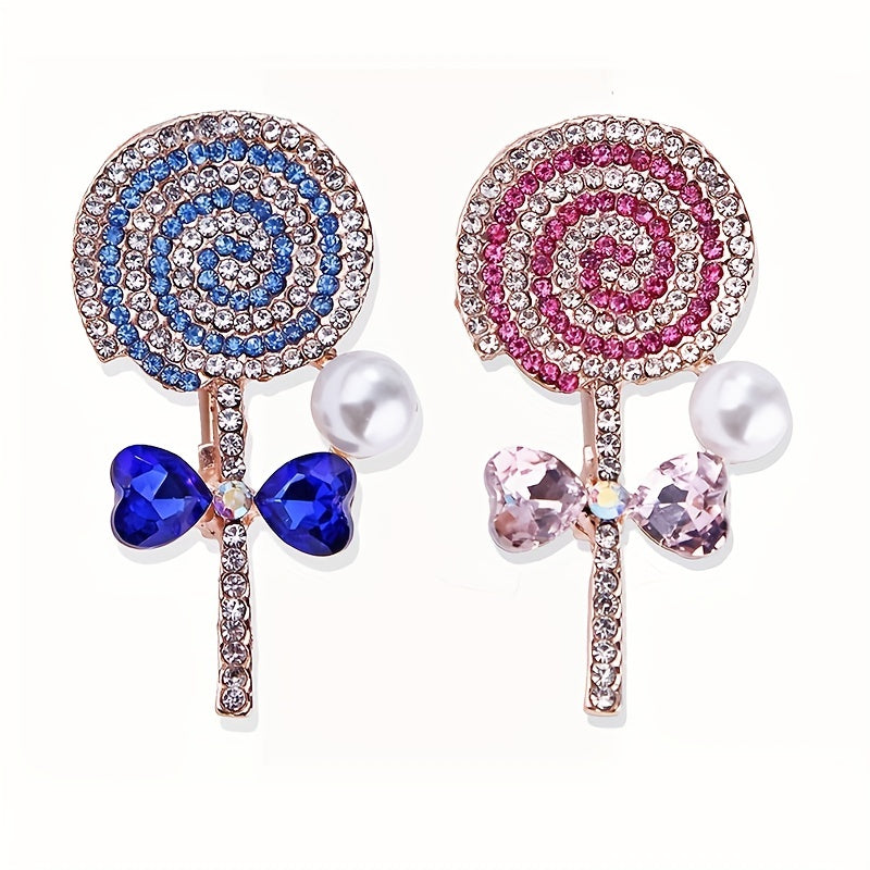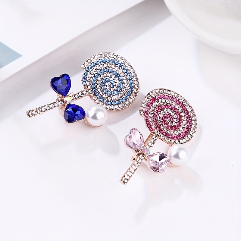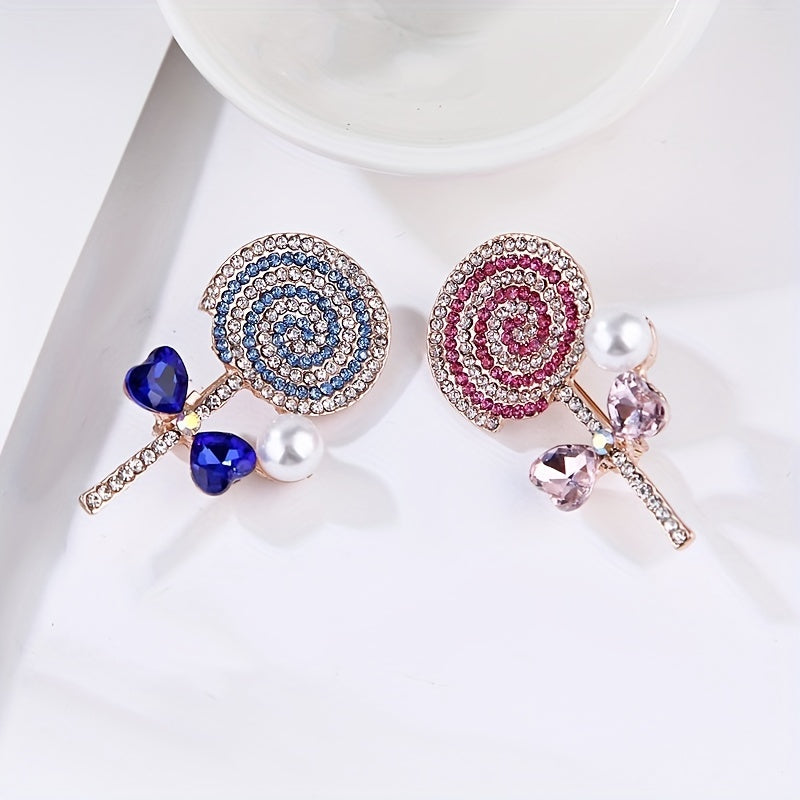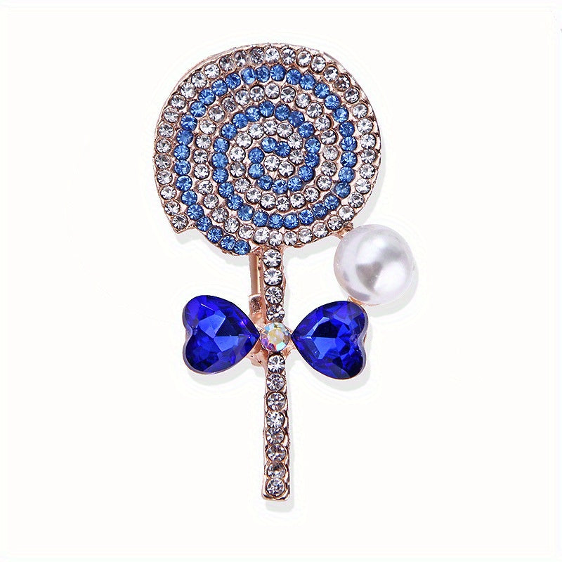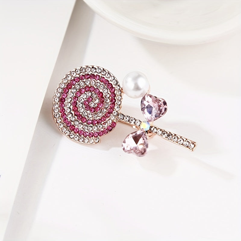 This elegant brooch corsage collar pin features a sweet lollipop design with sparkling rhinestones, making it a perfect accessory for your clothing. Add a touch of charm to your outfit with this unique piece of jewelry.
