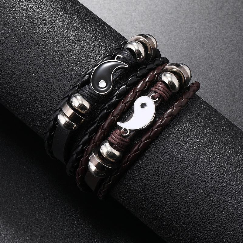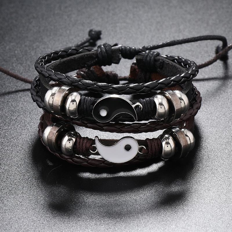 Tai Chi Yin Yang Vintage Braided Couple Bracelet Set