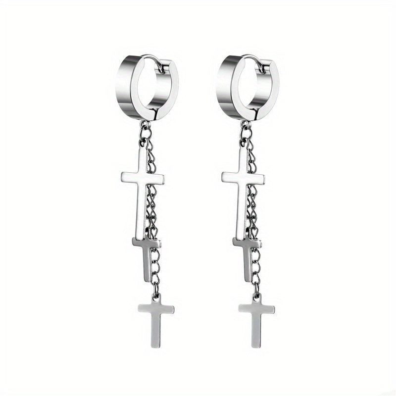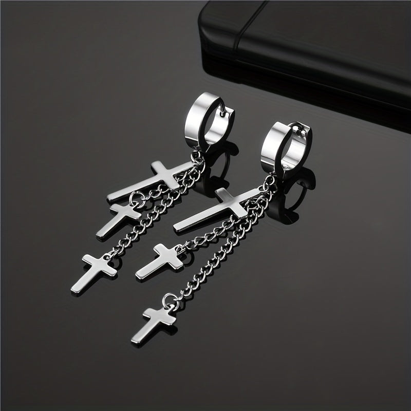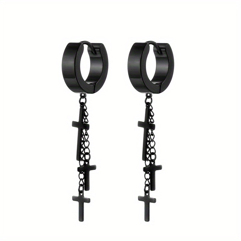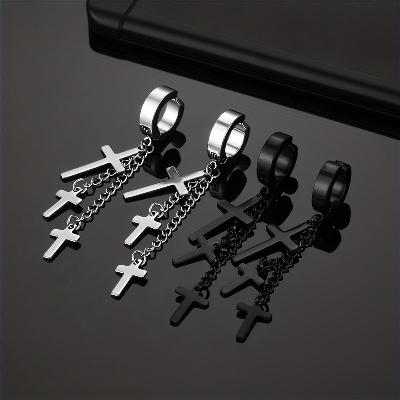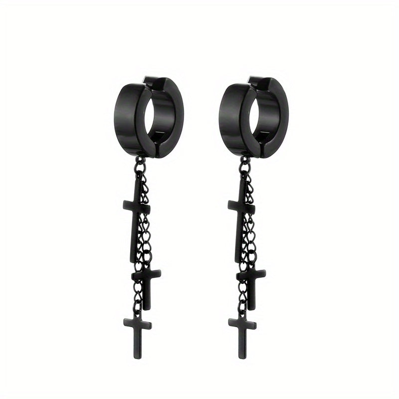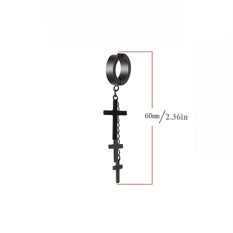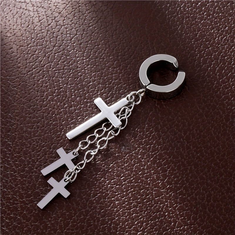 Add a touch of edgy style with these tassel cross ear clip earrings designed for men.